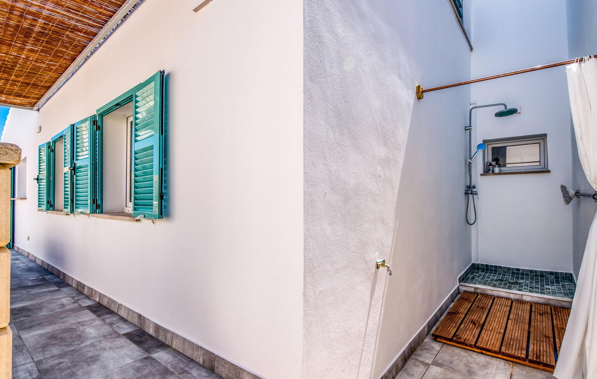 Das „Beach House“ ist wirklich leicht zu finden – Sie können es in unserem Video entdecken, das einen hervorragenden Eindruck von der herrlichen Lage vermittelt. Das weiße Strandhaus mit den türkisfarbenen Fensterläden versprüht seinen Charme in der ruhigen Wohngegend. Dennoch passt dieses zweistöckige Haus mit hohem Wiedererkennungswert wunderbar in dieses Viertel des beschaulichen Städtchens direkt an der Küste. An der Vorderseite des Hauses gibt es eine Veranda im Obergeschoss, die sich entlang der rechten Seite des Gebäudes fortsetzt. Auf der Veranda steht ein rustikaler Esstisch im Vintage-Look mit langen Bänken – ein erstklassiger Ort, um bei einer sanften, salzigen Meeresbrise jede Mahlzeit einzunehmen. Da es hier auch einen einfachen Grill gibt, ist es ein ausgezeichneter Ort zum Entspannen. Das Bambusdach bietet Schatten vor den intensiven Sonnenstrahlen, während die Außendusche für gelegentliche Abkühlung sorgt. Wenn jemand anderes in Ihrer Gruppe Sie fragt, was Sie heute tun möchten, können Sie getrost sagen: „Wenn ich nicht hier bin, bin ich auf dem Sonnendeck.“ Die Dachterrasse im Obergeschoss bietet zwei Sonnenliegen und einen sagenhaften Blick auf das azurblaue Meer, weshalb man hier auf einen Pool wirklich verzichten kann.