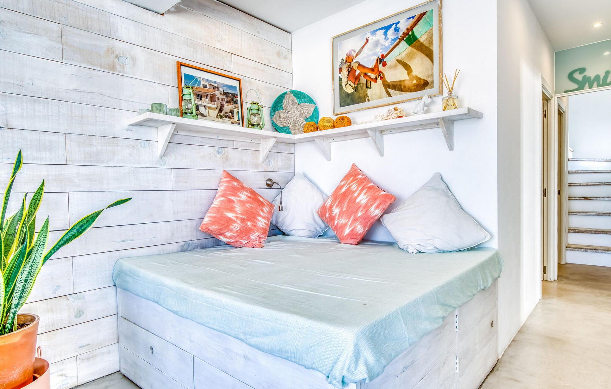 Der kleine Küstenort Son Serra de Marina hat nur etwa 1.000 Einwohner, die überwiegend in Einfamilienhäusern leben. Alles, was Sie zum täglichen Leben brauchen, ist in der Stadt vorhanden. Es gibt auch einige Restaurants und nicht zu vergessen El Sol, die zwanglose Strandbar direkt am Wasser. Es ist ein großartiger Ort, um Kite- und Windsurfer in Aktion zu beobachten. Dies ist ein perfekter Urlaubsort für Strandliebhaber und Wassersportfans sowie für diejenigen, die gerne Zeit in der freien Natur abseits des Massentourismus verbringen. Dennoch bietet die 16 km lange Küste der Bucht von Alcúdia genug Abwechslung für jeden Geschmack: wunderschöne Strände, tolle Einkaufsmöglichkeiten in Alcúdia, historische Gebäude, Naturparks und vieles mehr, alles im schönen Osten der Insel. Hier im „Beach House“ sind Sie dem authentischen Mallorca ganz nah – und können hier das ganze Jahr über entspannen. Willkommen im ganzjährig nutzbaren Traumhaus „Beach House“ im hübschen Küstenort Son Serra de Marina. Das Resort liegt an der Bucht von Alcúdia und bietet seinen Besuchern alle Dinge des täglichen Bedarfs, und das alles in fußläufiger Entfernung. Die umliegende Landschaft bietet schöne Ausflugsziele; z.B. die mittelalterliche Stadt Artà, wo dienstags ein bunter Wochenmarkt stattfindet. Nur wenige Meter trennen Sie vom Wasser und davon gibt es in der 16 km langen Bucht reichlich.