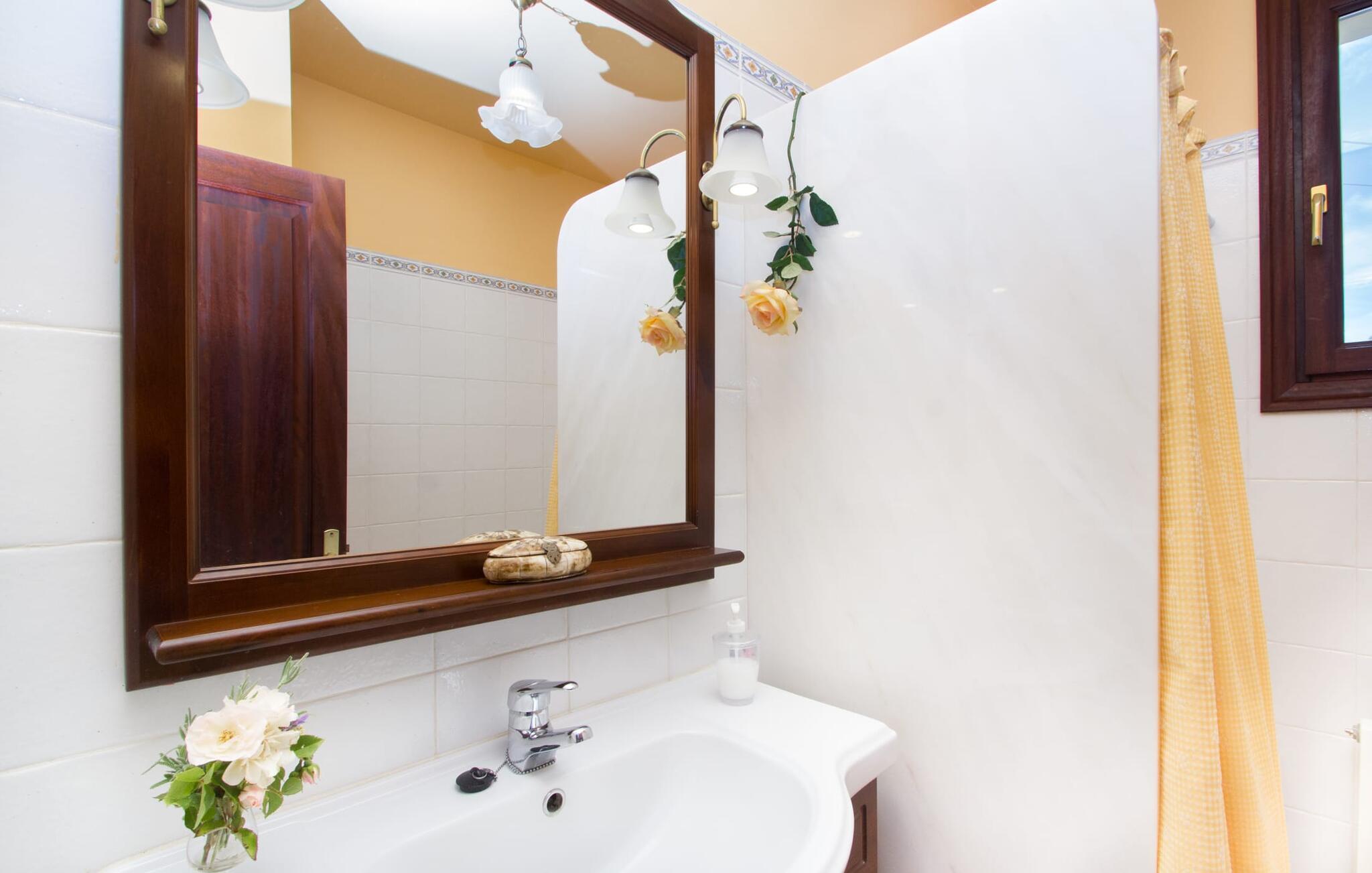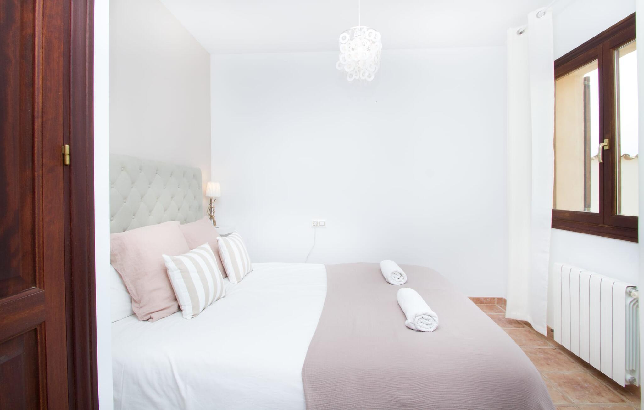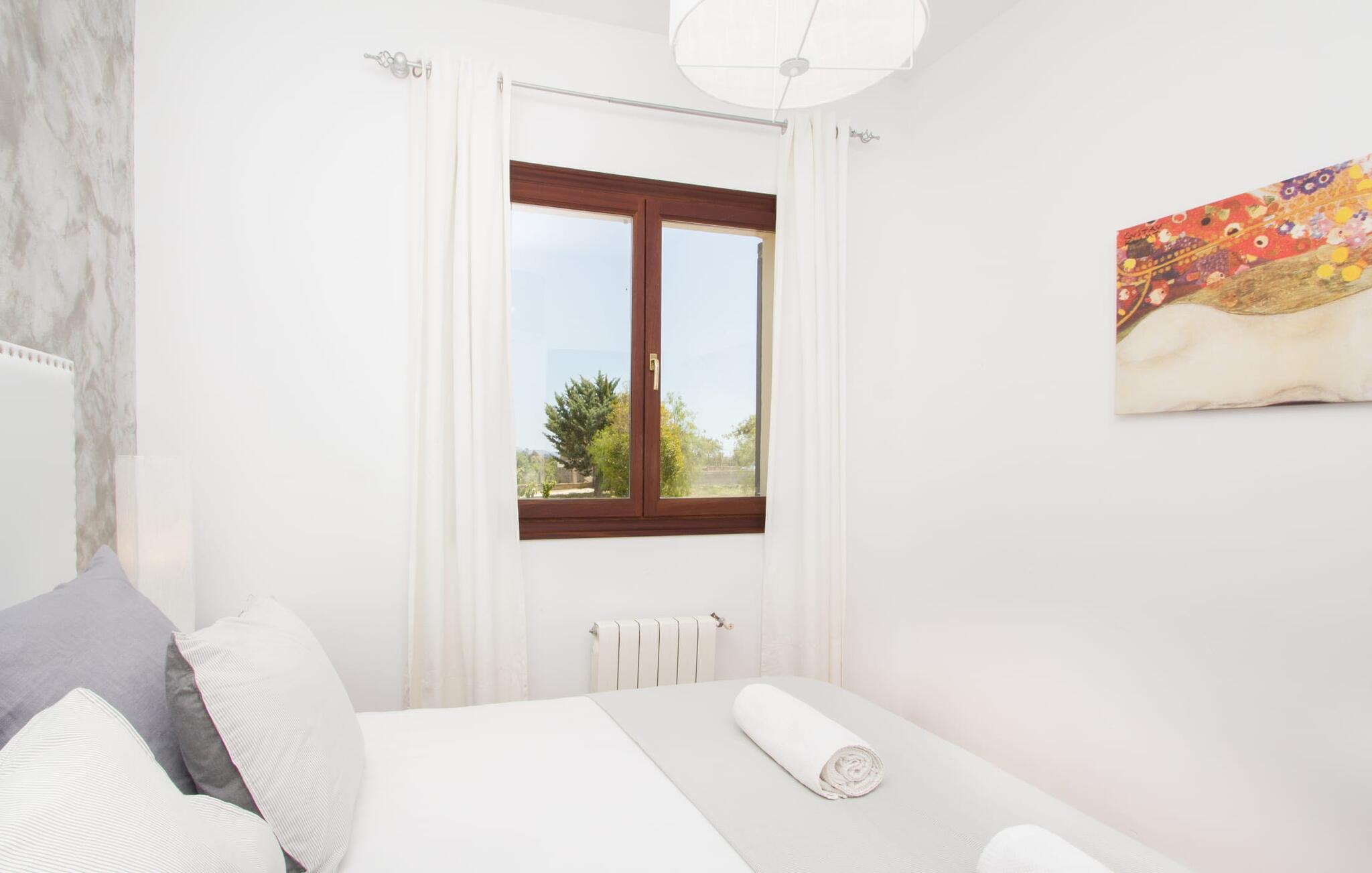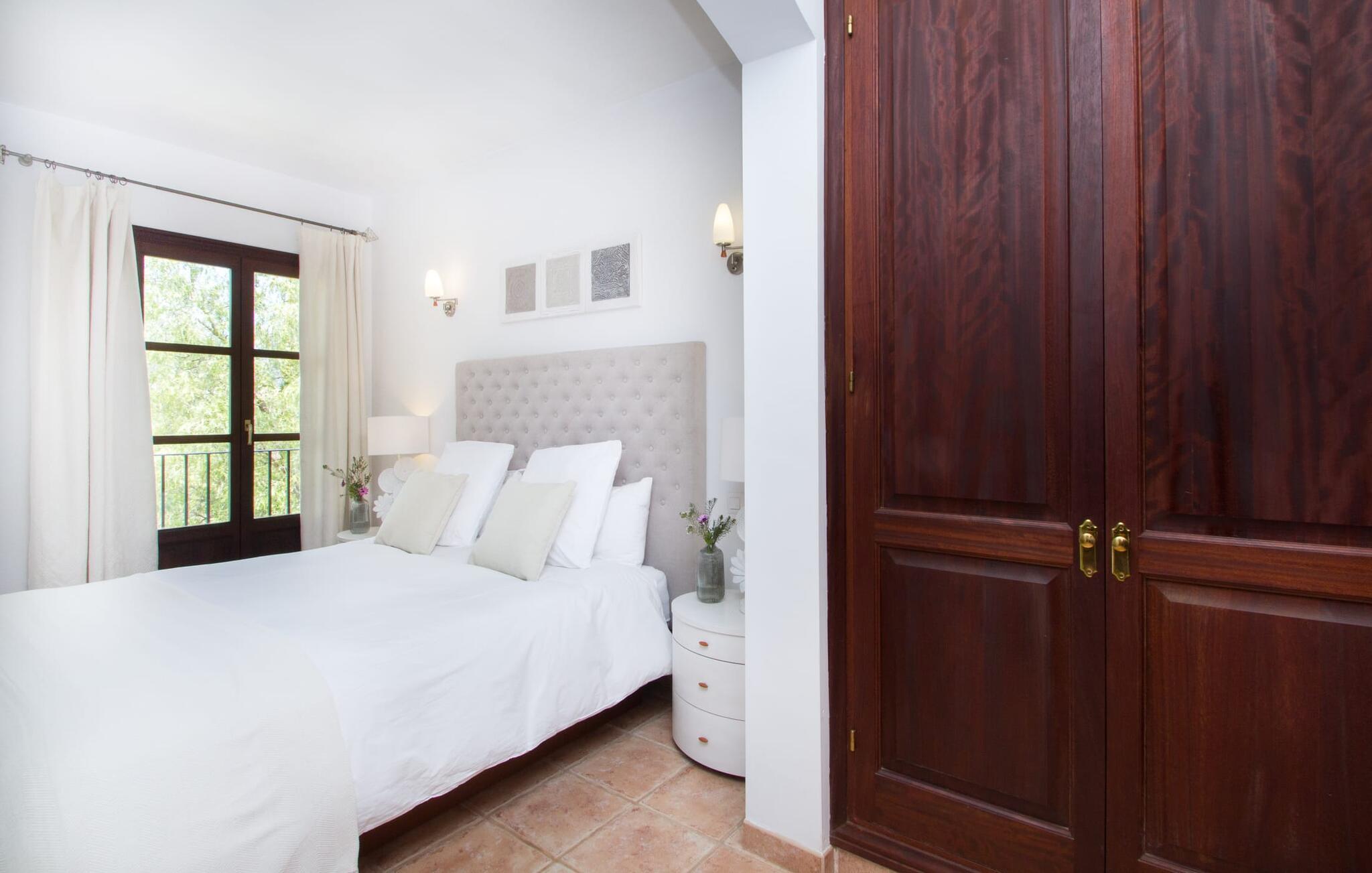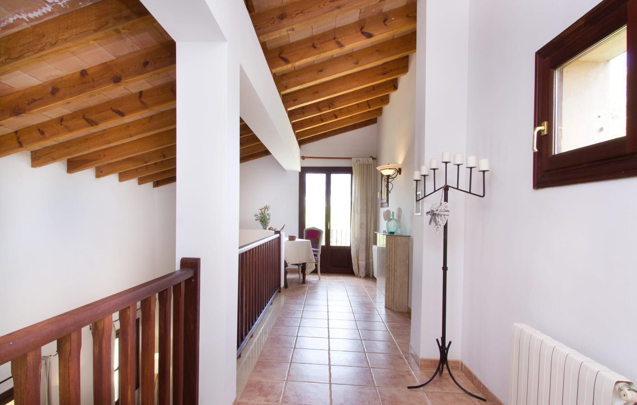 Im Inneren befindet sich das charmante Wohnzimmer mit einer bequemen Ledersofagruppe, klassischer Kunst, rustikalen Holzmöbeln und einer herrlichen Steinmauer. An kühleren Tagen sorgt ein Kamin für wohlige Wärme, während moderne Annehmlichkeiten dafür sorgen, dass Sie in Kontakt bleiben. Die rustikale, voll ausgestattete Küche bietet viel Platz für die Zubereitung köstlicher Mahlzeiten. Sollte das Wetter umschlagen, steht für Zusammenkünfte im Innenbereich ein Esstisch zur Verfügung. "Ca Na Castell Son Rubi“ bietet Platz für sieben Gäste mit drei Doppelzimmern, einem Einzelzimmer und drei Badezimmern (eines en-suite). Jedes Schlafzimmer ist stilvoll eingerichtet und verfügt über einzigartige Farbschemata, die die einladende Atmosphäre verstärken.