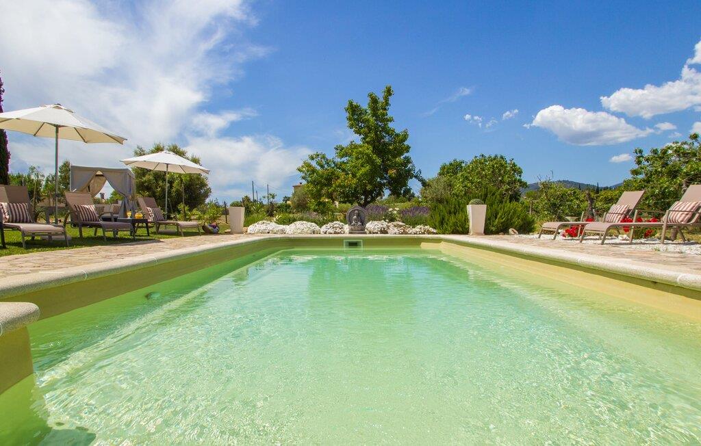 Pastellfarbener Anstrich, Fensterläden aus Holz, in einem mediterranen Garten – das ist die Essenz einer typisch mallorquinischen Villa, und das alles finden Sie im "Ca Na Castell Son Rubi“ im Norden Mallorcas.