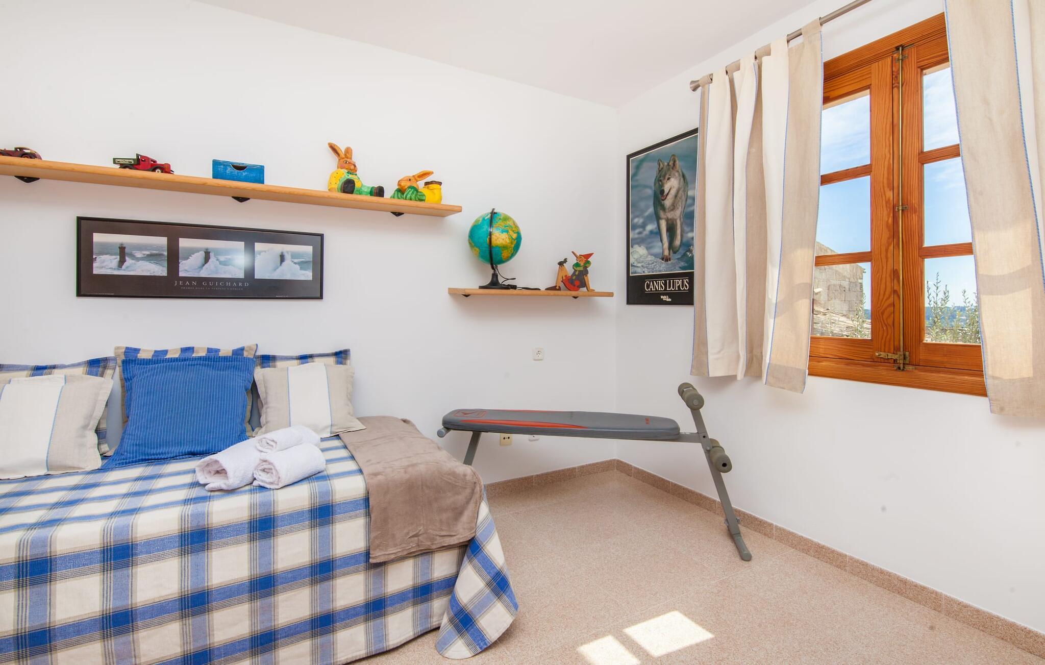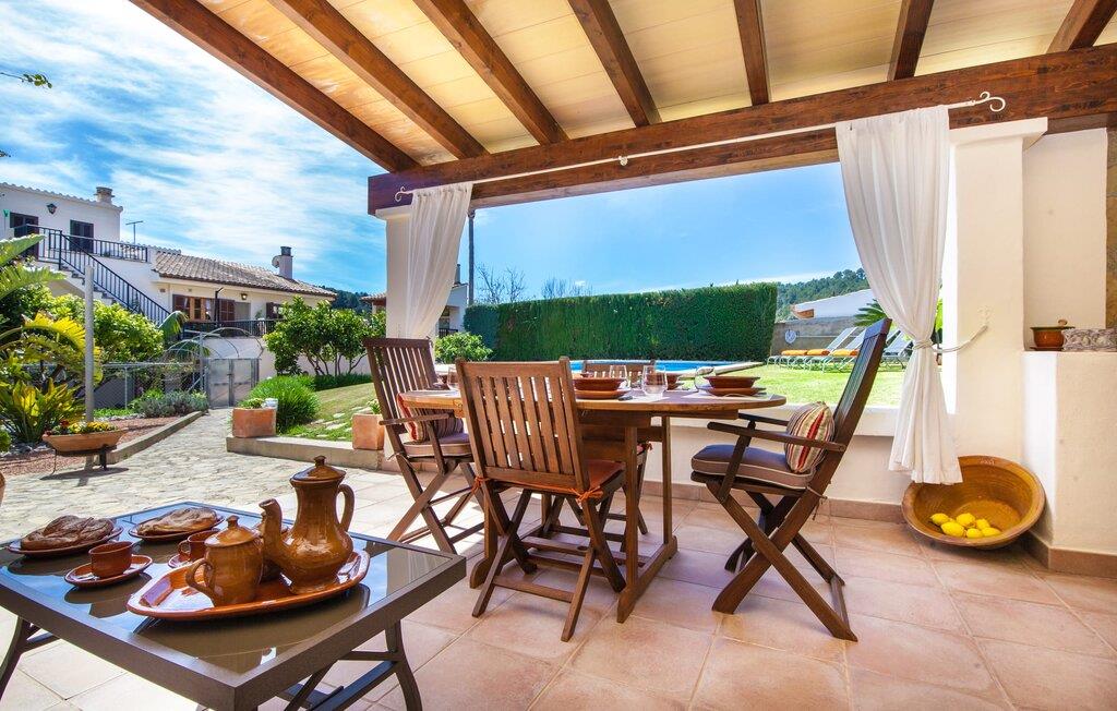 Wenn Sie das ruhige Leben und die Natur lieben, das Auto aber auch lieber ab und zu auf dem Anwesen stehen lassen, wenn Sie schnell zum Supermarkt oder ins Restaurant gehen müssen, dann ist Villa „Ca na Rosa“ Ihr perfekter Urlaub heim! Das wunderschön gepflegte kleine Haus für bis zu sieben Personen wurde am Rande des kleinen Ferienortes Selva auf einem Hügel im ländlichen Norden der Insel erbaut. Trotz der Nähe zu den Nachbarn bietet es viel Privatsphäre. Im liebevoll gestalteten Garten mit üppigen Grünanlagen und dichten Hecken, die Sie vor Blicken schützen, können Sie sich jederzeit im Pool abkühlen, der auch über eine sanfte Treppe verfügt. Tanken Sie anschließend auf einer der bequemen Sonnenliegen etwas Vitamin D und lassen Sie dabei den Blick hinter Ihrer Sonnenbrille über die wunderschöne grüne Umgebung schweifen. Ein besonderes Highlight ist die separate überdachte Terrasse direkt neben dem Poolbereich: Die gemütlichen Gartenmöbel laden nicht nur zum Nichtstun ein, auch der große Holztisch lädt zum Essen und Verweilen in den Abendstunden bis in die Nacht ein.
