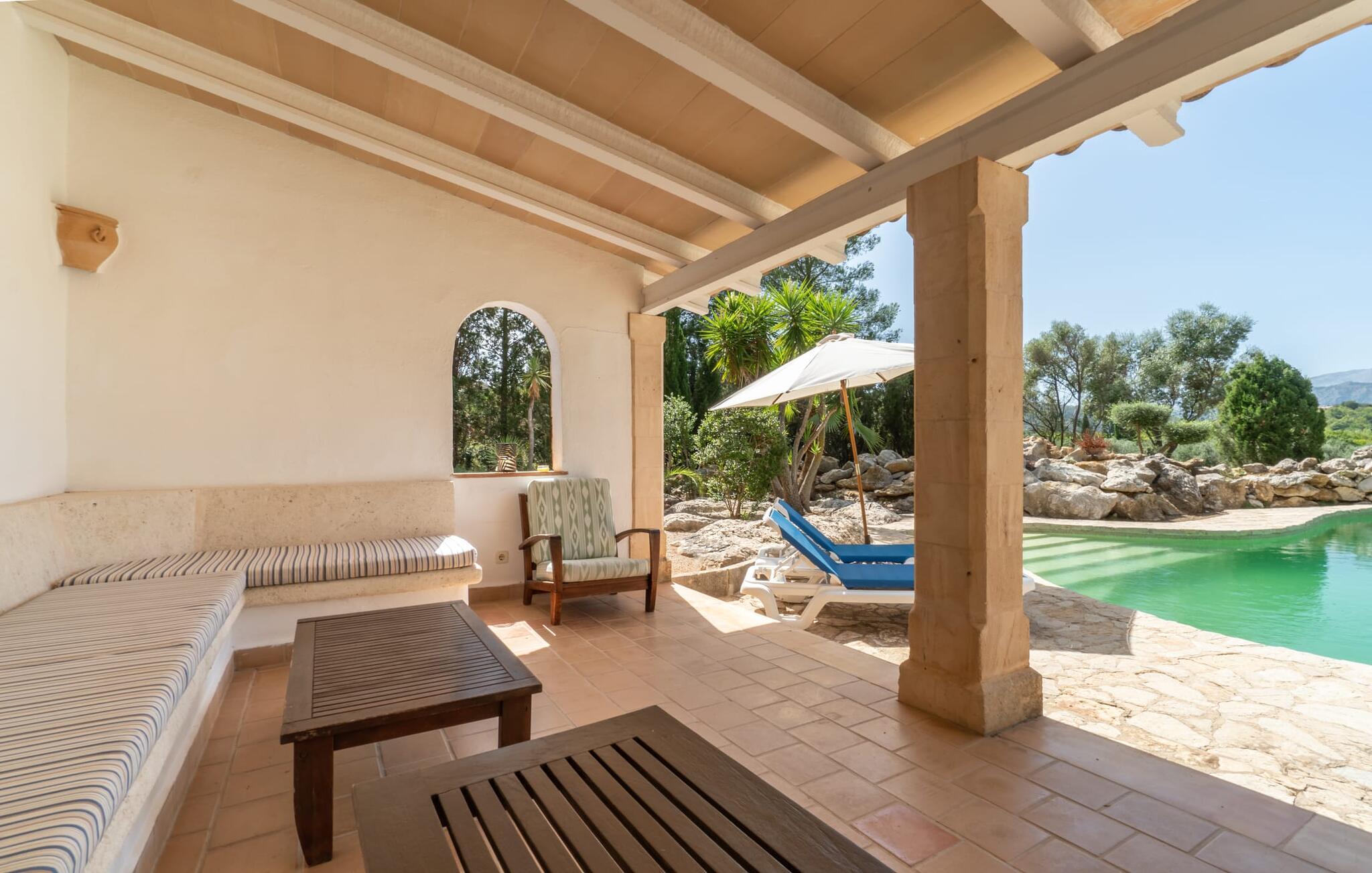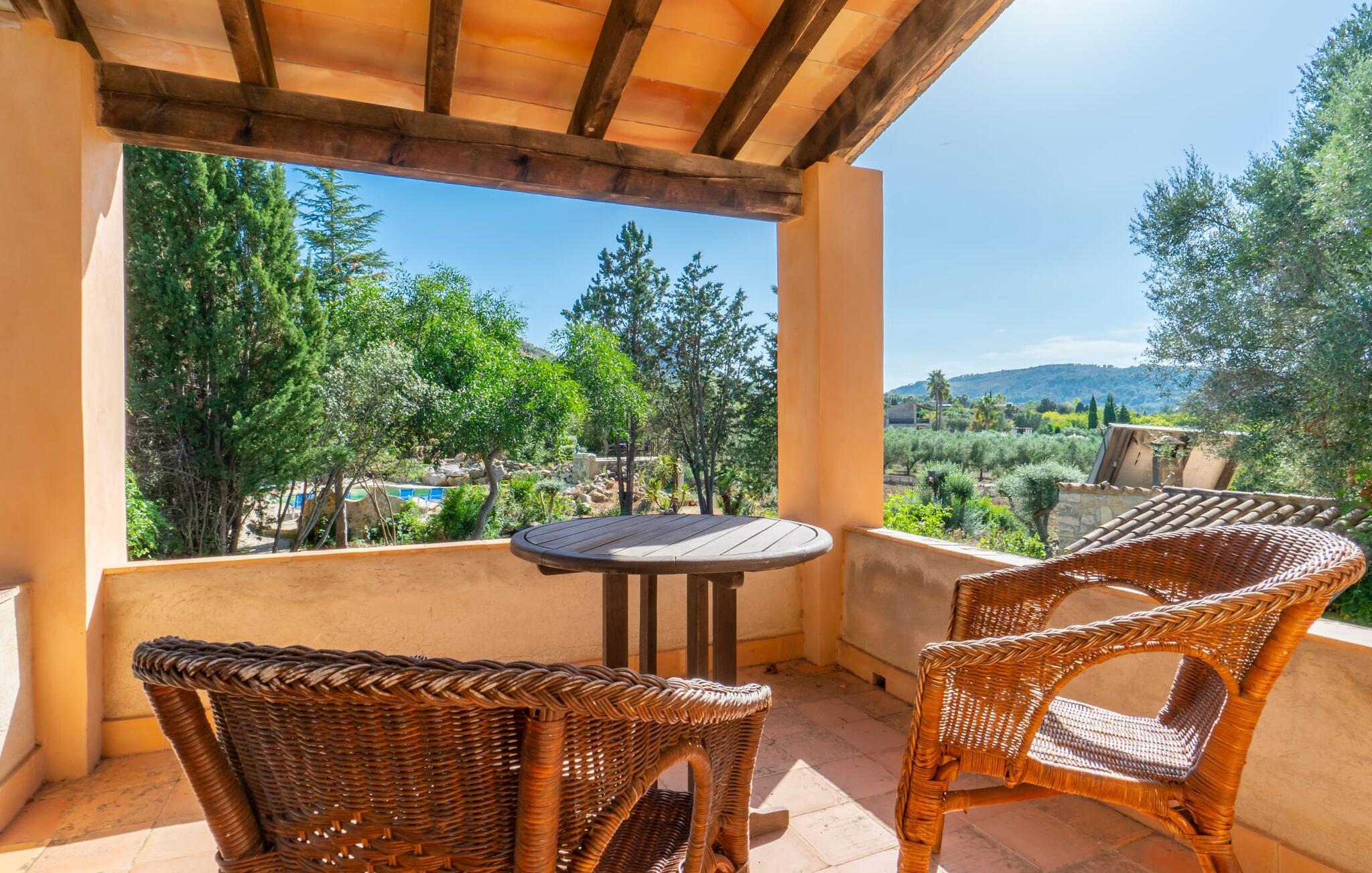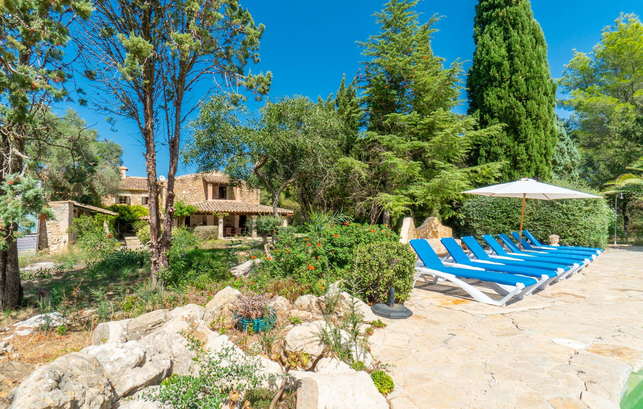 Das über 300 Jahre alte „Ca Na Siona Històric“ liegt auf einem sehr weitläufigen Grundstück, das aus einem Garten sowie einem angrenzenden Naturgrundstück besteht. Die vielfältige mediterrane Vegetation, darunter auch alte Bäume, bildet einen wunderschönen Rahmen für die liebevoll angelegten Bereiche, in denen Sie Zeit im Freien verbringen können. Direkt neben dem Ferienhaus befindet sich die große überdachte Terrasse, auf der Sie eine einladende Auswahl an Sitzgelegenheiten auf gemauerten Bänken, einer Lounge und am Esstisch finden. Von hier aus führt ein kleiner Weg zum großen Pool, der sehr ästhetisch in die Landschaft integriert wurde. Von hier aus genießen Sie einen sensationellen Blick auf das Tramuntana-Gebirge. Das angrenzende Poolhaus mit weiteren Sitzgelegenheiten lädt zum Entspannen ein. Wer die Aussicht noch exklusiver genießen möchte, kann sich auf den erhöhten Außensitzplatz neben dem Pool begeben. Für Fitness und Spaß steht eine Tischtennisplatte zur Verfügung. Das Barcebue-Haus ist bei jedem Wetter ein toller Ort zum Grillen.