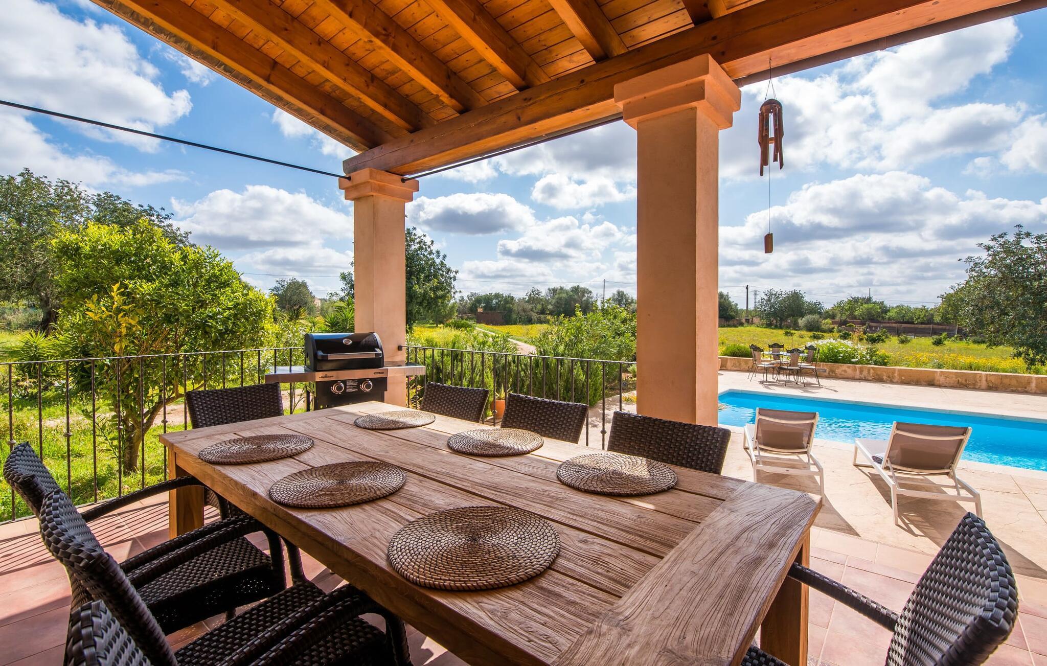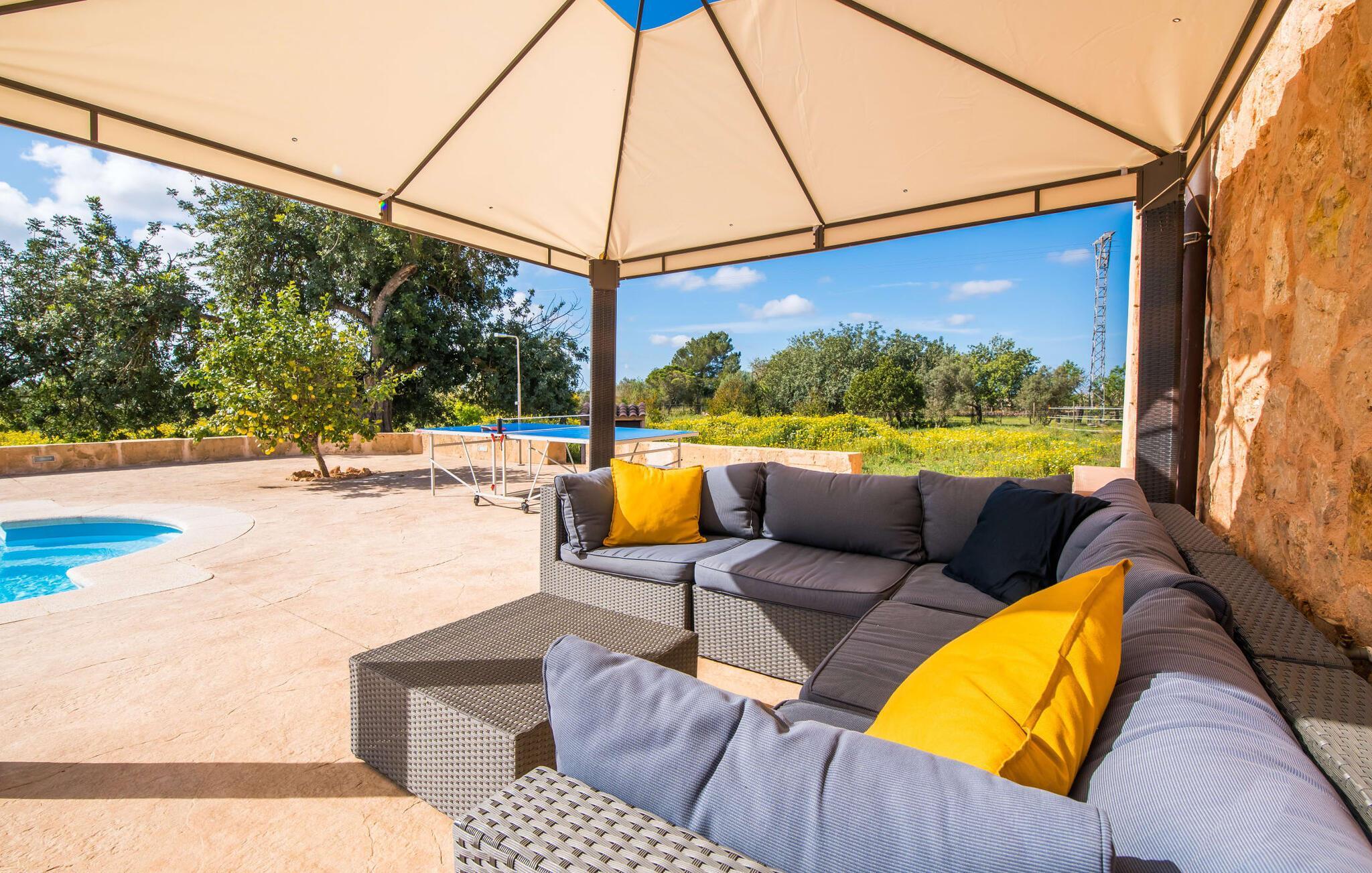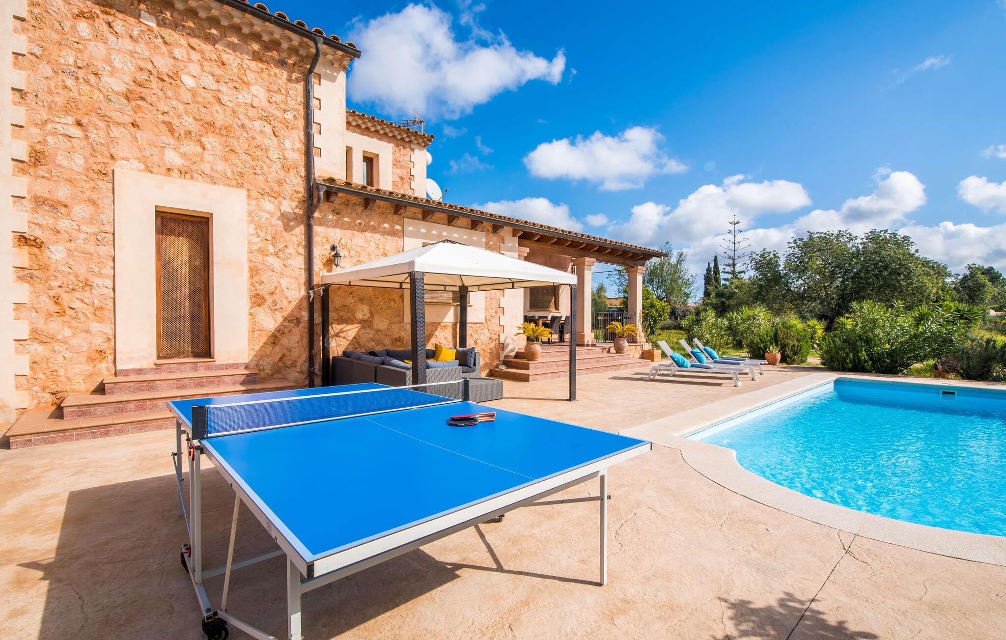 Viel Platz, Ruhe, Natur, genügend Möglichkeiten für aktive Familien und noch viel mehr: Das bietet die Finca „Can Alba de Llucmajor“ für bis zu sechs Personen, ein schönes Ferienhaus im Süden Mallorcas. Die Finca mit Pool liegt auf einem großen, grünen Grundstück in ruhiger Lage ohne direkte Nachbarn. Ihre Finca verfügt über einen sehr gepflegten, großzügigen und teilweise überdachten Terrassenbereich: Hier können Sie entweder gemeinsam am Esstisch frisch gegrillte Speisen genießen, mit einem guten Buch auf dem bequemen Outdoor-Sofa Platz nehmen, den langen und reichlichen Sonnenschein genießen Sonnenliegen am Pool dank Südausrichtung oder spielen Sie eine Partie Tischtennis am hauseigenen Tisch.