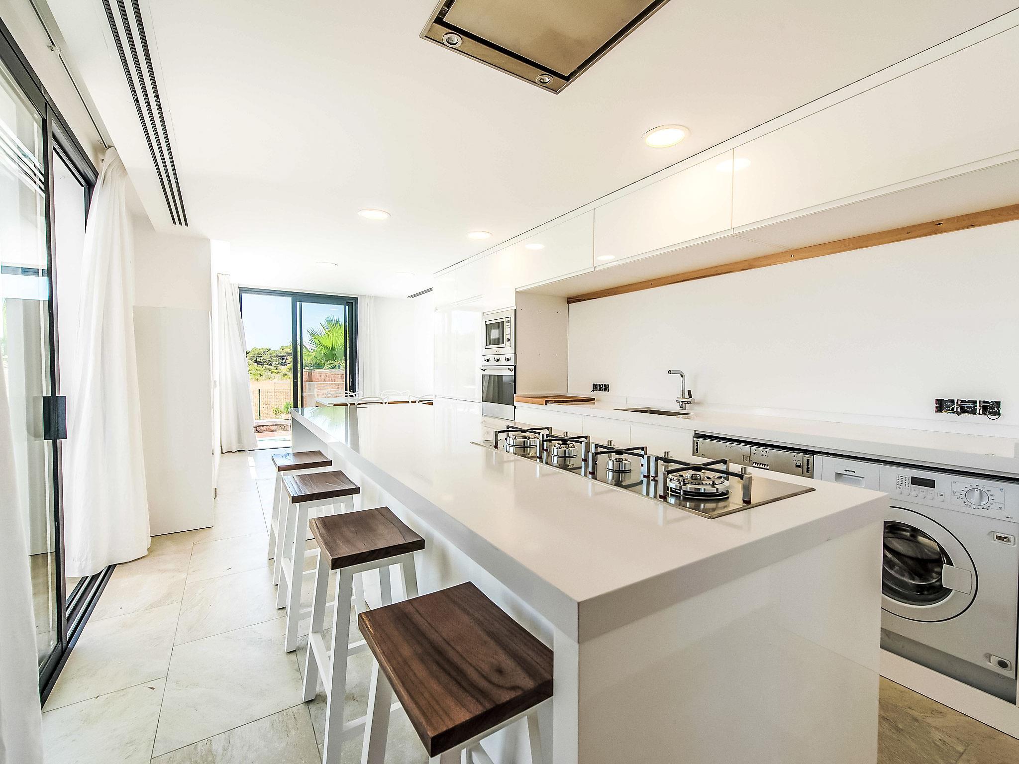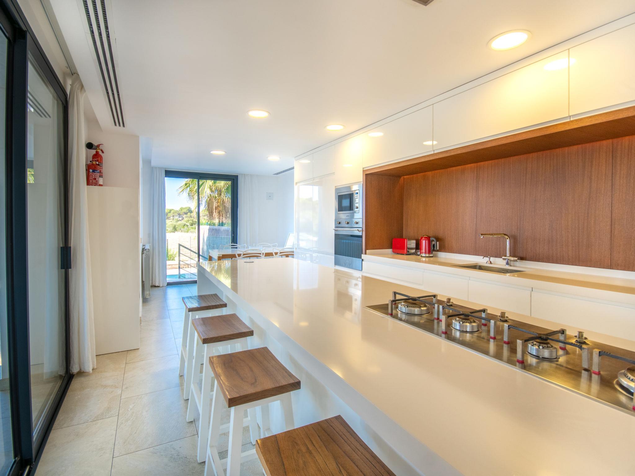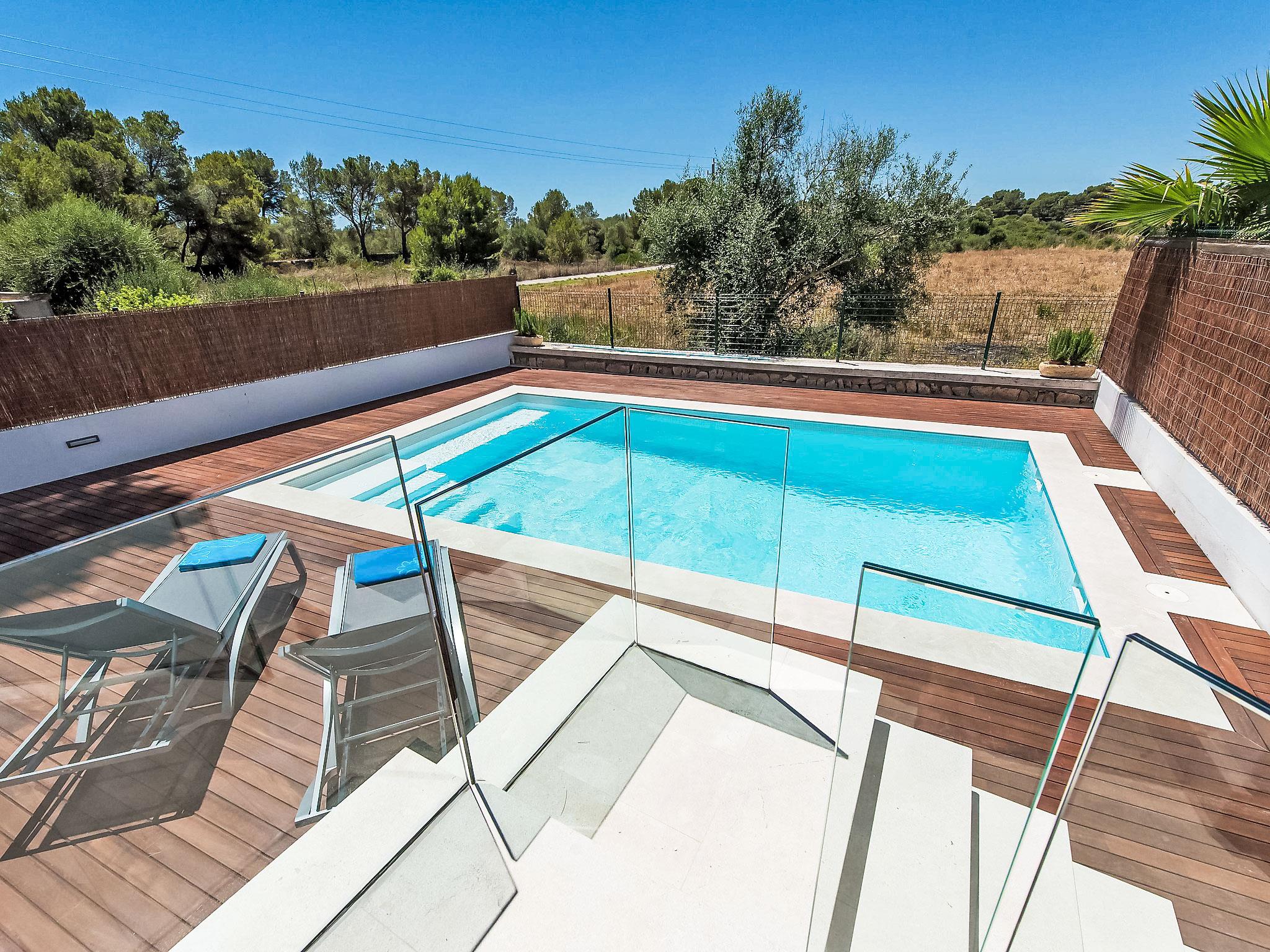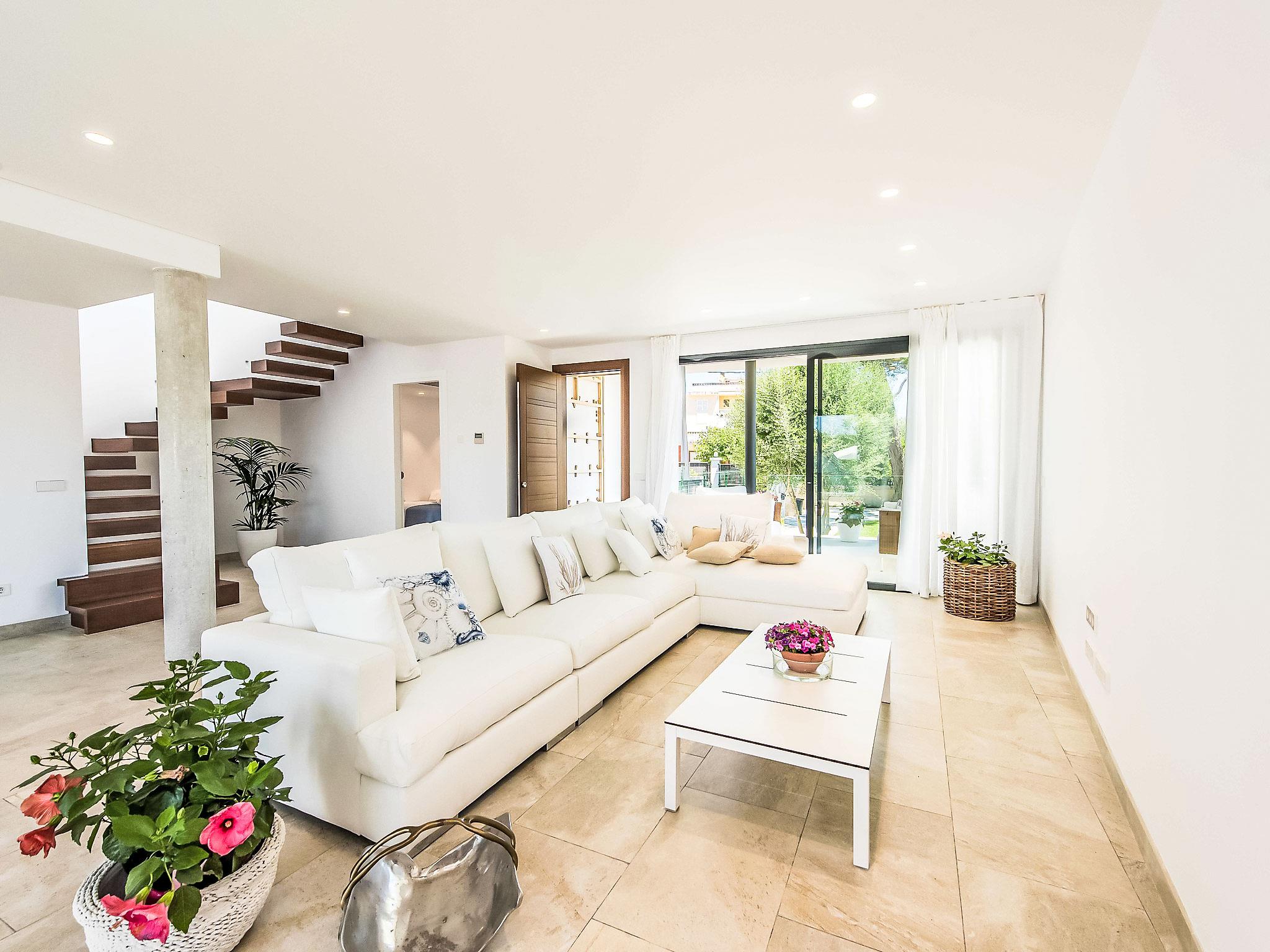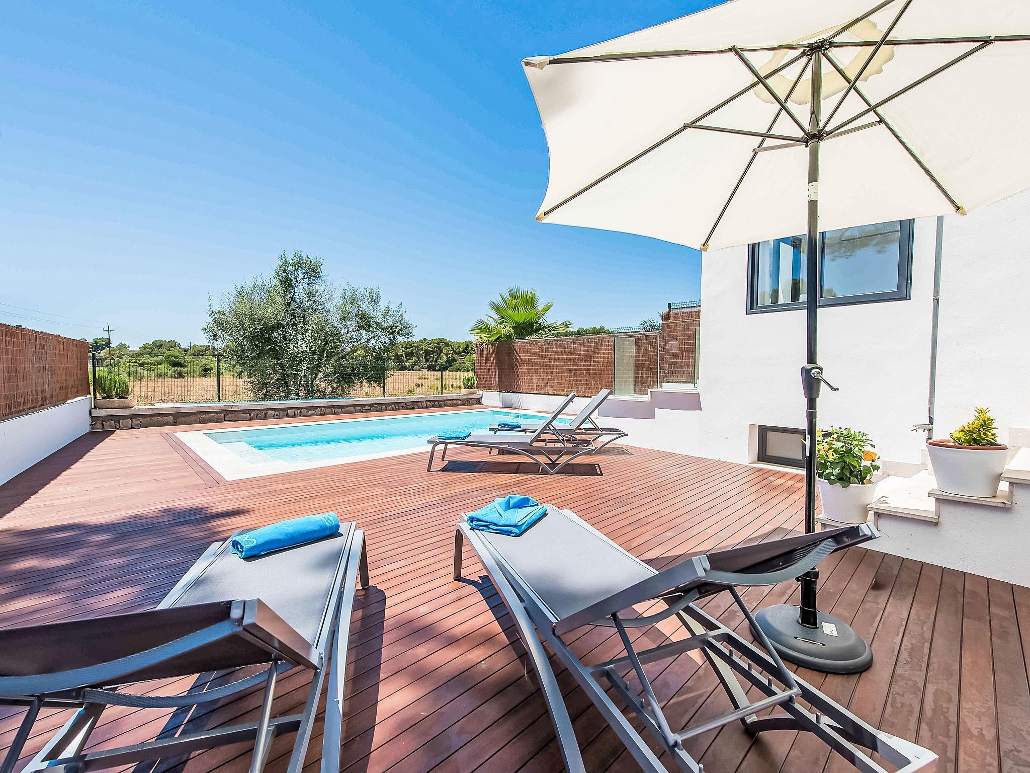 Can Picafort: Very large, modern, comfortable house "Marianne", 2 storeys, built in 2016. In the resort 250 m from the centre of Son Baulo, in a quiet position residential area (villas), 450 m from the sea, 450 m from the beach. Private: garden with lawn, swimming pool (8 x 4 m, seasonal availability: 01.Apr. - 31.Oct.) with salt-electrolysis pool-cleaning system. Outdoor shower, terrace, garden furniture, barbecue. In the house: central heating system, air conditioning, washing machine. Parking at the house. Shop 400 m, supermarket 800 m, restaurant 400 m, bus stop 1.6 km, sandy beach 400 m. Golf course (18 hole) 6 km, riding stable 500 m, children's playground 300 m. Nearby attractions: Playa y parque natural Son Real 600 m. Groups of teenagers on request only.