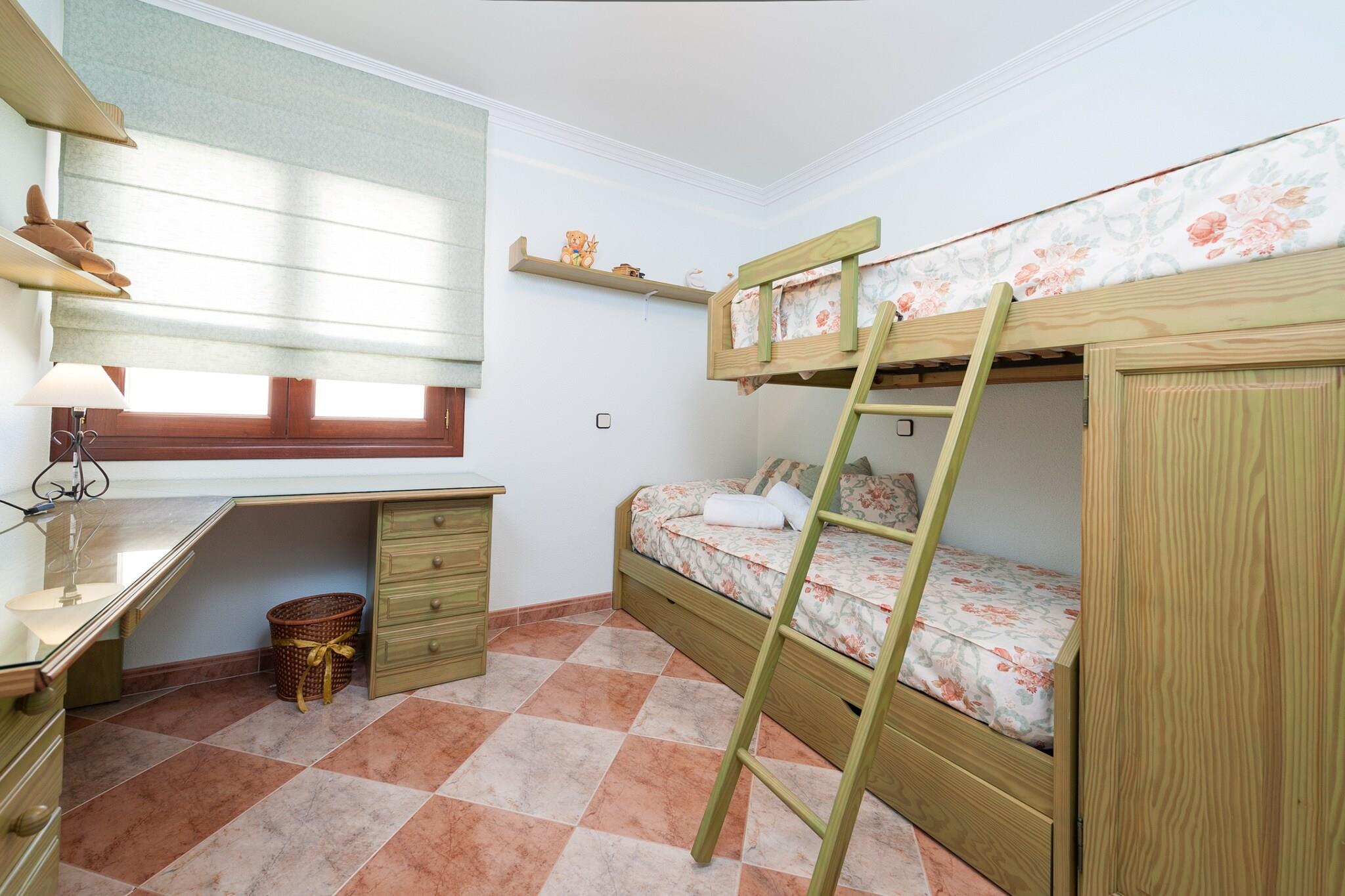 Decorated with a classic and colonial style, the chalet enjoys high quality finishes and peaceful exteriors. On the front terrace, there is a chill out area, with a sofa and armchairs perfect for reading or relaxing. On the back terrace, with a small porch area, you will find a table with 6 chairs, perfect for breakfasts and summer dinners as there is also barbecue. The accommodation has two entrances; the first one is the main entrance through which you have access to the living room, while the second one is the rear entrance, through which you can access to the kitchen and the terrace. The living-dining room then is on the ground floor, equipped with a chimney and satellite TV with both Spanish and German channels. Furthermore, there are a toilet and the kitchen, this last is completely equipped with everything necessary so that you are able to cook at ease during your stay: toaster, microwave, dishwasher, electric coffee-maker, electric oven, gas hob, fridge with freezer, utensils and much more. The house also provides you with washing machine, iron and ironing board. On the first floor, there are 3 dormitories and 2 bathrooms, one is an en-suite with bathtub and the other is at the corridor with shower, and there are terraces on both sides. One of the bedrooms has a double bed, A/C and the en-suite bathroom. The second one has a bunk bed and third one has two single beds. Son Bauló is a qualified area for going hiking, nordic walking, horse riding, cycling, fishing, diving and, in addition to this, it is in the nearby to the wonderful natural park known as S’Albufera for bird watching, as well as the outlet of Son Bauló torrent. Prehistoric sites such as the Necropolis of Son Real or the visit of the public estate of Son Real, make your vacation an idyllic place. There are all kinds of services, supermarkets, banks, medical center, restaurants, cafes, nightclubs and souvenirs that can be easily accessed on foot. Well connected with Palma, Alcúdia and Pollença either by bus, taxi or car rental, it is enough reason to consider this house ideal for families and athletes. Consult the advertiser for possible charges. Pets up to 10.00 kg are welcome. The holding of events is forbidden. Distances Beach: 0.55 km - Son Baulo, Can Picafort Airport: 65 km - Son Sant Joan Golf course: 15.5 km - Golf Alcanada Town: 0.5 km - Can Picafort Train station: 17.5 km - Muro Bus stop: 0.45 km - Son Baulo, Can Picafort Ferry: 15 km - Puerto de Alcúdia Hospital: 10 km - Juaneda Muro (privado) Guests are kindly required to dispose of all rubbish and ensure the property is properly tidied before departure. Should this not be the case, a charge of EURO90 will be deducted from the security deposit. Tourist license: ETV/6461Single Rental Registry: ESFCTU00000701100008858800000000000000000000ETV/64611Homerti - Central de Reservas CR/33