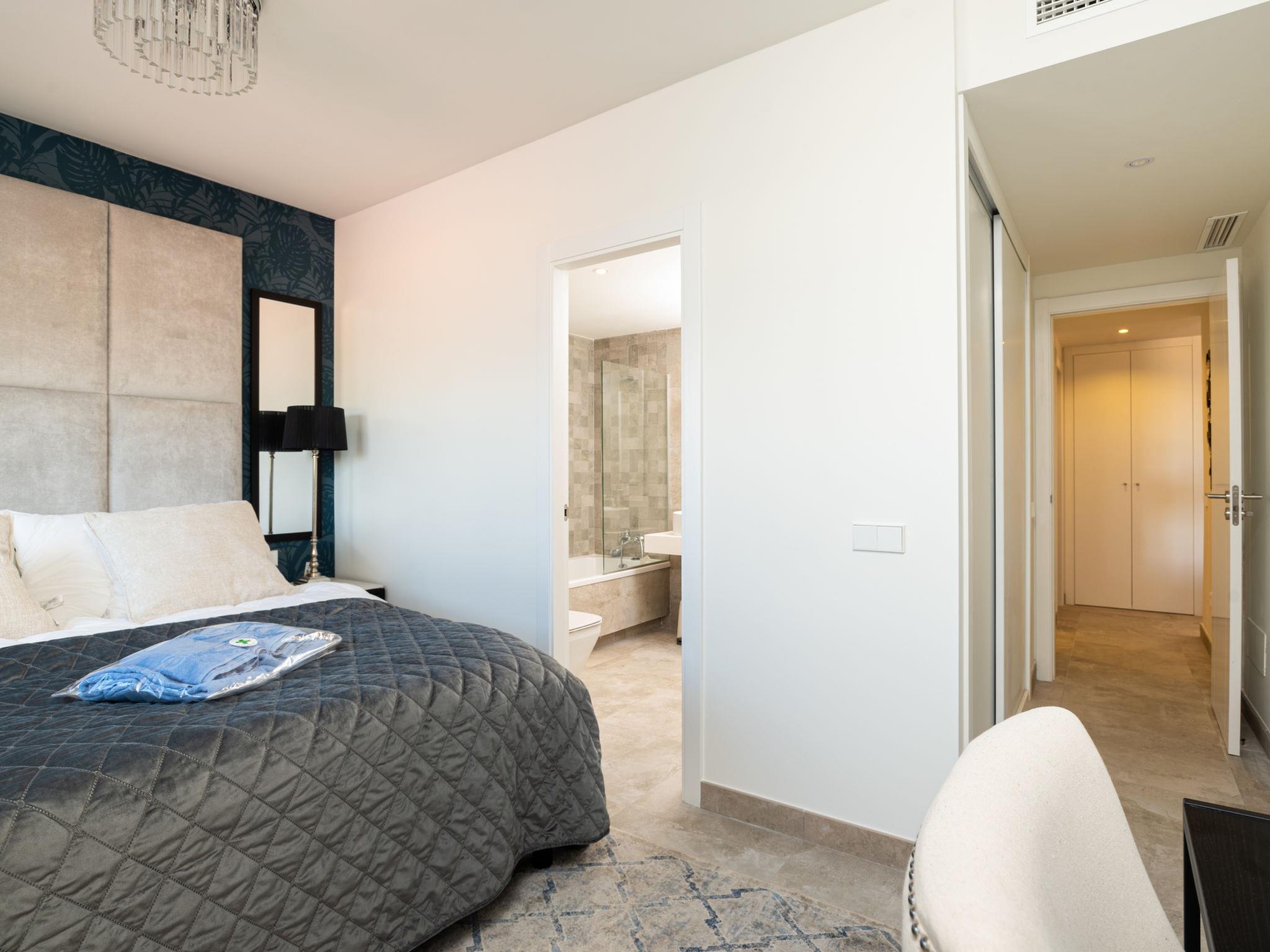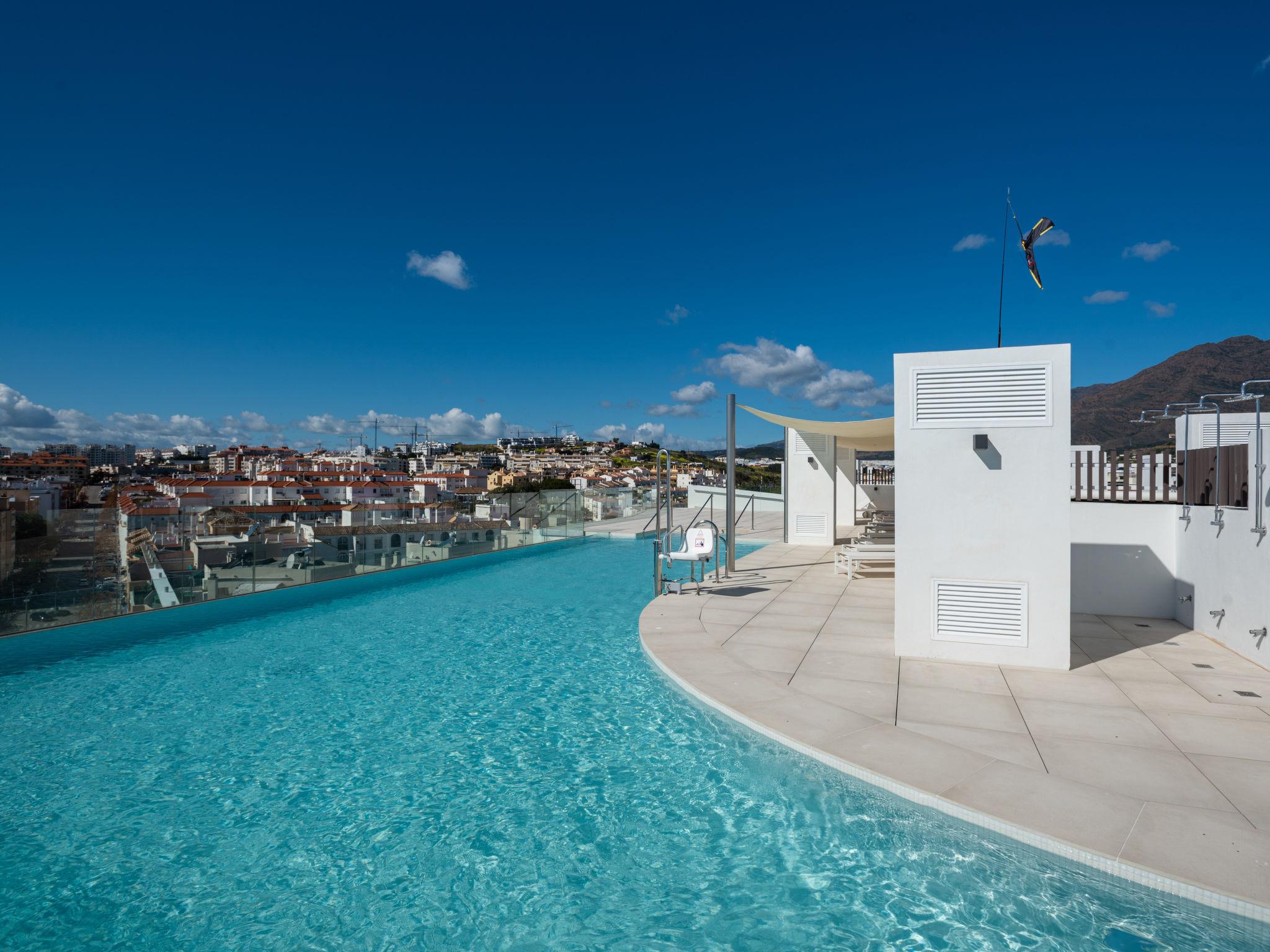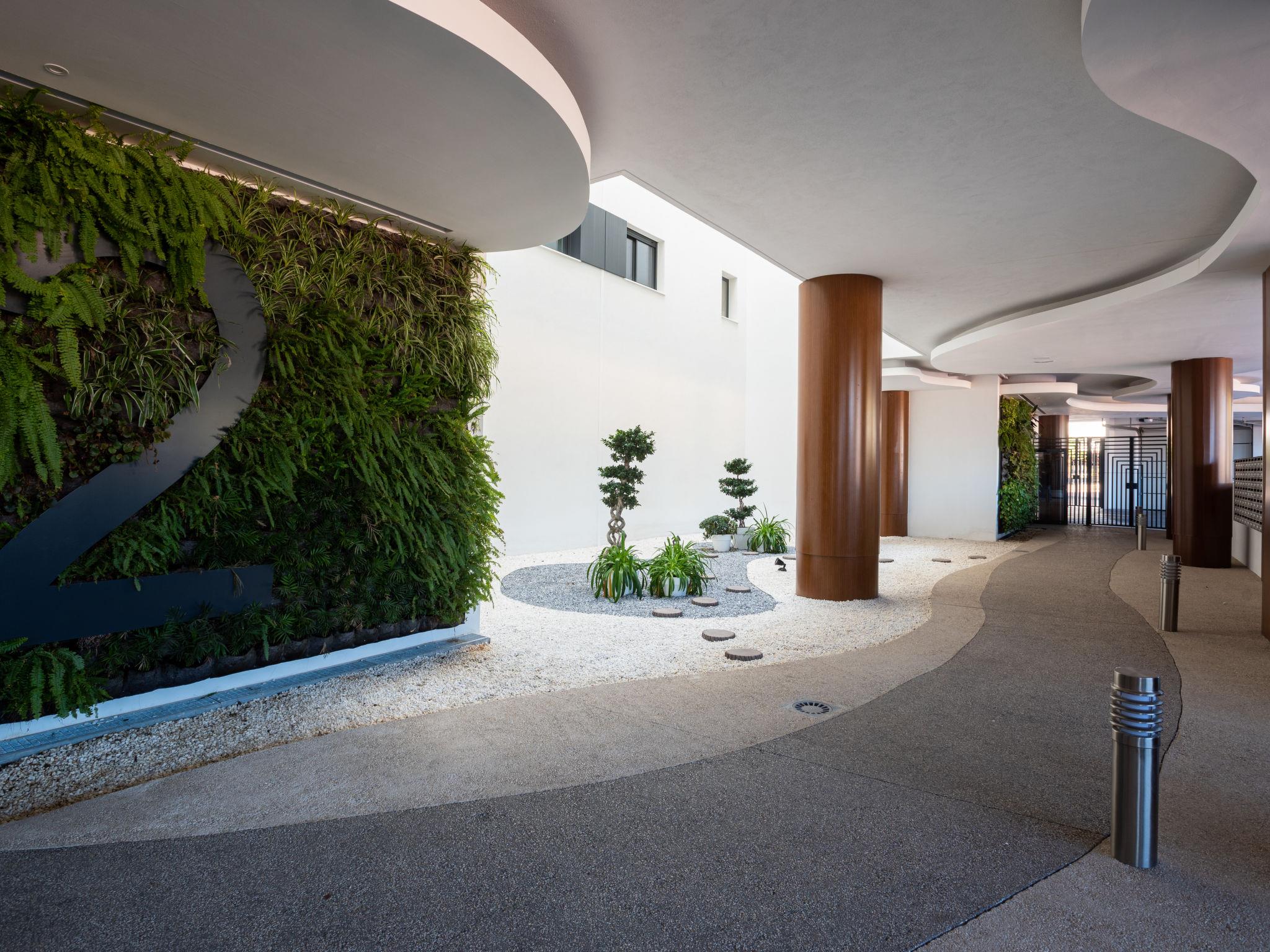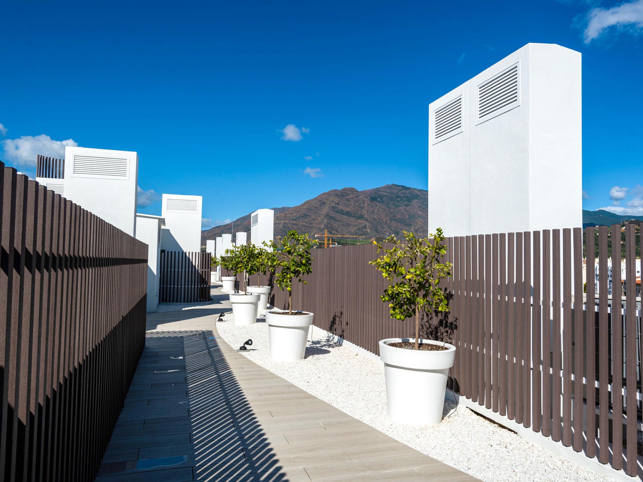 Modern, comfortable apartment block "Estepona Roof Top View", built in 2020. In a central, busy, sunny position, in the heart of the city, 300 m from the sea, 300 m from the beach. For shared use: swimming pool (seasonal availability: 01.Jan. - 31.Dec. pool opening hours: 10:00-22:00). Unconventional pool shape. WC in the pool area. In the complex: lounge, sauna, fitness room, in summer, use of sauna is included, in winter, use of sauna is included, lift, storage room for bicycles. Communal covered parking. Parking space or garage only for small to medium-sized cars. Shop, supermarket 20 m, restaurant 50 m, bar, café 40 m, pedestrian zone, pub garden 50 m, bus stop 100 m, sandy beach "Playa de la Rada" 300 m. Sports harbour 1.5 km, golf course (18 hole) 7 km, sports centre 1.5 km. Nearby attractions: Centro historico de Estepona 100 m, Puerto Estepona 1.4 km, Orchidarium Estepona 800 m, Valle Romano Golf 4 km, Dona Julia Golf 8 km. The owner does not accept any youth groups. Neighbourhood highly sensitive to noise. Quietness and good behaviour expected.