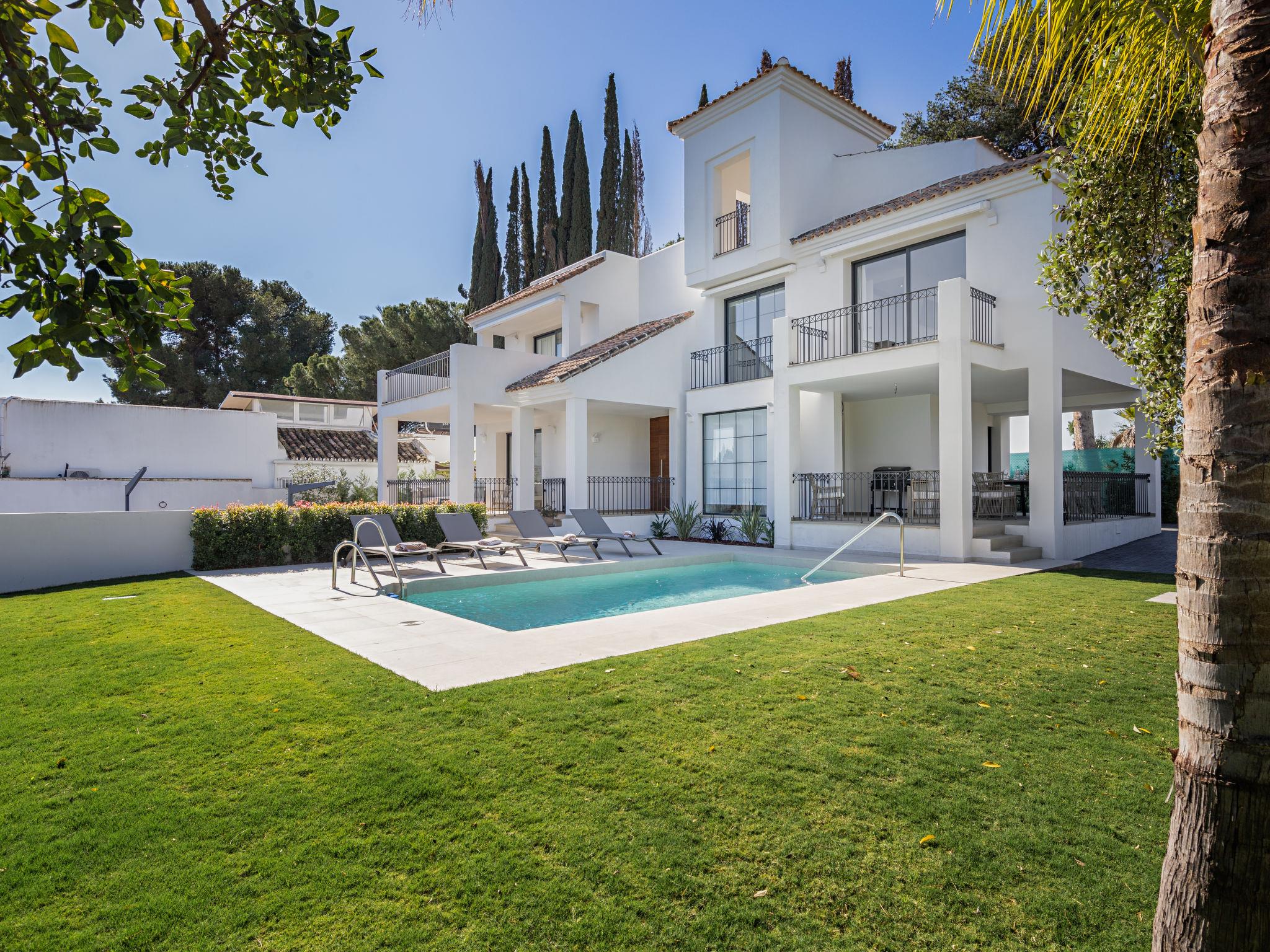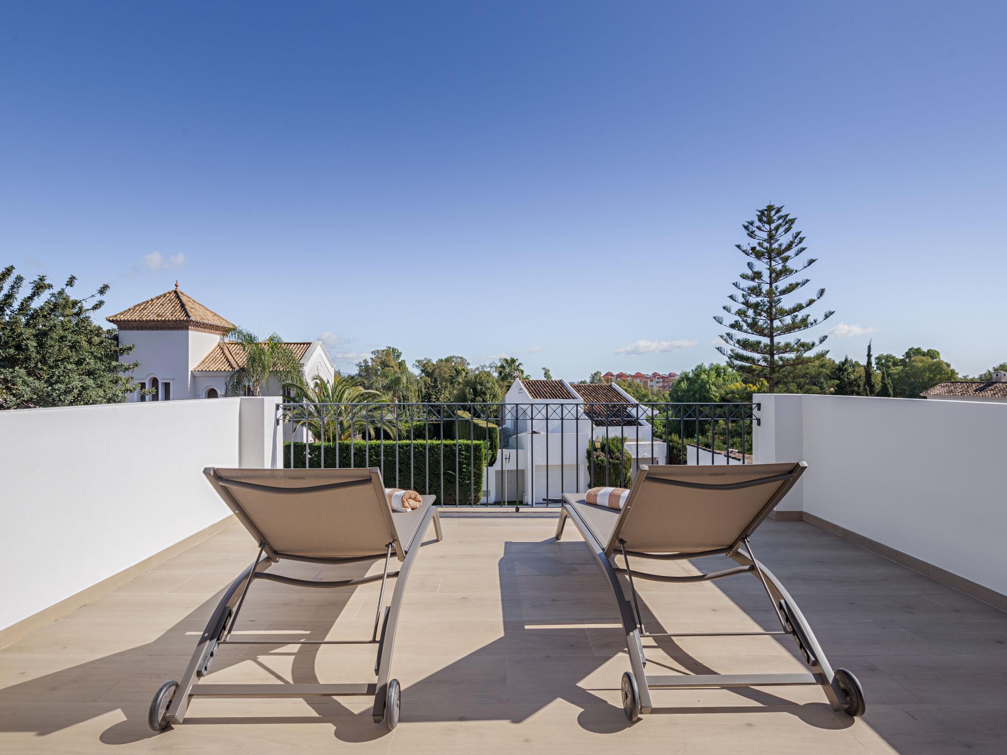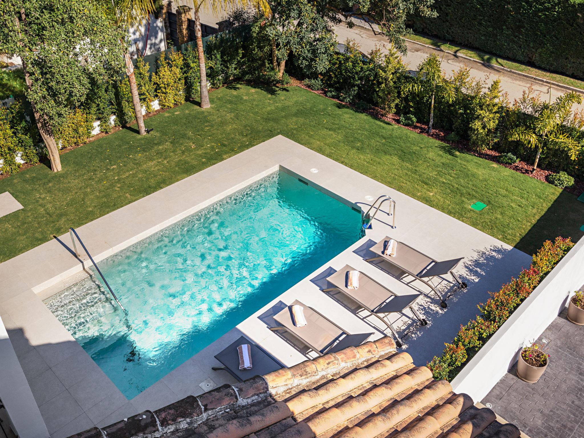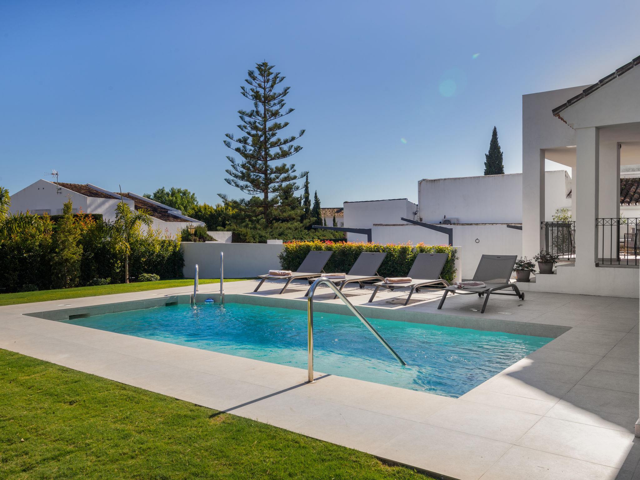 Nueva Atalaya 14 km from Estepona: House "Bonita", 3 storeys, renovated in 2025. 2 km from the sea, 4.3 km from the beach. Private: garden (fenced) with lawn, swimming pool angular (7 x 4 m, depth 110 - 180 cm, seasonal availability: 01.Jan. - 31.Dec.) with internal staircase. Shower/WC in the pool area, outdoor shower. In the house: solarium. Parking (for 2 cars) at the house on the premises. Supermarket 900 m, restaurant 700 m, café 800 m, bus stop "Isdabe" 950 m, railway station "Fuengirola" 46 km, sandy beach "Playa del Saladillo" 4.3 km. Sports harbour 7 km, marina 7 km, golf course (36 hole) 800 m, tennis 550 m, minigolf 13 km. Nearby attractions: Selwo Aventura 8 km, Orchidarium Estepona 14 km, Malaga 72 km, Gibraltar 62 km, Marbella Center 17 km, Historic Center Estepona 14 km. Well-known lakes can easily be reached: Lago de Las Tortugas 12 km, Reserva Natural Laguna Fuente de Piedra 140 km. Hiking paths: Senda Litoral Atalaya Isdabe - Marbella 13 km, Caminito del Rey 86 km. Please note: car recommended. The owner does not accept any youth groups. Neighbourhood highly sensitive to noise. Quietness and good behaviour expected.