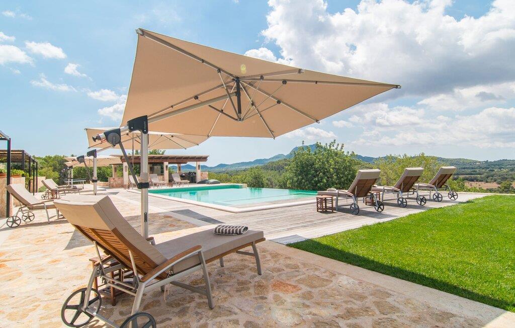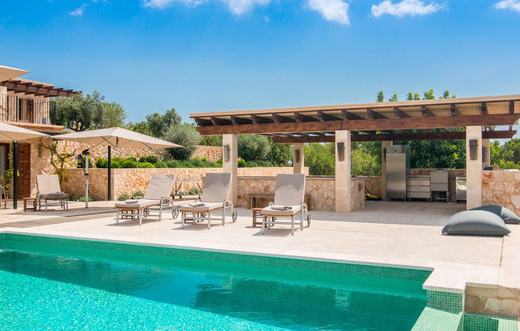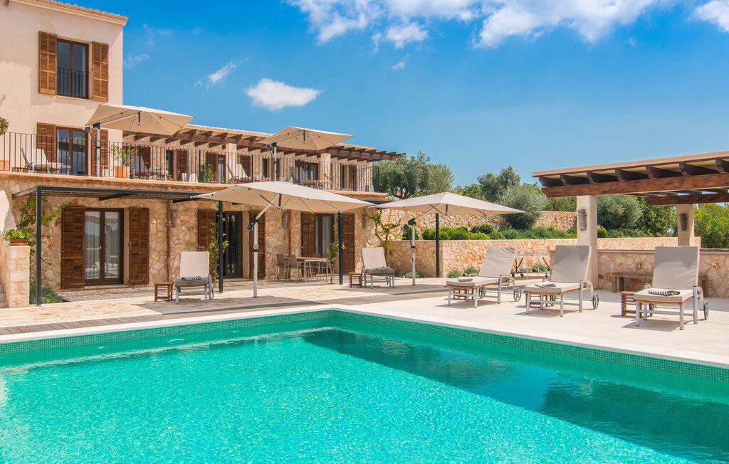 Hasta la vista – bis zum nächsten Mal! Klassische Eleganz in Perfektion: Die großzügige, 2015 erbaute Villa „Hasta la Vista“ mit Pool, mehreren Terrassenebenen und luxuriöser Ausstattung liegt etwas abgelegen auf einem Hügel und daher absolut ruhig. Da Felanitx und Manacor in der Nähe liegen, ist es gut an Geschäfte und Restaurants angebunden. Der wunderbare Ausblick auf das Inselinnere und die umliegenden Berge macht das Objekt zu einem idealen Ort für Wellnessurlaube und kreative Auszeiten; Schöne Strände sind nur 15 km entfernt.