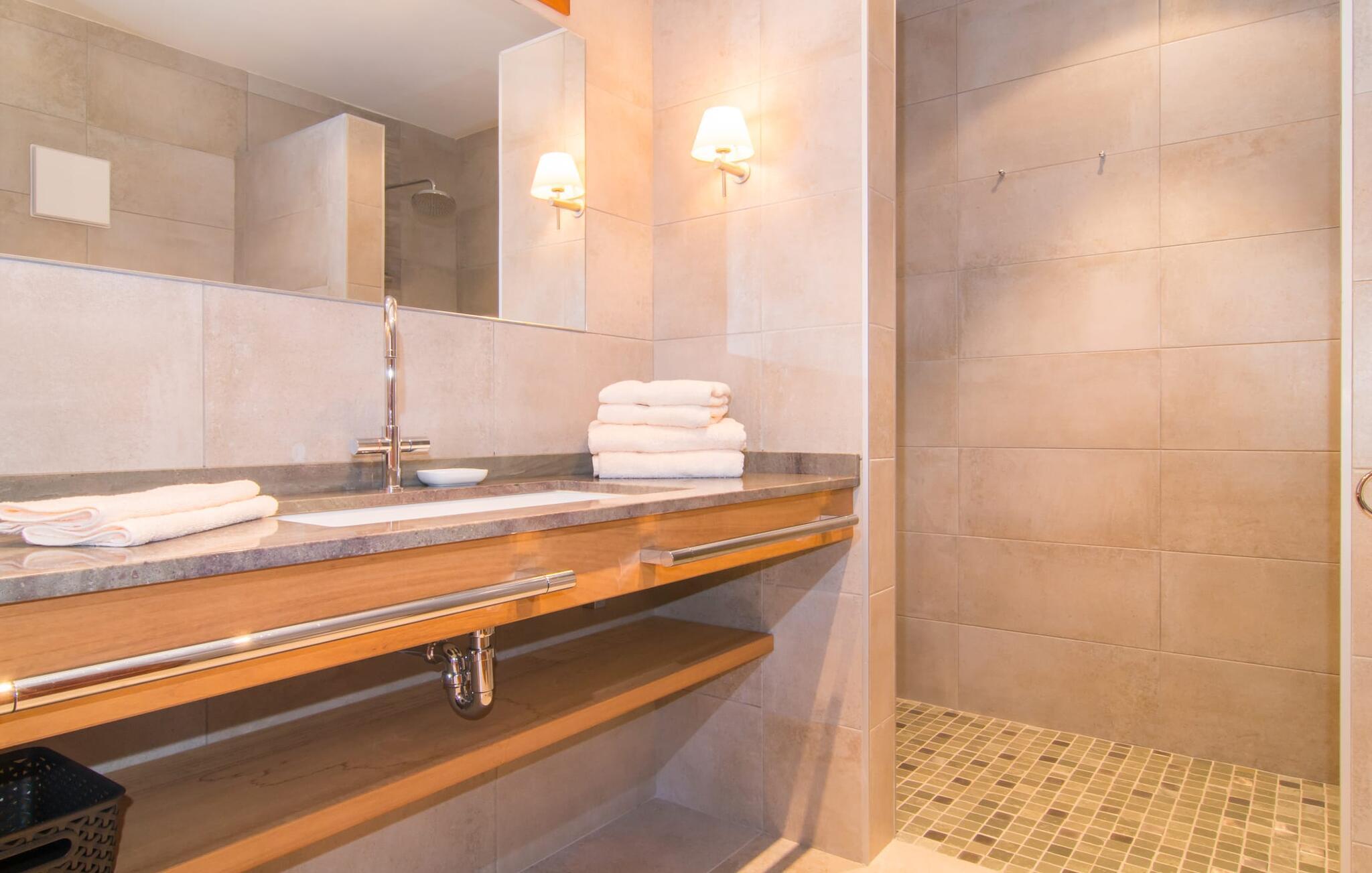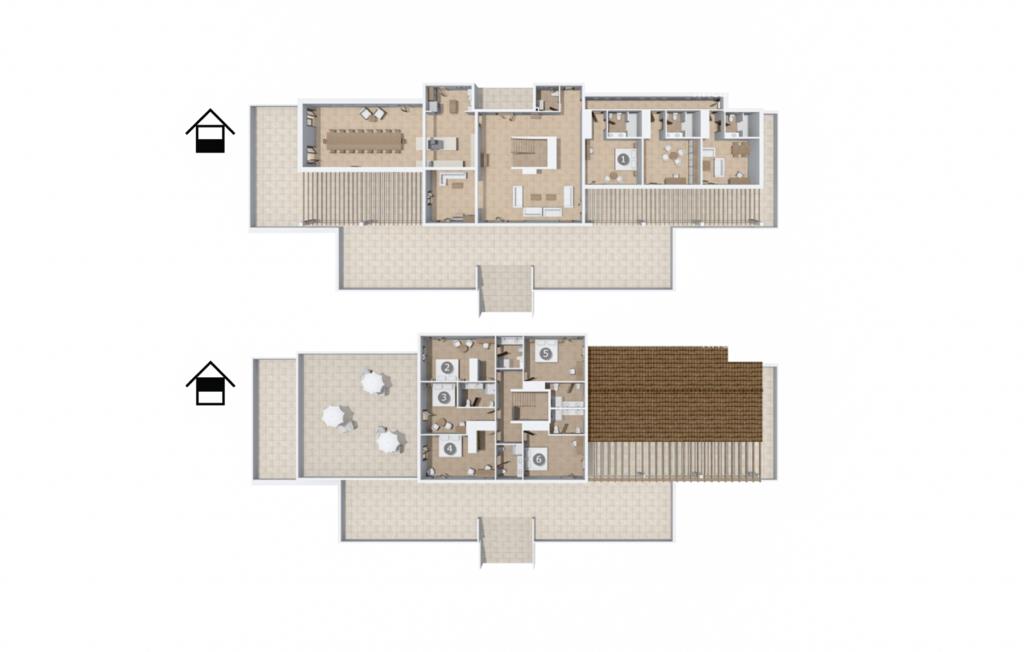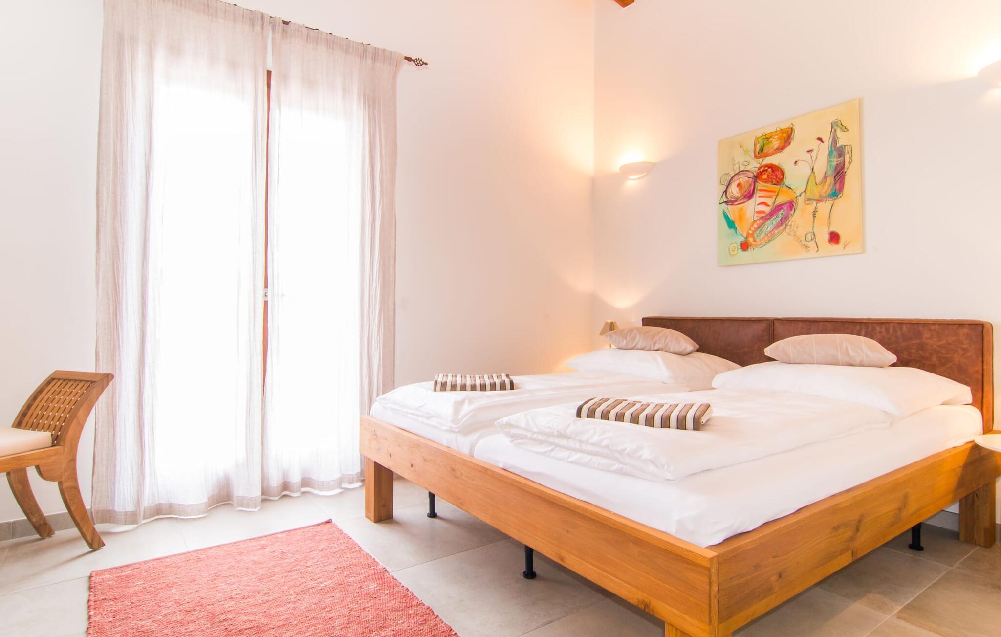 Das Innere des Hauses offenbart viele Schätze. Und es gibt viele. Wie zum Beispiel die professionelle „Hochglanz“-Küche, die aussieht, als wäre sie einer Miele-Werbung entsprungen: weiße Farbe, Arbeitsplatten, auf denen man sich selbst sehen kann, der lange Esstisch, der sich perfekt für Arbeitstreffen eignet, exklusive Accessoires wie ein Miele-Gerät Kaffeemaschine - hier wurde an alles gedacht. Sofas in stilvollem Grau oder warmem Himbeerrot laden zum Ausruhen, einer kurzen Siesta oder zum Fußballschauen im Fernsehen ein. Minimalistische Akzente und Holzelemente geben der schlichten Eleganz den richtigen Rahmen. Vom Eingang nach links gelangen Sie über einen langen Flur in die ersten, rollstuhlgerechten Schlafzimmer, jeweils mit einem hochmodernen Badezimmer (eines davon mit Badewanne), edlen Holzbetten und direktem Zugang zur Terrasse. Farbtupfer setzen die dezente Ausstattung perfekt in Szene. Im Obergeschoss befinden sich fünf weitere Schlafzimmer mit Badezimmern, alle en-suite, und drei mit Zugang zu einer großen Terrasse. Das Haus verfügt über zwei weitere Apartments auf der Poolebene mit jeweils zwei Schlafzimmern und eigenem Bad für acht weitere Personen. Diese Einheiten können zusätzlich gebucht werden – weitere Informationen auf Anfrage. Gegen eine eventuelle Gebühr können Sie in der Villa auch Feierlichkeiten aller Art wie Hochzeiten und andere Veranstaltungen abhalten, diese bedürfen jedoch der vorherigen Zustimmung und Zustimmung des Eigentümers.