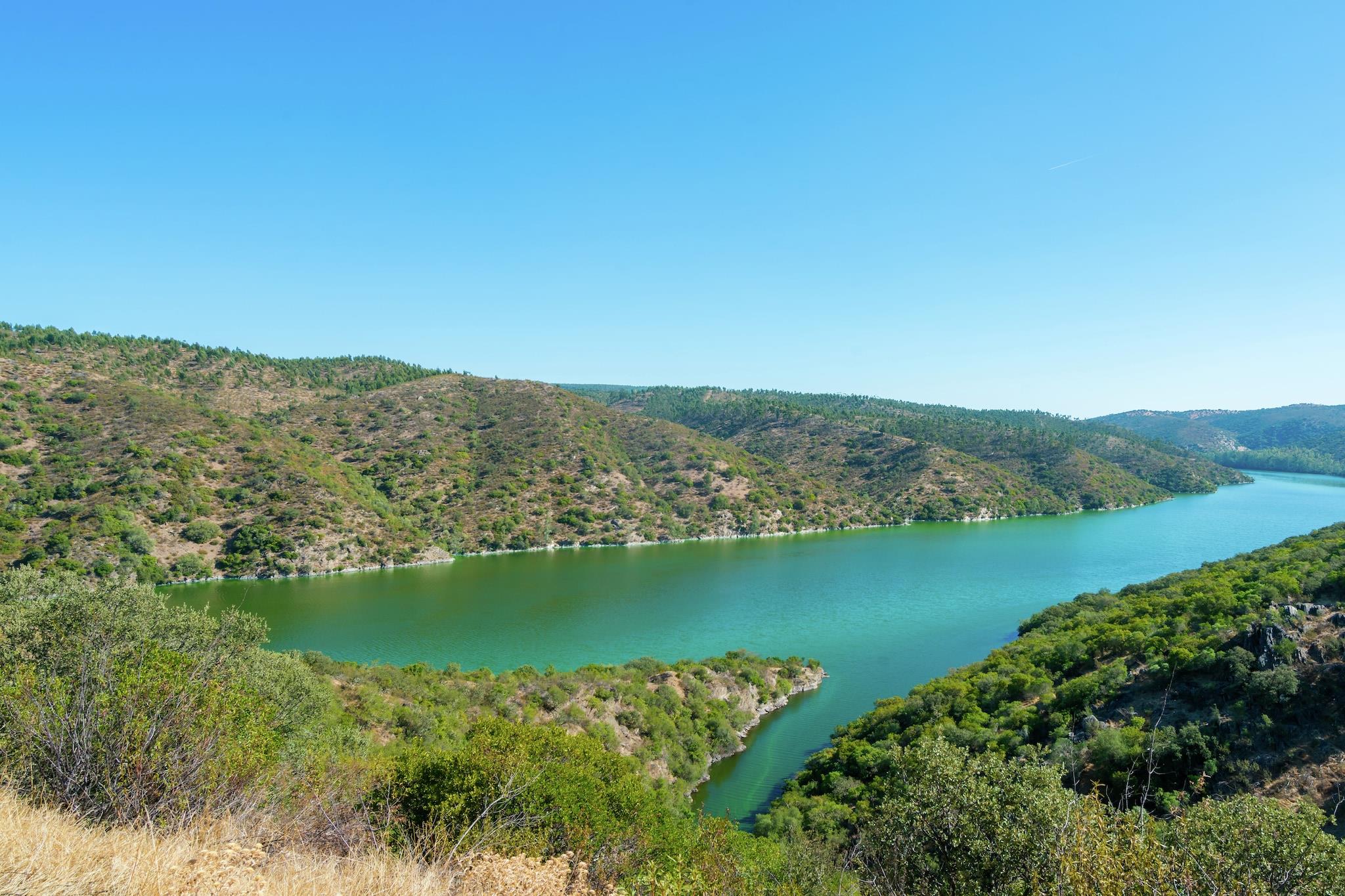 Located in Herrera de Alcántara, on the river Tajo, this is a 3-bedroom holiday home. The home is equipped with central heating and a shared swimming pool. Small families and groups of 6 will stay here in comfort. Herrera de Alcántara is situated in the heart of the nature reserve Tajo Internacional, in a protected bird area. The holiday home is surrounded by local vegetation, strawberry trees, and rosemary bushes. There are various activities like walking, cycling, horse riding, hunting, and fishing to enjoy in the area. The lake at 5 km is great for a day-trip. Restaurants lie at 9 km while supermarkets lie at 10 km. All three bedrooms have double beds. The fireplace in the living room spreads the warmth. At the terrace with the barbecue, you can enjoy summer evenings. In the garden, you can lie down with a book and play ball games. 2 bathrooms are at your disposal.