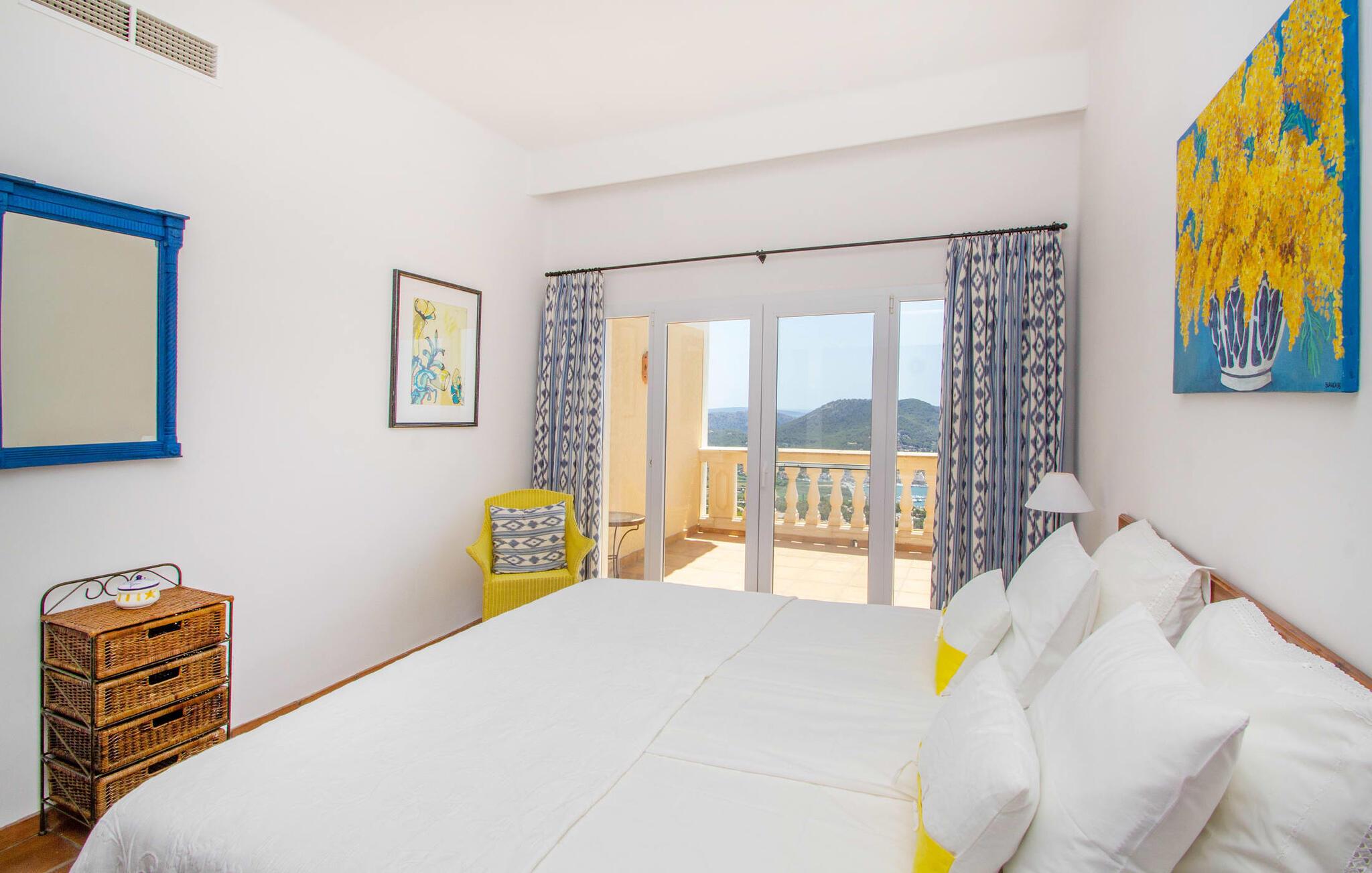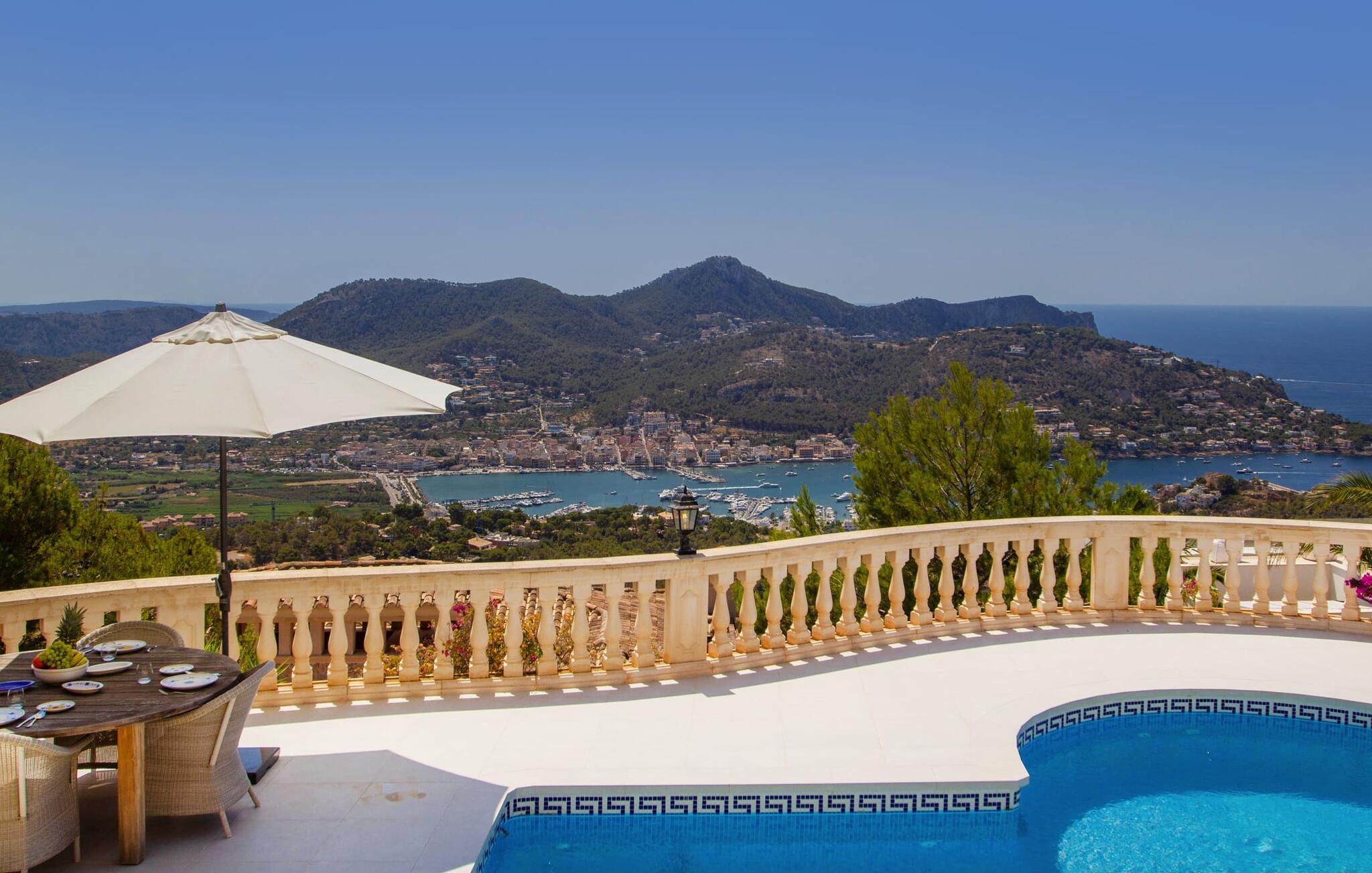 Die bekannte Hafenstadt Port d'Andratx hat einen Hauch von Adel. Dazu trägt auch die exklusive Wohngegend bei, in der sich die „Ferienvilla Port d’Andratx“ befindet. Neben einem großen Bereich für private Yachten beherbergt dieser Naturhafen auch die größte Fischereiflotte der Insel. Auch das trägt zur spannenden Mischung dieser schicken Küstenstadt bei. Im CCA (Centrum Cultural Andratx) können Sie moderne Kunst und Architektur entdecken. Andere möchten vielleicht einkaufen gehen oder eines der hervorragenden Restaurants oder Cafés besuchen. In der Umgebung können Sie wunderschöne Strände sowie die Stadt Andratx erkunden. Auch ein Ausflug nach S'Arraco, einem kleinen Dorf im Tal, lohnt sich. Für Sportbegeisterte bietet die Region viel zu unternehmen: Wandern (im Tramuntana-Gebirge oder zum ehemaligen Trappistenkloster La Trapa), Radfahren, Golfen auf einem der nahegelegenen Golfplätze. Entdecken Sie bei Ihrem Aufenthalt in der „Holiday Villa Port“ die Vielfalt des Westens – ein einzigartig schöner, sonnenverwöhnter Ort. Die luxuriöse Meerblick-Villa „Holiday Villa Port d'Andratx“ liegt in ungestörter Alleinlage im noblen Wohnviertel Mont Ports oberhalb der schicken Hafenstadt Port d'Andratx. Es bietet spektakuläre Ausblicke auf den Hafen, die Bucht von Palma und das Tramuntana-Gebirge. Einkäufe des täglichen Bedarfs können in Andratx oder Port d'Andratx getätigt werden, beide sind in fünf Minuten mit dem Mietwagen erreichbar. Wunderschöne Naturbuchten und gut erschlossene Stadtstrände wie Camp de Mar sind in angenehmer Fahrzeit zu erreichen.