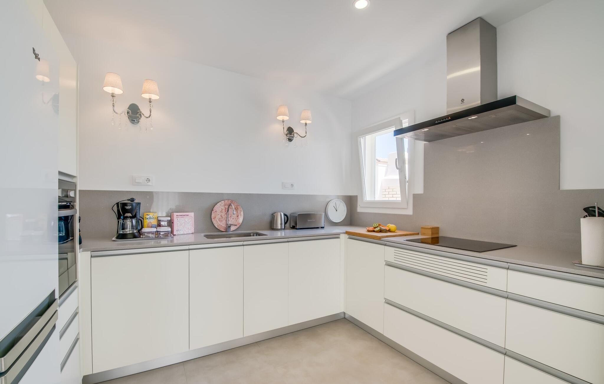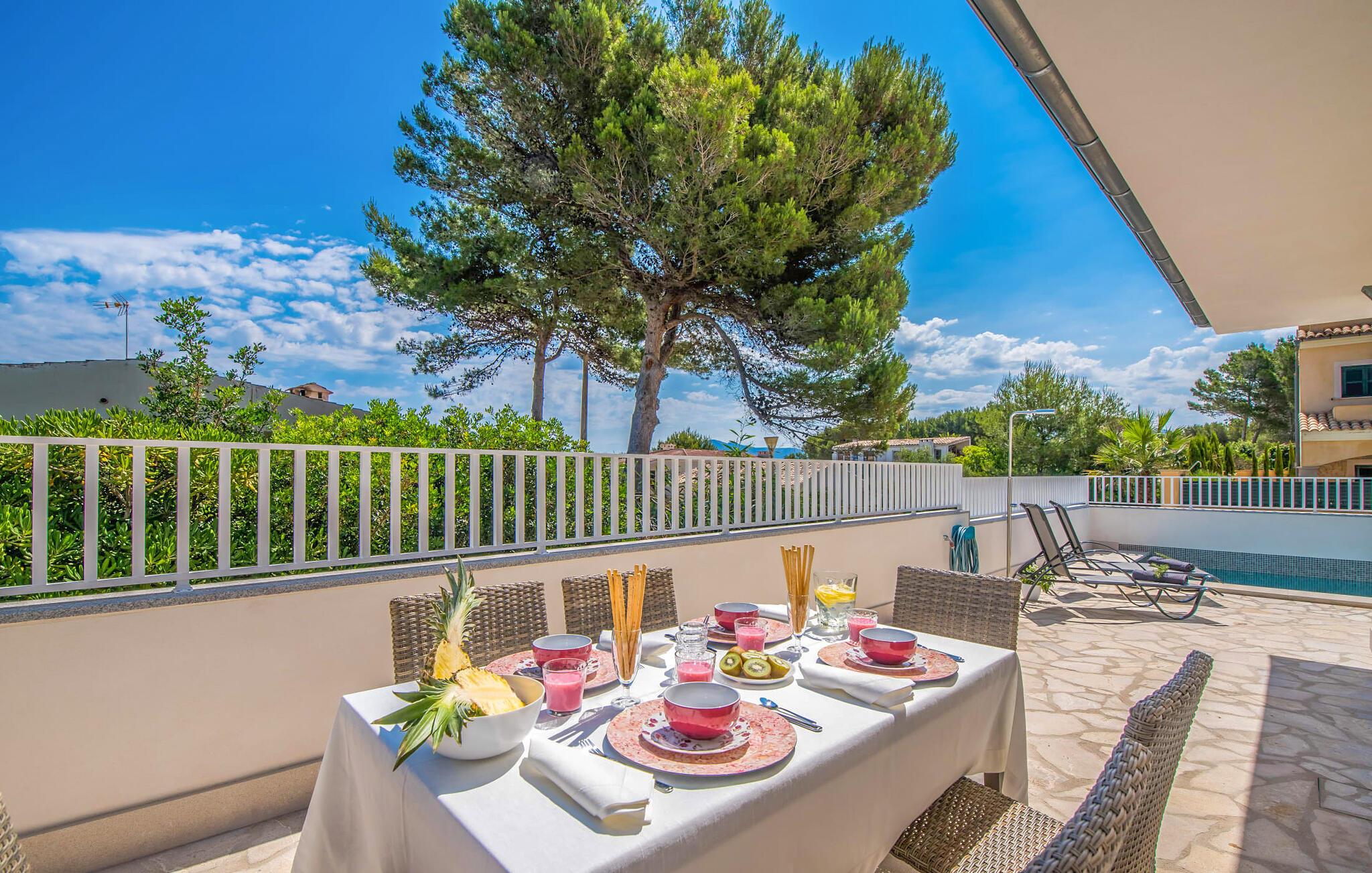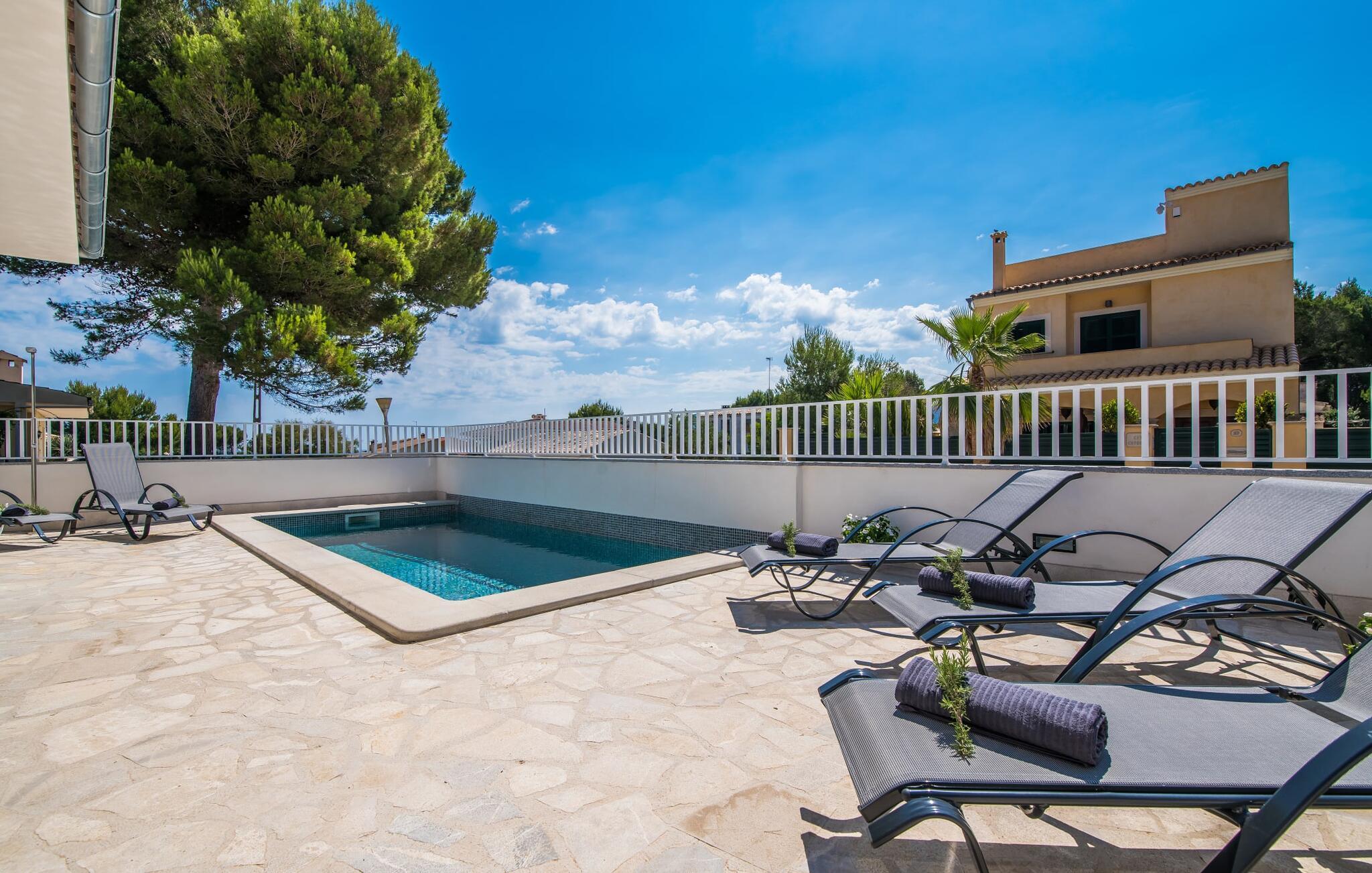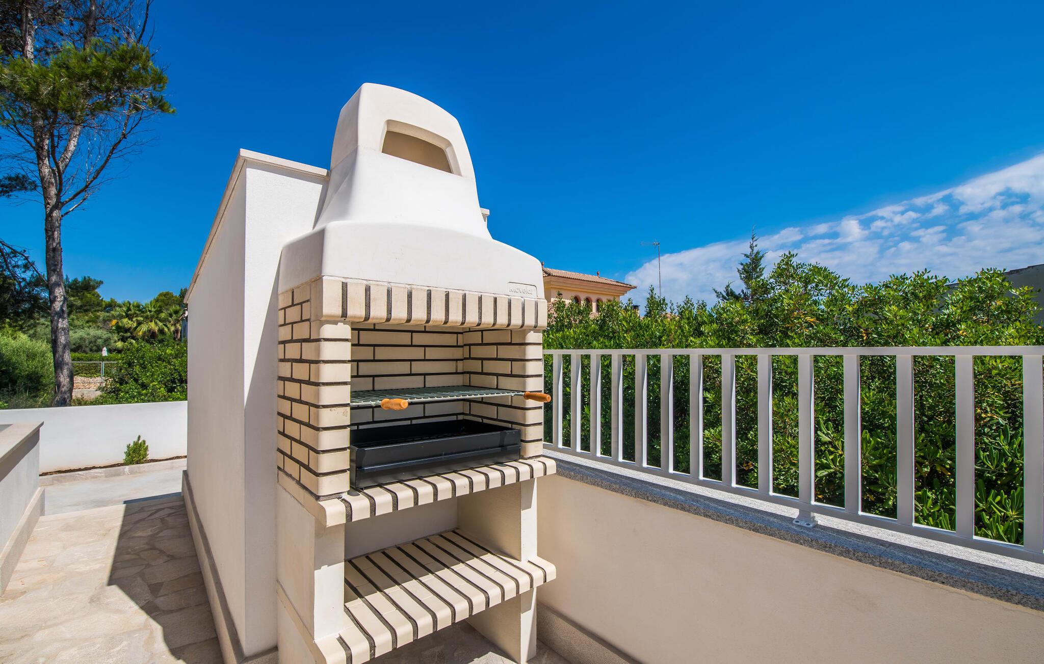 Die Villa „Isabel Son Serra de Marina“ liegt auf einem komplett eingezäunten Grundstück von 315 m². Zwei große Sonnenterrassen vor und hinter dem Haus sind mit modernen, hochwertigen Outdoor-Möbeln ausgestattet. Klare geometrische Formen und ein minimalistisch gestalteter Außenbereich verkörpern eine moderne Interpretation der elementaren und puristischen Tendenzen der 80er Jahre, einen bewussten Bruch mit dem Trend der Wellen von Farben und Formen – dieser Designstil gilt bis heute als wegweisend für beide Richtungen funktional und cool. Ein großer Pool unterschiedlicher Tiefe mit Außendusche direkt neben dem Haus sorgt an warmen Tagen für die nötige Erfrischung; Zum Entspannen stehen bequeme Sonnenliegen bereit. Auf der anderen Seite des Hauses befindet sich eine Terrasse mit eingebautem Holzkohlegrill, großem Esstisch und Sitzmöglichkeiten für bis zu sechs Personen. Genießen Sie ein ausgiebiges Frühstück im Freien oder verbringen Sie gemütliche Stunden bei Kerzenschein, während Sie dem sanften Rauschen der Wellen im Meer lauschen.
