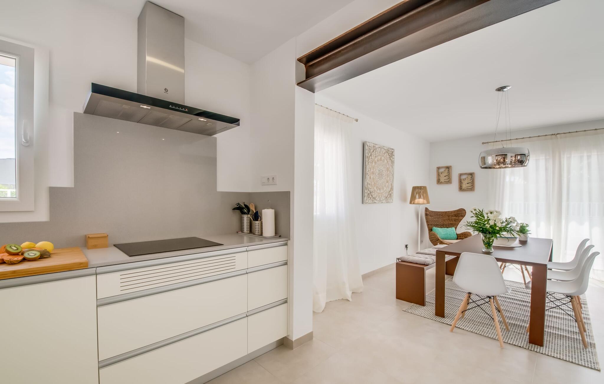 Die Räume des 120 m² großen Hauses verteilen sich über das Erdgeschoss. Der modern eingerichtete, helle Wohnraum mit separatem Ess- und Wohnbereich mündet in eine offene Küche. Weiße Vorhänge vor bodentiefen Fenstern sorgen für viel Licht und sorgen für eine heimelige Atmosphäre. Vom gemütlichen Sofa aus können Sie Ihre Lieblingssendungen auf dem großen Flachbildfernseher ansehen. Genießen Sie im Urlaub vollen Internetzugang? Keine Sorge! Stöbern Sie einfach über das WLAN. Die offene Küche Ihrer Villa ist mit modernsten Geräten ausgestattet; Ein geräumiger Kühlschrank bietet ausreichend Platz für ausgedehnte Einkaufstouren. Die drei Schlafzimmer, ebenfalls im Erdgeschoss gelegen, sind funktional und in hellen Farben gestaltet. Der Mix aus weißen Möbeln und ausgewählten Farbakzenten erzeugt einen gemütlichen Eindruck. Zwei Doppelzimmer verfügen über 1,60 x 2 m große Doppelbetten; Das dritte Zimmer verfügt über ein Einzelbett für einen weiteren Reisenden. Alle Schlafzimmer sowie der Wohnraum sind voll klimatisiert. Zwei moderne Tageslichtduschen mit begehbarer Dusche – eines davon en-suite – machen Ihre Morgenroutine zum wahren Vergnügen.