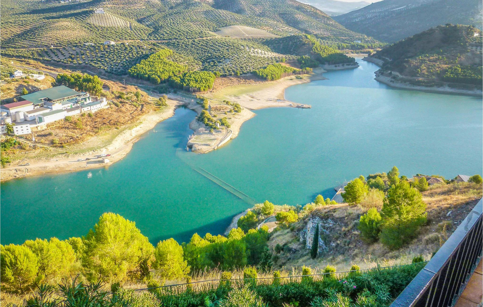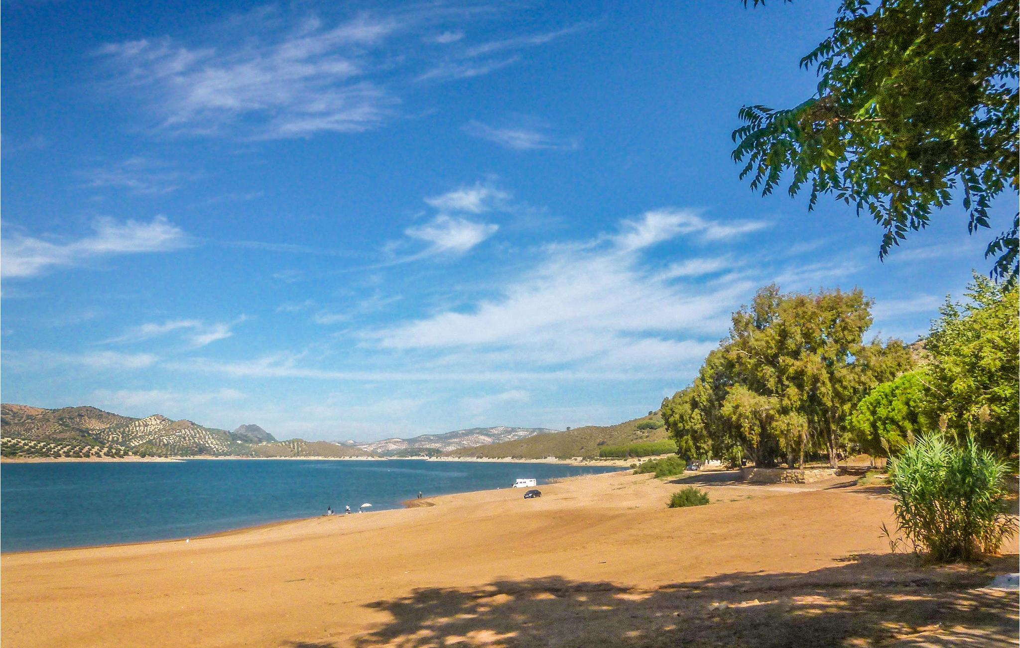 Das erst vor kurzem am Stausee von Iznajar errichtete Haus wurde mit neuen, hochwertigen Möbelstücken eingerichtet. Einen herrlichen Blick auf diesen fünftgrößten See Spaniens und die Berge dahinter hat man vom geräumigen Wohnzimmer sowie den Schlafzimmern aus. Der Außenpool wird von einer weitläufigen Terrasse mit Grill umrandet und der gepflegte Garten von Blumen und Obstbäumen verziert. Die Unterkunft ist mit Fitnessgeräten ausgesattet. Gleich in der Nähe erwarten Sie außer einem schönen Restaurant noch ein Badestrand mit Sand und ein üppiger Pinienwald. Der See in der Nähe des Hauses hat einen kleinen Yacht Club, wo man Kanus und ein kleines Segelboot mieten kann, sowie andere Freizeitaktivitäten wie z.B. Reiten.