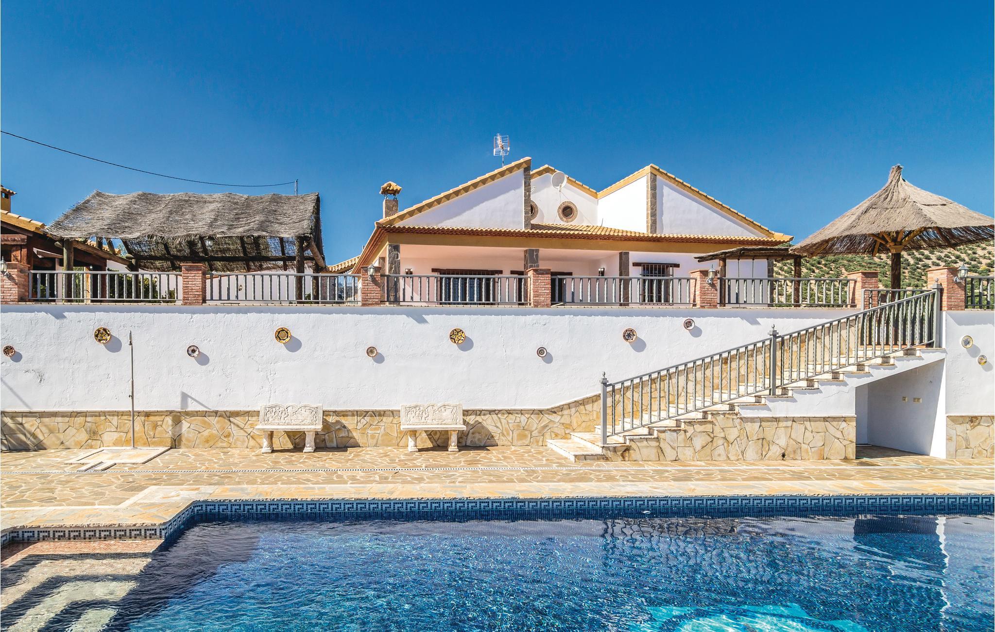 Fantastisches Ferienhaus für 8 Personen mit einem tollen Pool mit Blick auf den See, der viel Privatsphäre und Platz im Freien bietet. Sie können den Grill, den Pavillon im Freien, die Tischtennisplatte im Freien und die 8 Liegestühle für den Pool genießen oder die Klimaanlage und die bequemen 2 Meter langen Betten im Inneren nutzen. Mit seinem spektakulären Panoramablick auf den See, die Berge und die Stadt Iznájar bietet diese Villa die perfekte Lage, um Andalusien zu erkunden. Sie liegt zwischen den Städten Cordoba, Malaga, Sevilla und Granada und natürlich in der Nähe vieler anderer interessanter Orte wie El Torcal de Antequera. Es gibt auch einen großen Parkplatz auf dem Boden, dessen gesamter Umfang im hinteren Bereich von Mauern begrenzt und im Übrigen von Zäunen umgeben ist. Der Komfort des Innenraums, wie der Kamin und die Heizung, machen dieses Haus zu einem idealen Ort auch für einen Winterurlaub.