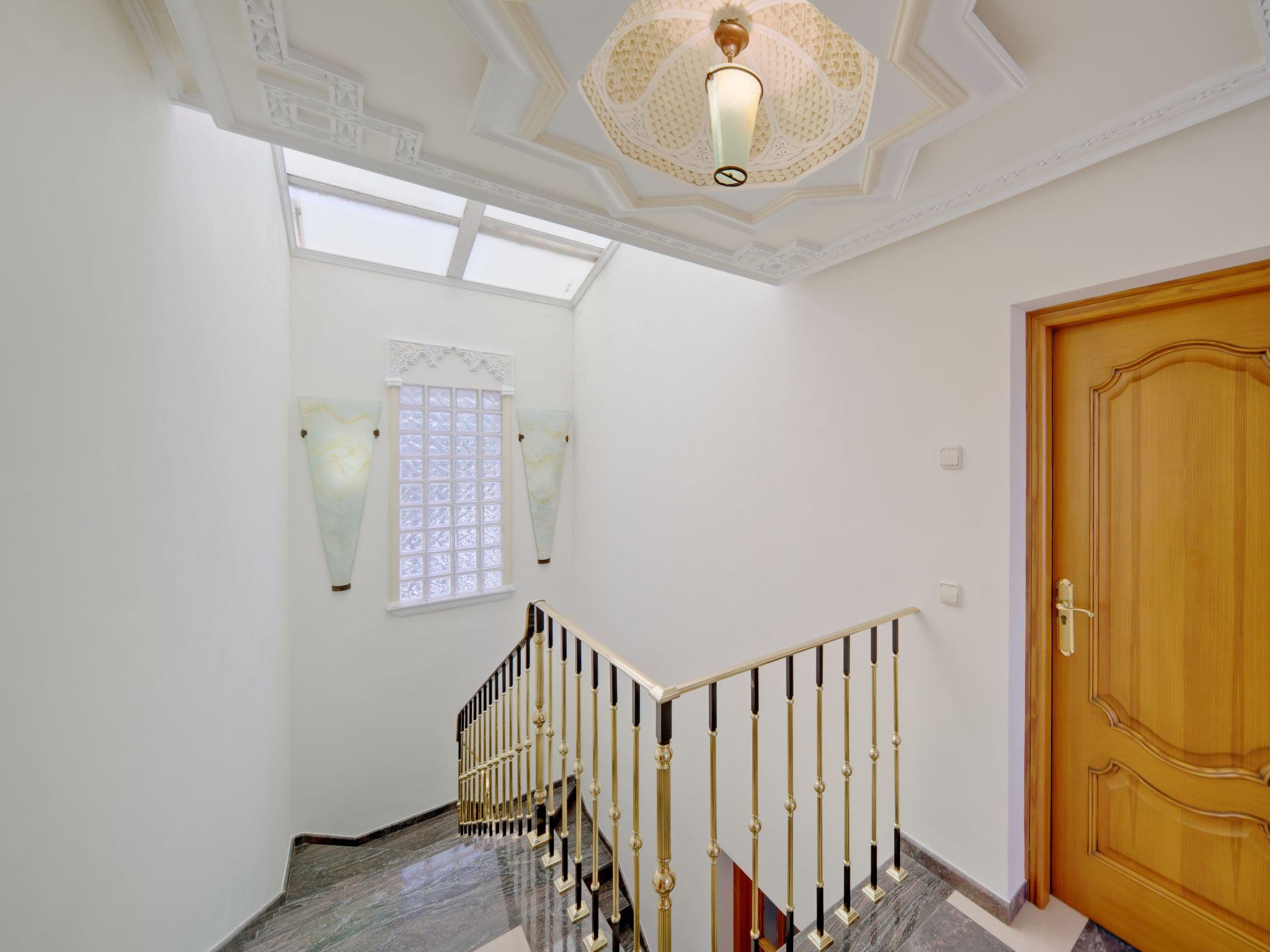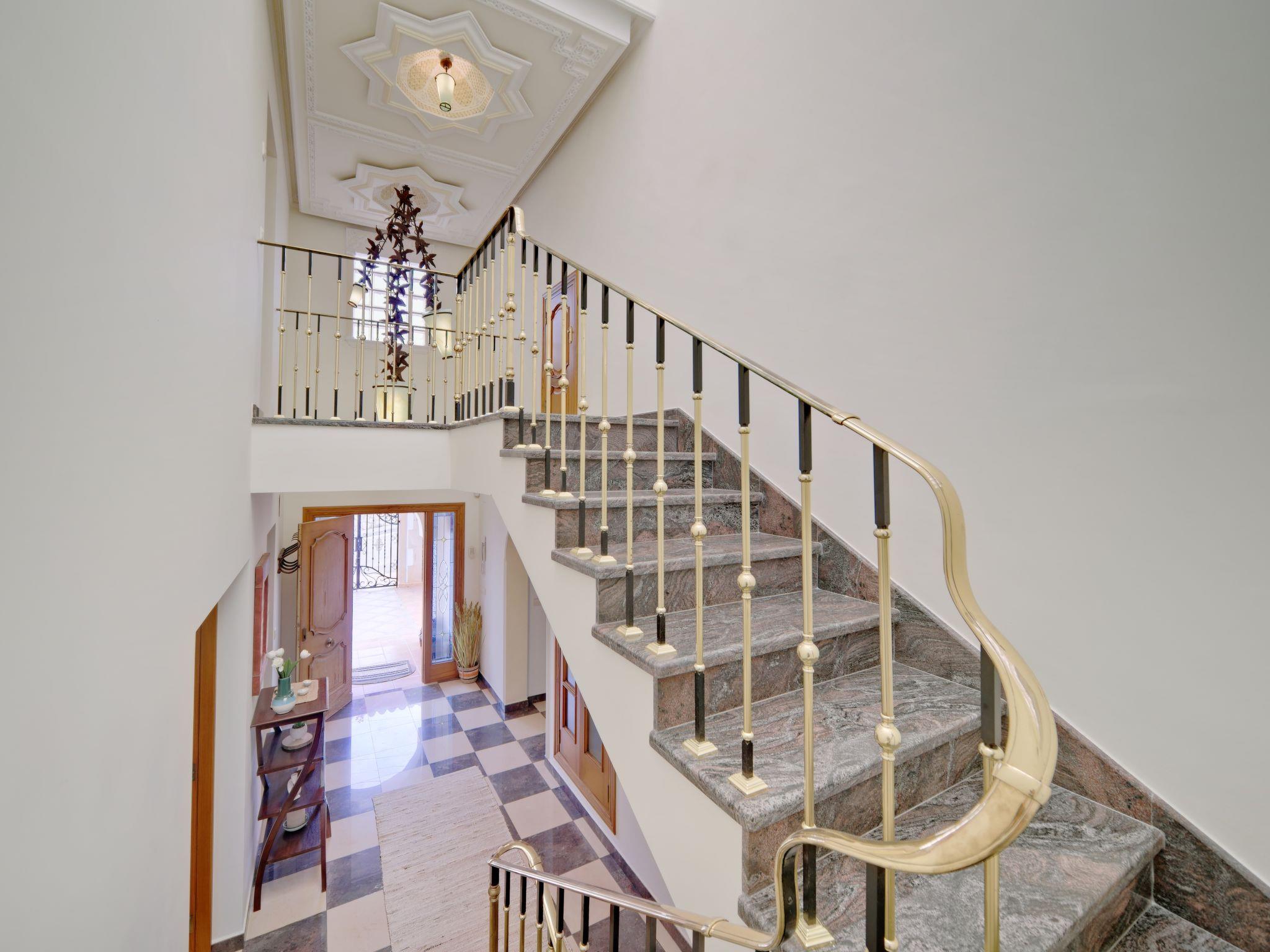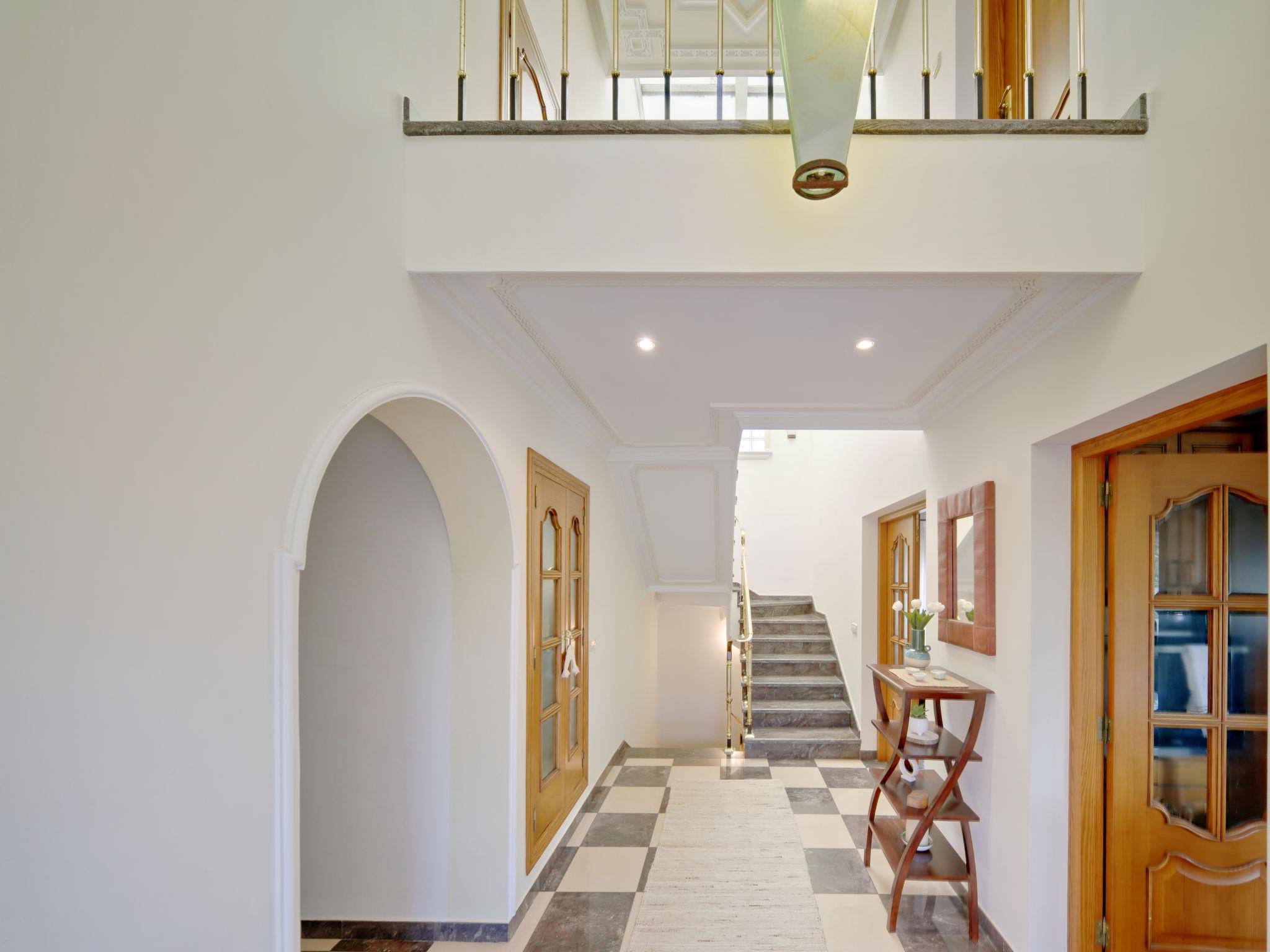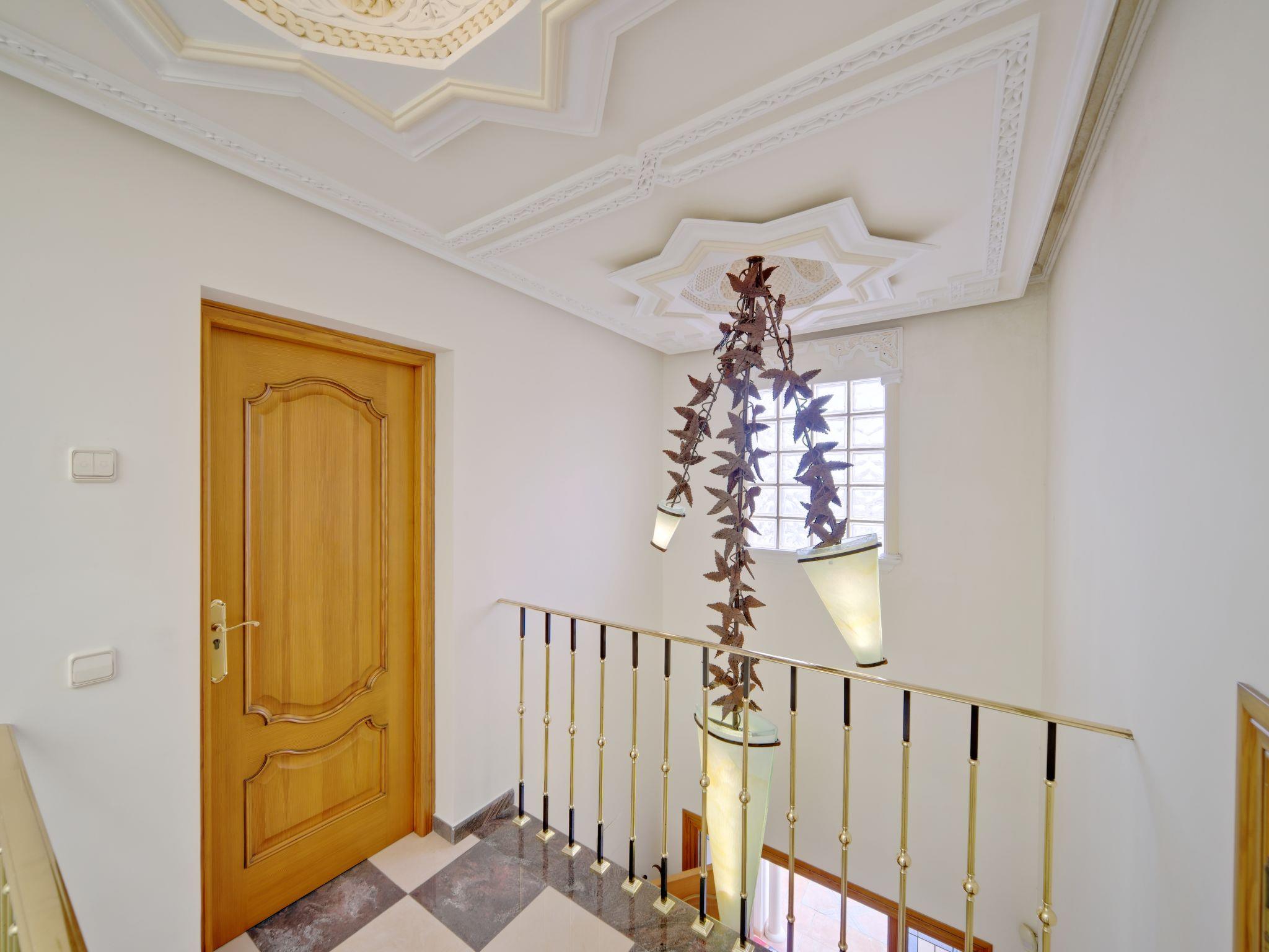 Very large, very beautiful, very comfortable villa "Carpe Diem", 3 storeys. In the district of Pinosol, in the resort 2.8 km from the centre of Arenal Javea, in a quiet, sunny position, 2.8 km from the sea, 2.8 km from the beach. Private: beautiful, well-kept garden (fenced), orchard (fenced), swimming pool (14 x 5 m, depth 40 - 210 cm, seasonal availability: 01.Jan. - 31.Dec.) with internal staircase. Shower/WC in the pool area, pool house with fridge and cooking stove, pergola, garden furniture, barbecue house, parking (for 4 cars) on the premises. Supermarket 2.3 km, restaurant 500 m, café 550 m, bus stop "Parada antiguo Mas y Mas" 2 km, sandy beach "El Arenal" 2.8 km, rocky beach "Segundo Muntanya" 3 km. Sports harbour 2.8 km, surf school 2.8 km, sailing school 2.8 km, tennis 3 km. The owner does not accept any youth groups.