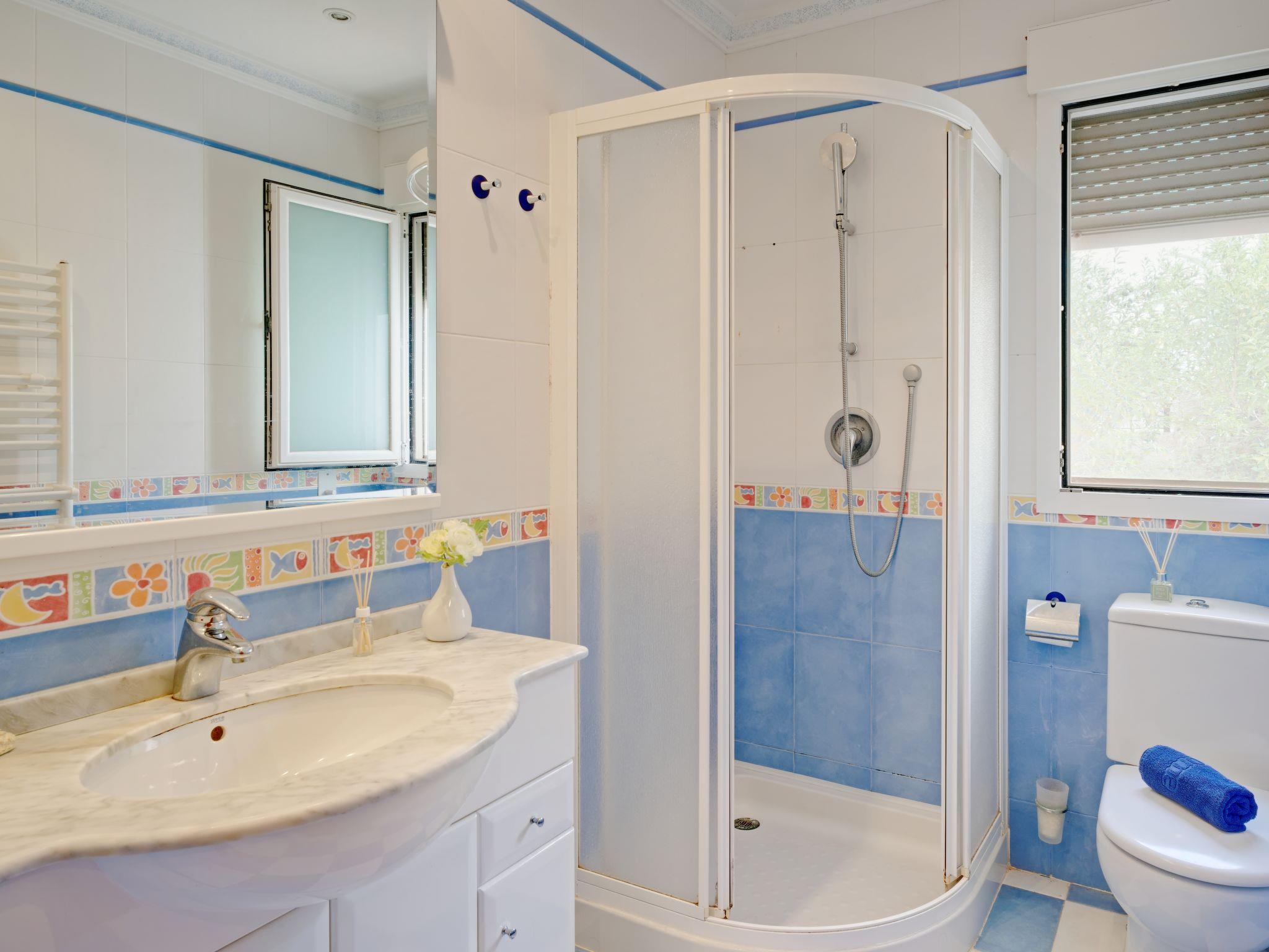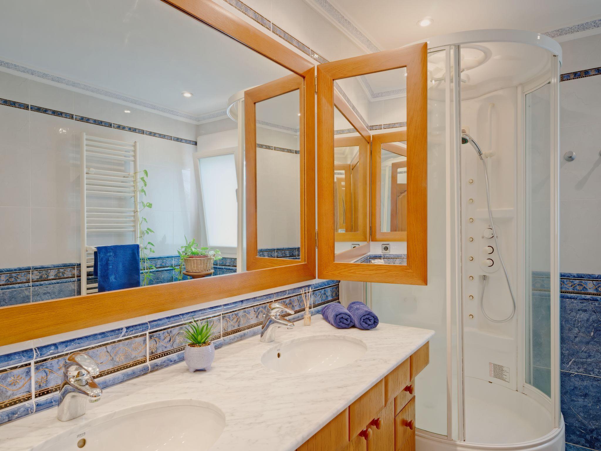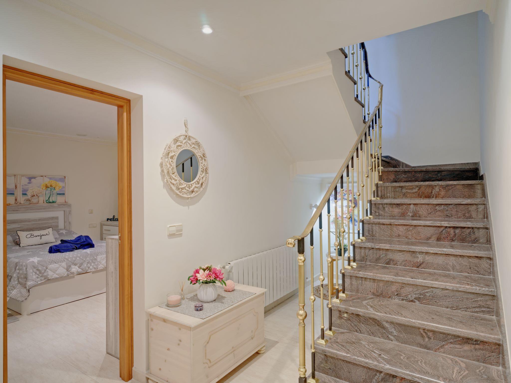"Villa Carpe Diem", 5-room villa 250 m2 on 3 levels. Spacious and bright, very comfortable and stylish furnishings: living/dining room with satellite TV, air conditioning and forced-air heating. Exit to the patio, to the swimming pool. 1 room with 2 beds (90 cm, length 200 cm), shower/WC and fan. 1 room with 2 beds (90 cm, length 200 cm), fan. Open kitchen (oven, dishwasher, 4 ceramic glass hob hotplates, toaster, microwave, freezer, electric coffee machine). Shower/WC. On the lower ground floor: 1 room with 1 french bed (135 cm, length 200 cm), fan. Shower/WC. Upper floor: 1 room with 1 double bed (2 x 90 cm, length 200 cm), shower/bidet/WC, double hand-basin, satellite TV, air conditioning and forced-air heating. Exit to the balcony, to the terrace. Large terrace 200 m2. Terrace furniture, barbecue, deck chairs, covered balcony, sitting area. Very beautiful view of the sea, the mountains and the valley. Facilities: washing machine, dryer, iron, children's high chair, baby cot, hair dryer. Internet (WiFi, free). Parking. Maximum 1 pet/ dog allowed. CV-VUT0511312-A // Reg. Nr.: ESFCTU0000030710002169650000000000000CV-VUT0511312-A8