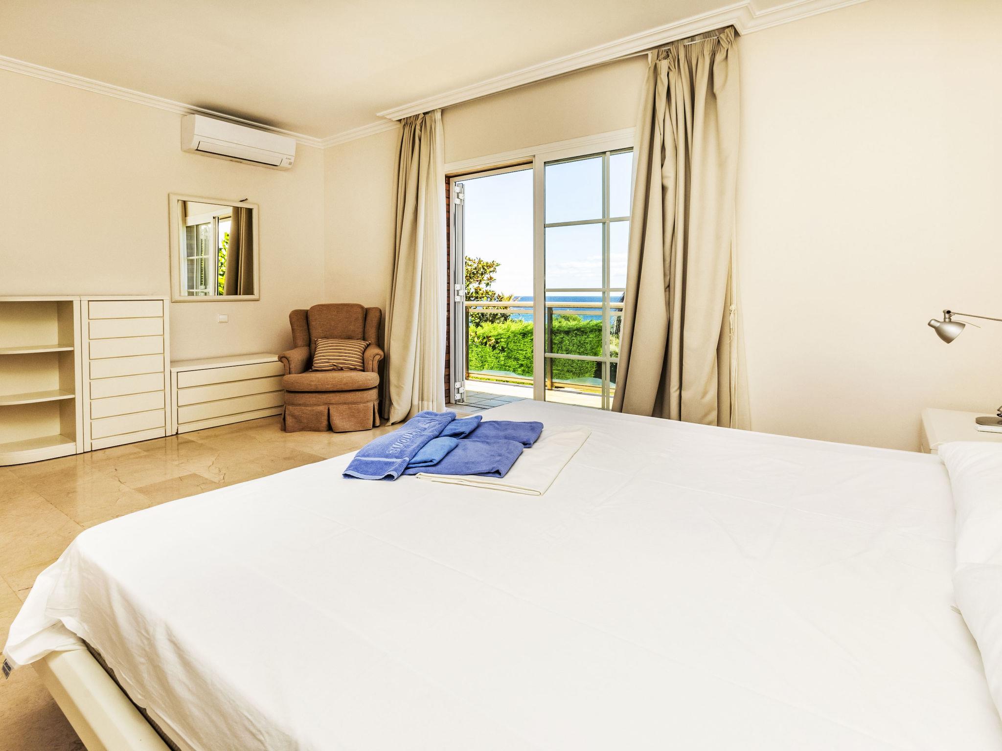 "Villa Luxury B", 7-room villa 400 m2 on 2 levels. Spacious, stylish furnishings: living/dining room with dining table, satellite TV, digital TV, air conditioning and forced-air heating. Exit to the patio. Kitchen (oven, dishwasher, 4 ceramic glass hob hotplates, toaster, kettle, microwave, freezer, electric coffee machine). Sep. WC. Boiler (200 litres). No heating option. Upper floor: 1 room with 1 double bed (180 cm), bath/bidet/WC and air conditioning. Exit to the balcony. 2 rooms, each room with 1 french bed (150 cm), air conditioning. 1 room with 2 beds (90 cm), air conditioning. Bath/WC, shower/WC. Large patio. Terrace furniture, barbecue. Marvellous view of the sea. Facilities: washing machine, dryer, iron, children's high chair, baby cot, hair dryer. Internet (WiFi, free). Garage. HUTTE-000371