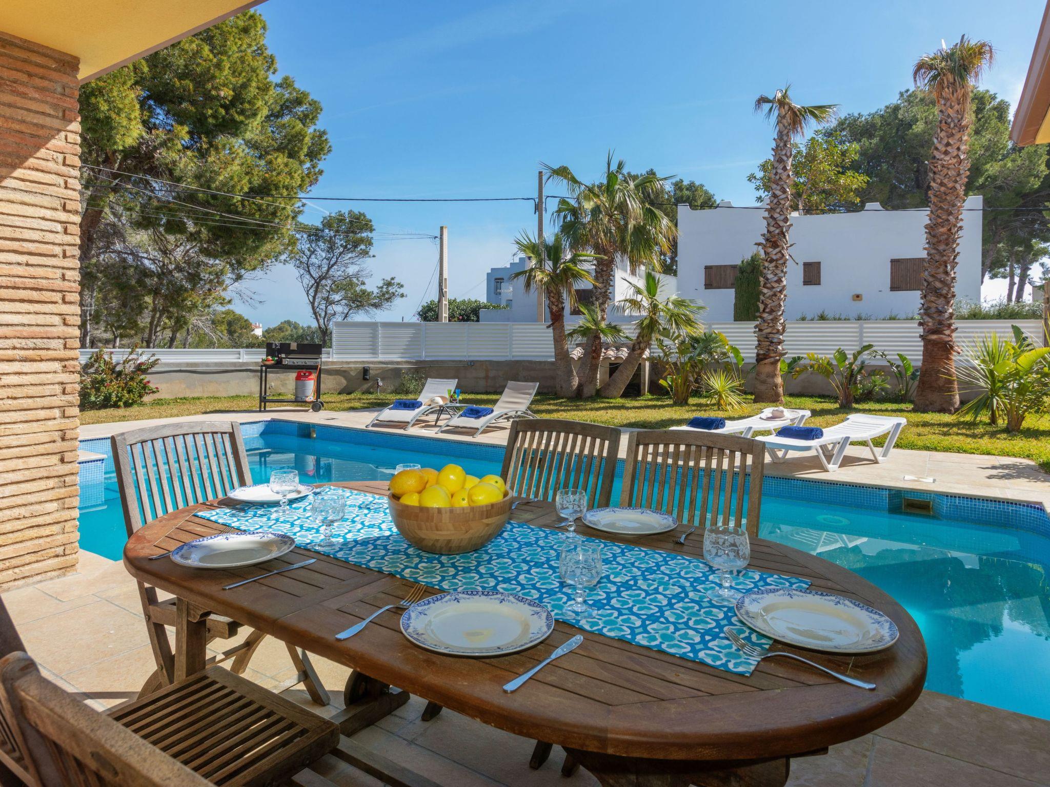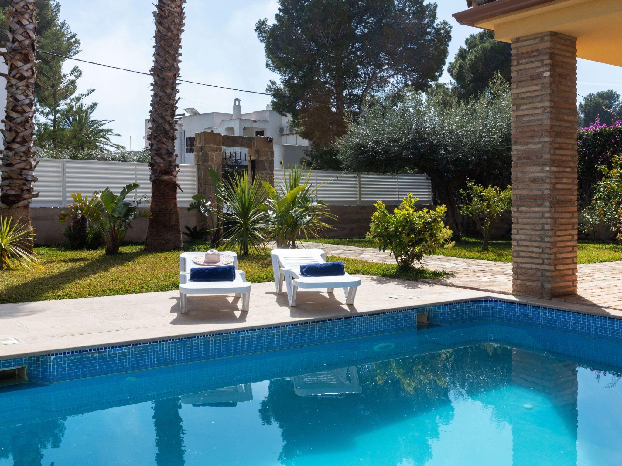 Urb. Las Tres calas 3 km from L'Ametlla de Mar: Cosy, comfortable villa "Marea". Outside the resort, in a quiet, sunny position, 30 m from the sea. Private: beautiful, well-kept garden (fenced) lawn, swimming pool angular (9 x 4 m, depth 80 - 190 cm, seasonal availability: 01.Jan. - 31.Dec.). Outdoor shower, patio, pergola, garden furniture, barbecue, pool maintenance by the owner/gardener. Parking at the house. Supermarket 3 km, restaurant, bar 300 m, bus stop 150 m, railway station "L'Ametlla de Mar" 3 km, shingle beach 100 m, swimming bay 80 m. Nearby attractions: Parque Portaventura 48 km, parque Aquopolis 51 km, parque natura del Delta del Ebro 35 km, Tarragona 57 km, Reus 48 km, Barcelona 153 km. Please note: car recommended. Groups of teenagers on request only.