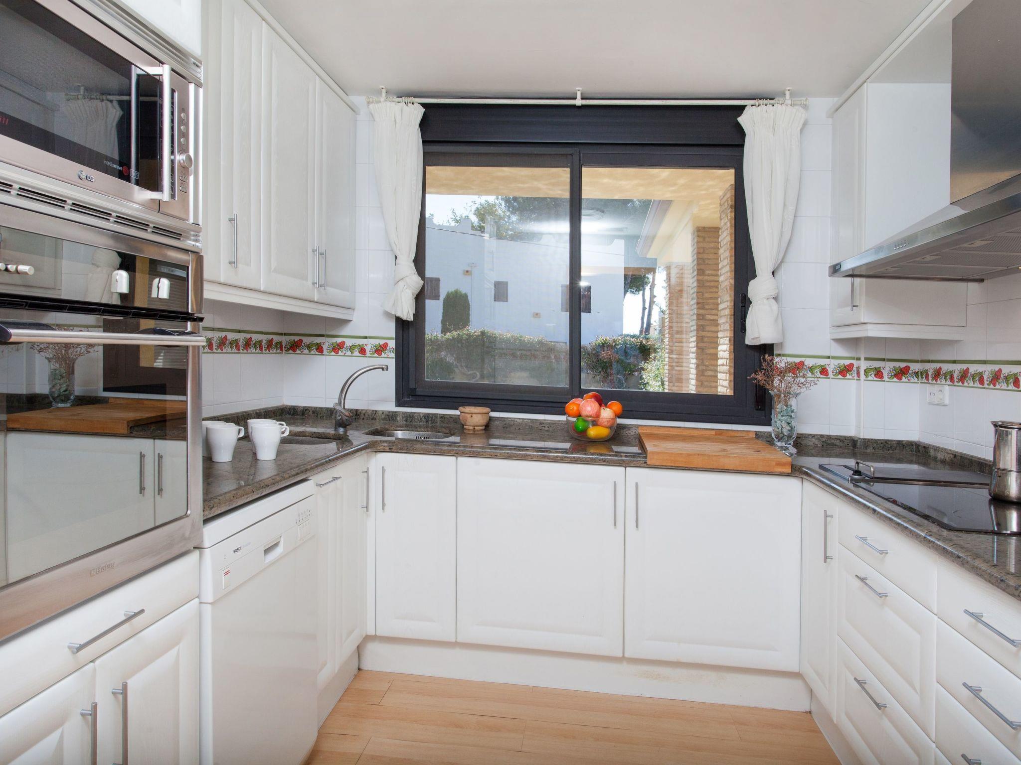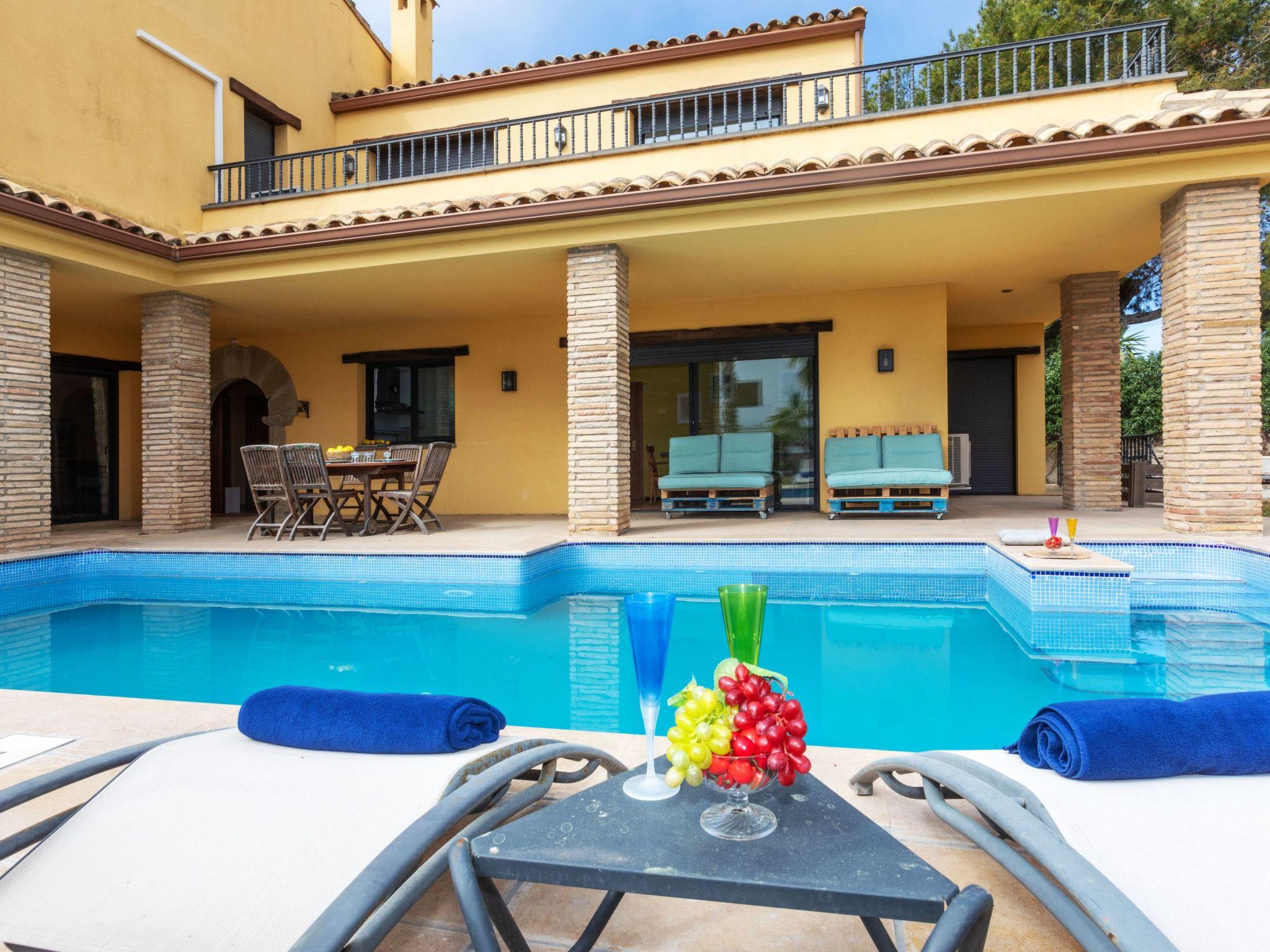 "Villa Marea", 6-room villa 120 m2 on 2 levels. Comfortable and cosy furnishings: living room with digital TV and air conditioning. Dining room with air conditioning. Exit to the garden, to the swimming pool. 1 room with 1 french bed (150 cm), shower/WC and air conditioning. Exit to the terrace. Kitchen (oven, dishwasher, 3 ceramic glass hob hotplates, toaster, kettle, microwave, electric coffee machine). Shower/WC, sep. WC. No heating option. Upper floor: 1 room with 1 french bed (180 cm), shower/WC and air conditioning. Exit to the terrace. 1 room with 1 french bed (160 cm), shower/WC and air conditioning. Exit to the terrace. 1 room with 1 french bed (160 cm), shower/WC and air conditioning. Exit to the terrace. Patio. Terrace furniture, barbecue, covered balcony. Facilities: washing machine, iron, children's high chair, baby cot, hair dryer. Internet (WiFi, free). Parking at the house. Please note: non-smoking house. HUTTE-001320 // Reg. Nr.: ESFCTU0000430200006567500000000000000000HUTTE-0013209