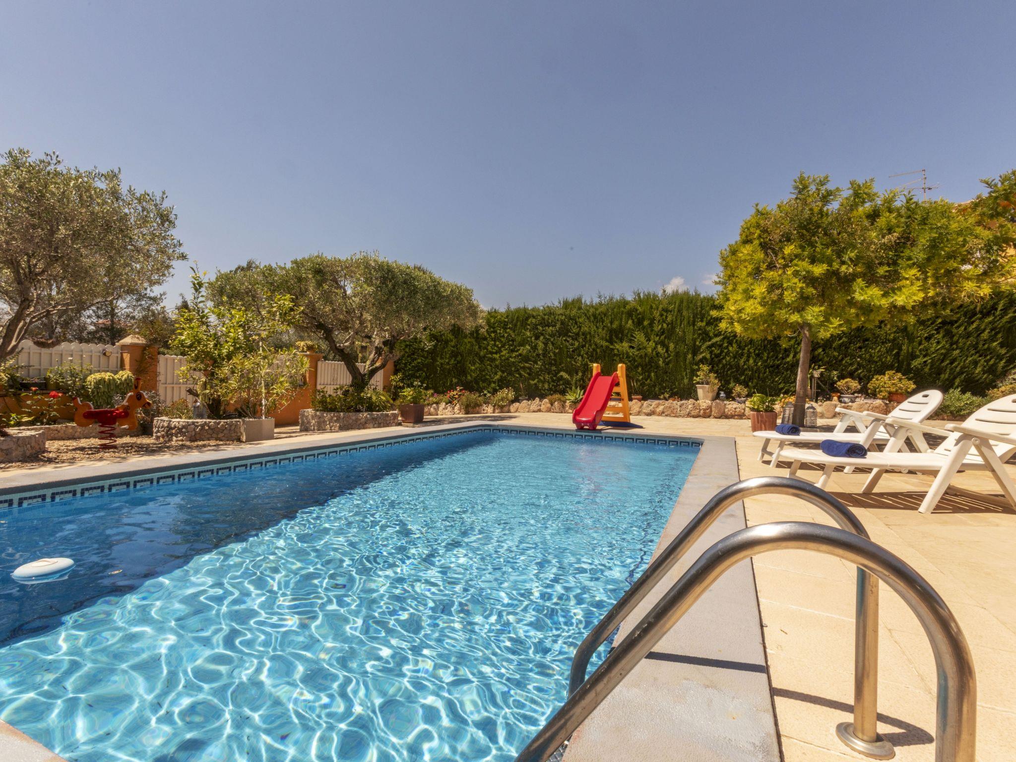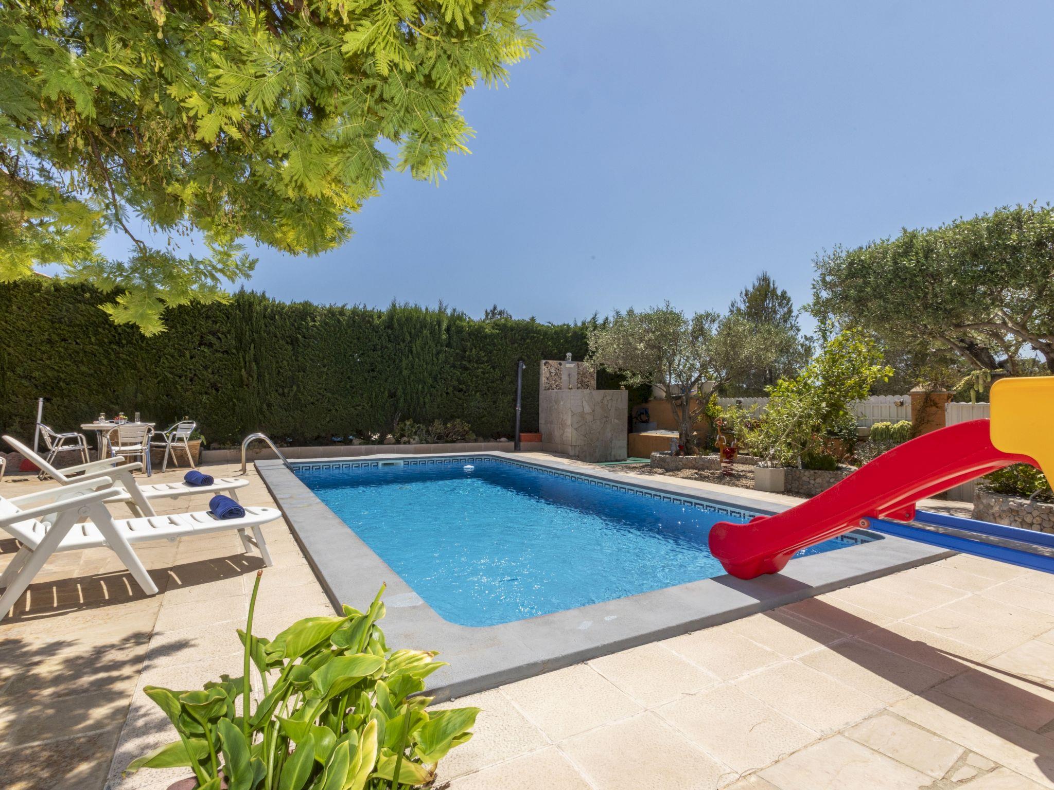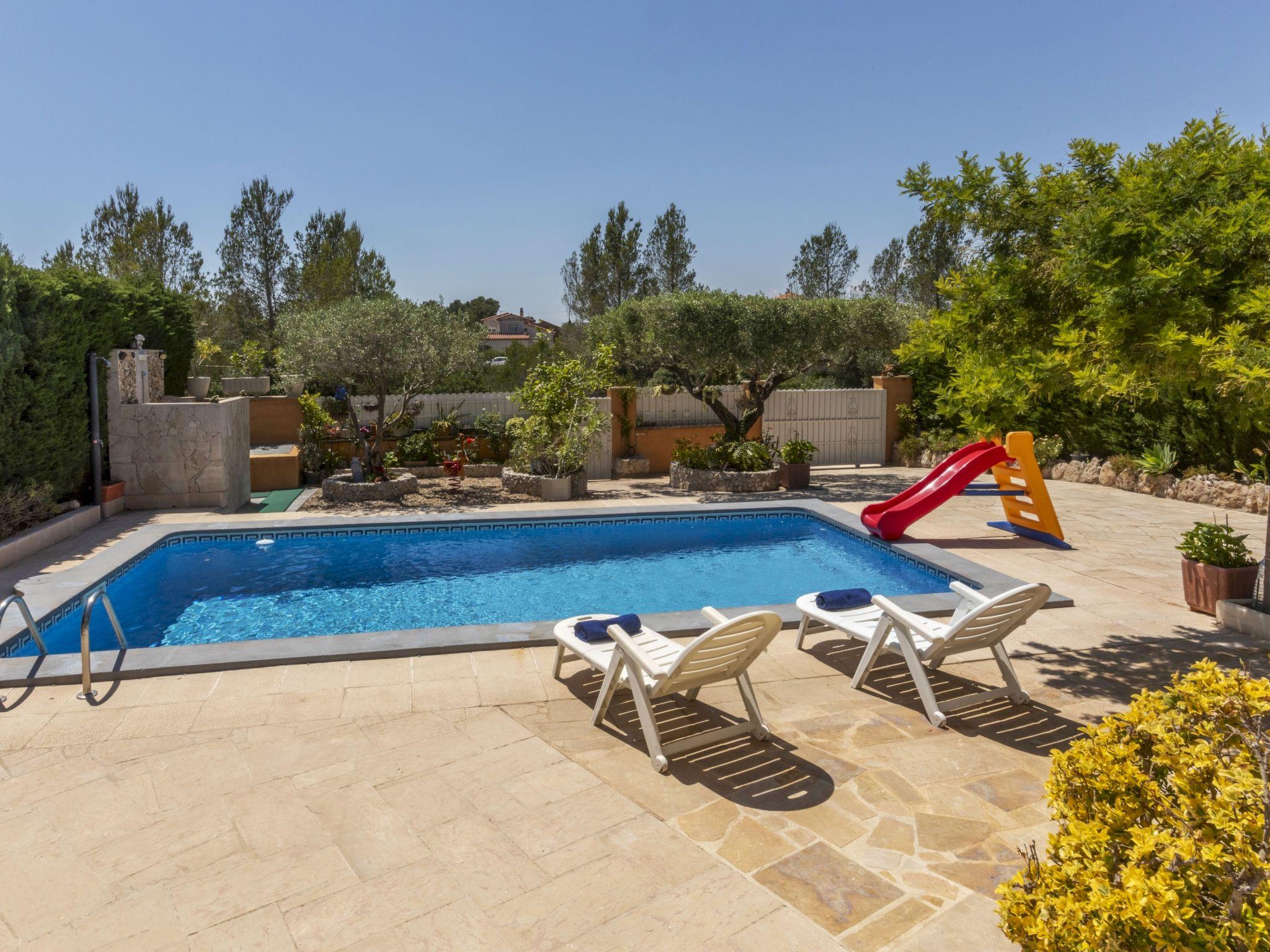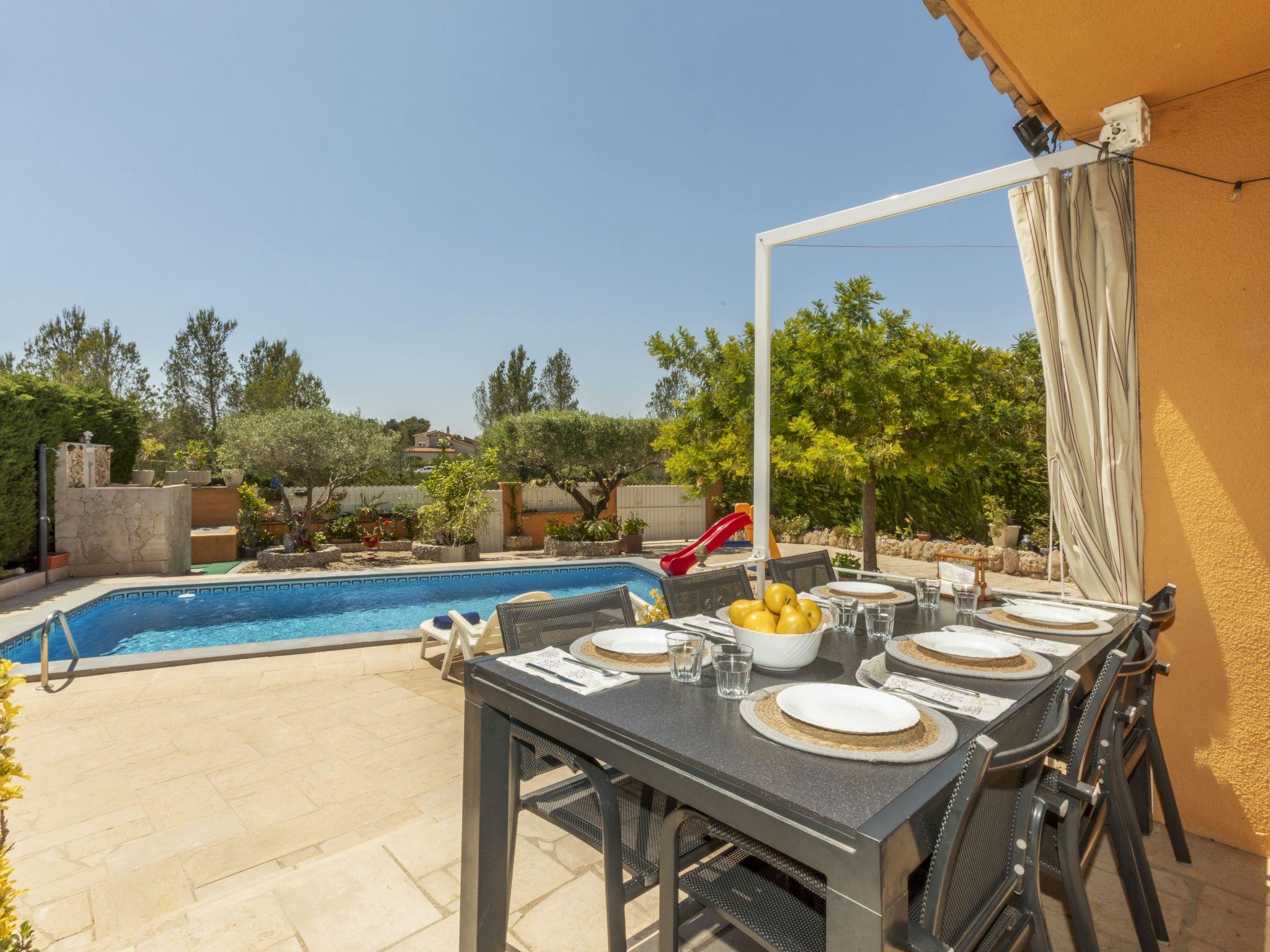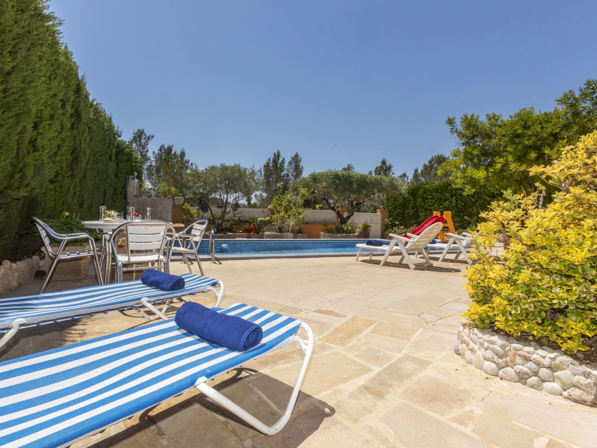 Las 3 Cales 3 km from l'Ametlla de Mar: Cosy, comfortable villa "Sueño I". 2 km from the sea, 2 km from the beach. Private: large, beautiful, well-kept garden (fenced) wildlife garden, swimming pool angular (8 x 4 m, depth 80 - 190 cm, seasonal availability: 01.May. - 31.Oct.). Outdoor shower, patio, pergola, garden furniture, barbecue, pool maintenance by the owner/gardener. Parking at the house. Shop 1 km, grocery 1 km, restaurant 1 km, bus stop 600 m, railway station "Ametlla de Mar" 3 km, sandy beach 2 km pebble beach 3 km, swimming bay 2 km, public bathing area 3 km. Sports harbour 3 km. Nearby attractions: Parque Portaventura 48 km, parque Aquopolis 51 km, parque natura del Delta del Ebro 35 km, Tarragona 57 km, Reus 48 km, Barcelona 153 km. Please note: car recommended. Groups of teenagers on request only.
