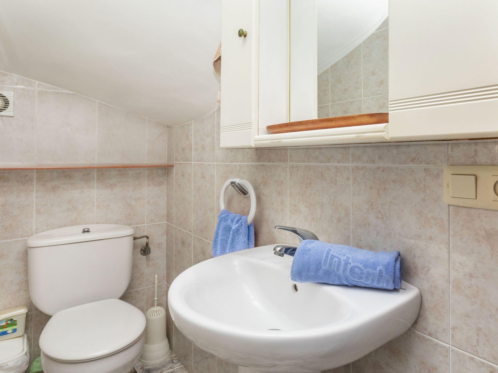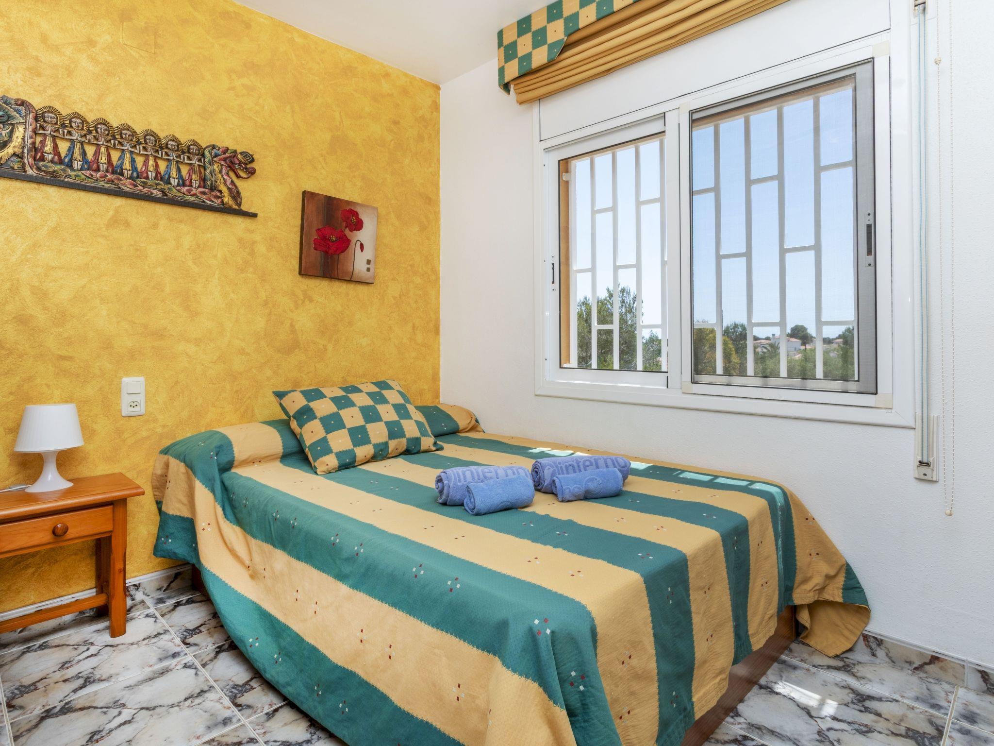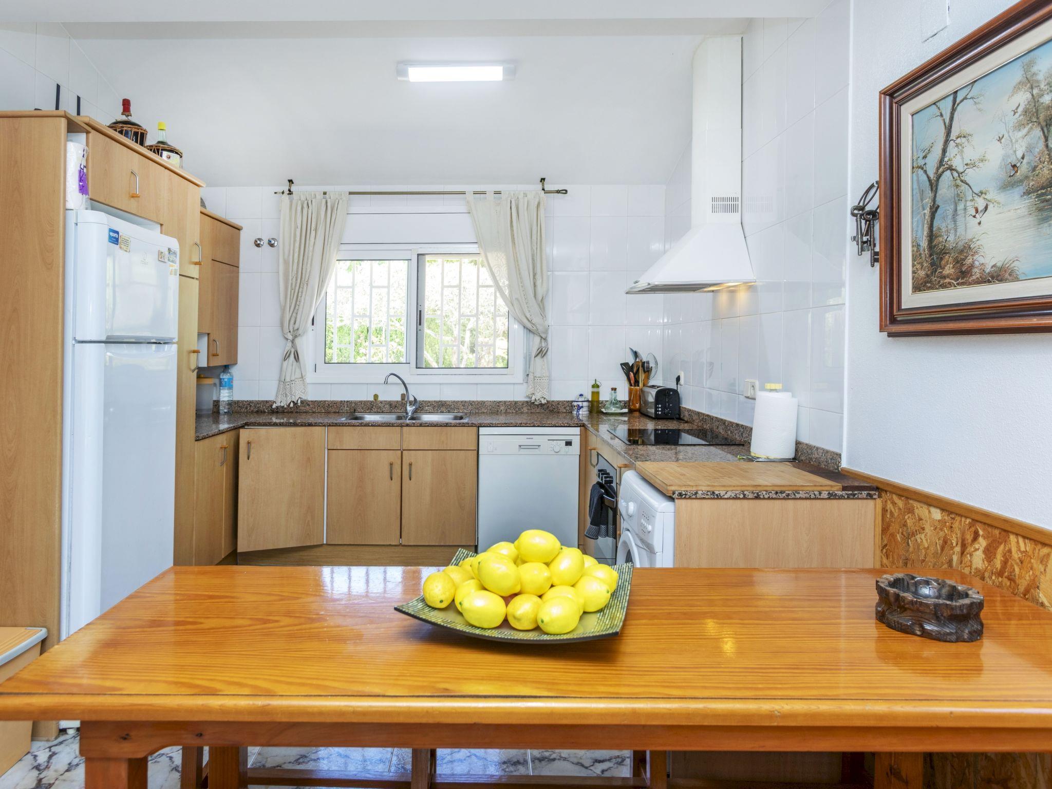"Sueño I", 4-room villa 120 m2 on 2 levels. Comfortable and cosy furnishings: living/dining room with dining table, satellite TV and digital TV. 1 room with 1 french bed (135 cm), fan. Open kitchen (oven, dishwasher, 4 ceramic glass hob hotplates, toaster, kettle, microwave, electric coffee machine). Sep. WC. No heating option. Upper floor: 1 room with 1 french bed (135 cm), fan. 1 room with 1 x 2 bunk beds (90 cm), 1 french bed (135 cm), fan. Bath/bidet/WC. Patio. Terrace furniture, barbecue. Facilities: washing machine, iron, hair dryer. Internet (WiFi, free). Parking at the house. HUTTE-000693 // Reg. Nr.: ESFCNT00004302000008956500000000000000000000000000001