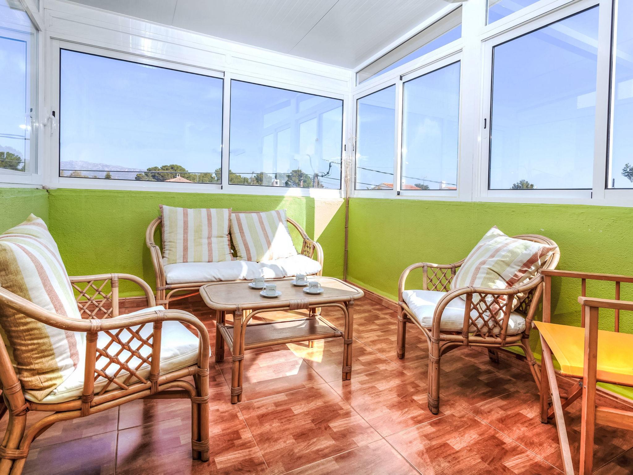 "Villa Palmera II", 4-room villa 105 m2 on 2 levels. Practical and cosy furnishings: living/dining room with dining table and digital TV. 1 room with 1 french bed (135 cm). Kitchen (oven, 4 ceramic glass hob hotplates, toaster, microwave, electric coffee machine). Shower/WC. Air-conditioning. No heating option. Upper floor: 1 room with 1 french bed (135 cm). 1 room with 2 beds (90 cm). Shower/bidet/WC. Patio. Terrace furniture, barbecue. Facilities: washing machine, iron, hair dryer. Internet (WiFi, free). HUTTE-000679 // Reg. Nr.: ESFCTU0000430200000766330000000000000000HUTTE-0006795