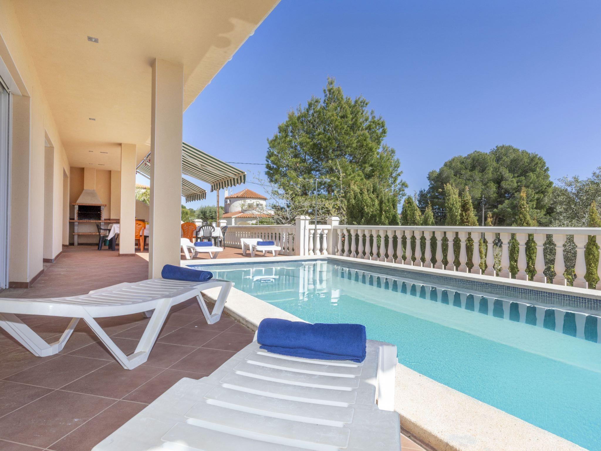 Urb. Tres Cales 4 km from L'Ametlla de Mar: Cosy, comfortable villa "Sirena III", 2 storeys. Outside the resort, 4.8 km from the centre of L'Ametlla de Mar, in a quiet, sunny position, 1.1 km from the sea, 1.1 km from the beach. Private: property 600 m2, swimming pool (7 x 3 m, depth 80 - 190 cm, seasonal availability: 01.Apr. - 31.Oct.). Outdoor shower, boules, patio, pergola, garden furniture, barbecue, pool maintenance by the owner/gardener. Parking at the house. Grocery, supermarket, restaurant, bar 700 m, bus stop 2 km, railway station 4.8 km, sandy beach 1.1 km. Nearby attractions: Parque Portaventura 48 km, parque Aquopolis 51 km, parque natura del Delta del Ebro 35 km, Tarragona 57 km, Reus 48 km, Barcelona 153 km. Please note: car recommended. Groups of teenagers on request only.