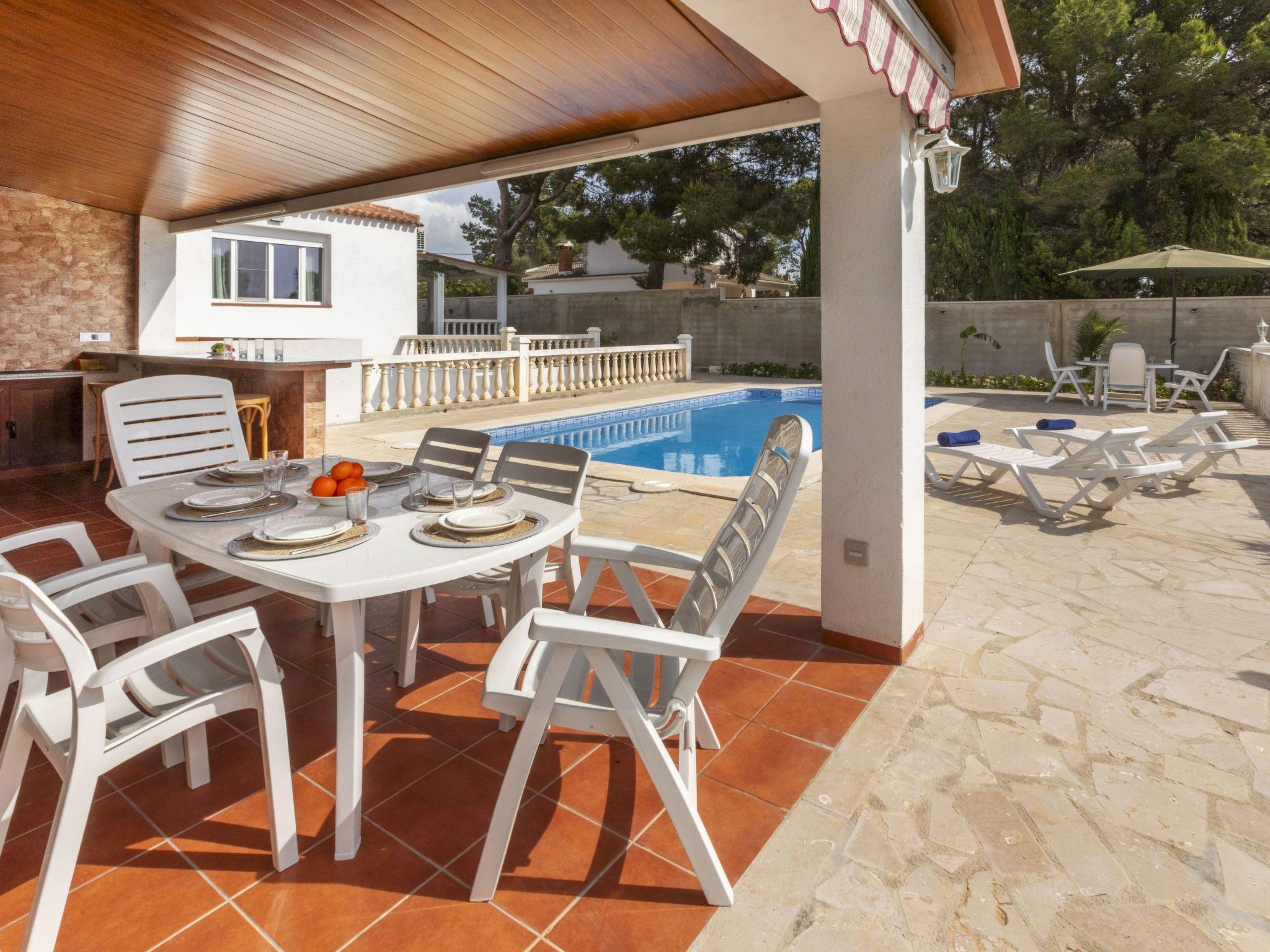 Las 3 Cales 3 km from l'Ametlla de Mar: Cosy, comfortable villa "Encanto IV". 2 km from the sea, 2 km from the beach. Private: property (fenced), swimming pool (8 x 4 m, depth 80 - 190 cm, seasonal availability: 01.Jan. - 31.Dec.). WC in the pool area, outdoor shower, patio, garden furniture, barbecue, pool maintenance by the owner/gardener. Parking at the house. Shop 1 km, grocery 1 km, restaurant 1 km, bus stop 3 km, railway station "Ametlla de Mar" 3 km, sandy beach 2 km pebble beach 3 km, swimming bay 2 km, public bathing area 3 km. Sports harbour 3 km. Nearby attractions: Parque Portaventura 48 km, parque Aquopolis 51 km, parque natura del Delta del Ebro 35 km, Tarragona 57 km, Reus 48 km, Barcelona 153 km. Please note: car recommended. Groups of teenagers on request only. Motorway close by.