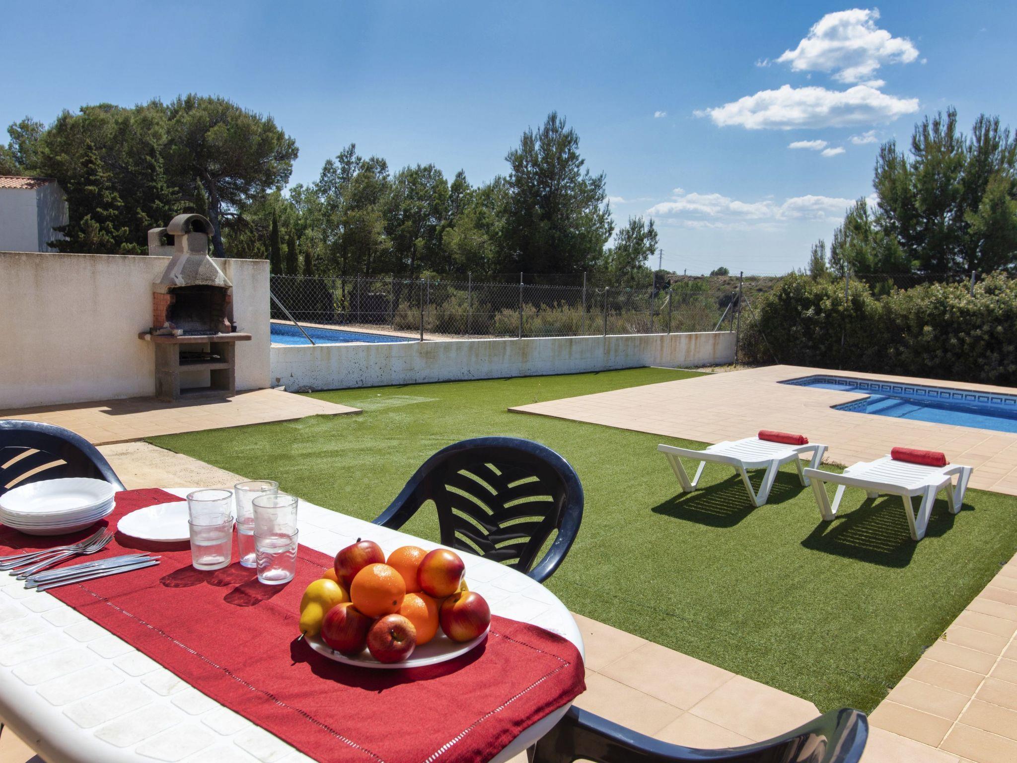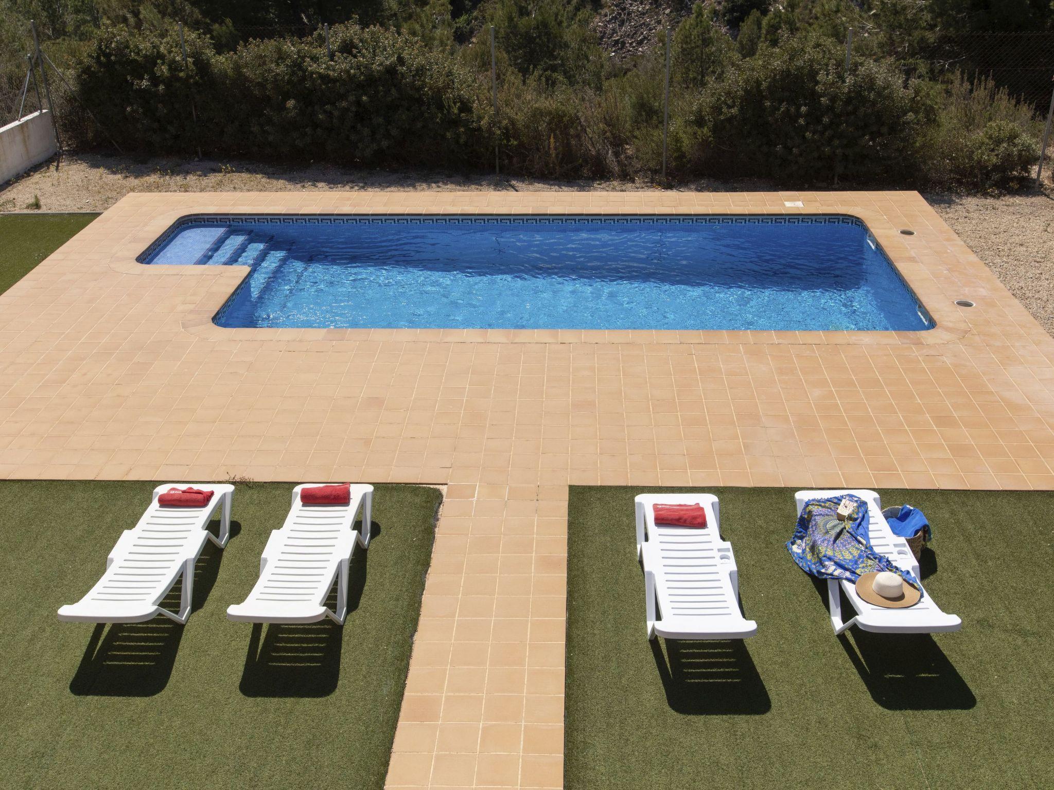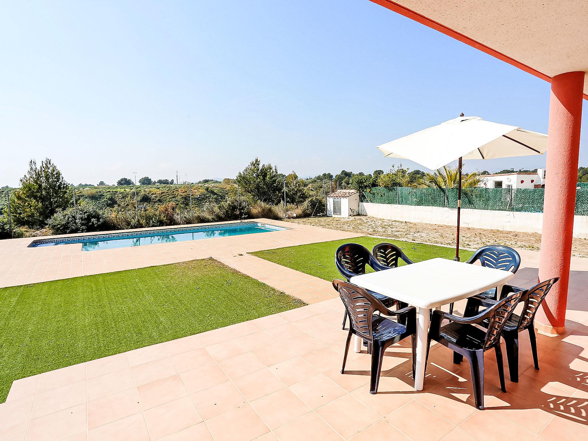 Urb. Tres Cales 4 km from L'Ametlla de Mar: Cosy, comfortable villa "Malva II", 2 storeys. Outside the resort, 4.8 km from the centre of L'Ametlla de Mar, in a quiet, sunny position, 1.1 km from the sea, 1.1 km from the beach. Private: natural state property (fenced), swimming pool (8 x 4 m, depth 80 - 190 cm, seasonal availability: 01.Apr. - 31.Oct.). Terrace, garden furniture, pool maintenance by the owner/gardener. Parking at the house. Grocery, supermarket, restaurant, bar 700 m, bus stop 800 m, railway station 4.8 km, sandy beach 1.1 km. Nearby attractions: Parque Portaventura 48 km, parque Aquopolis 51 km, parque natura del Delta del Ebro 35 km, Tarragona 57 km, Reus 48 km, Barcelona 153 km. Please note: car recommended. Groups of teenagers on request only.