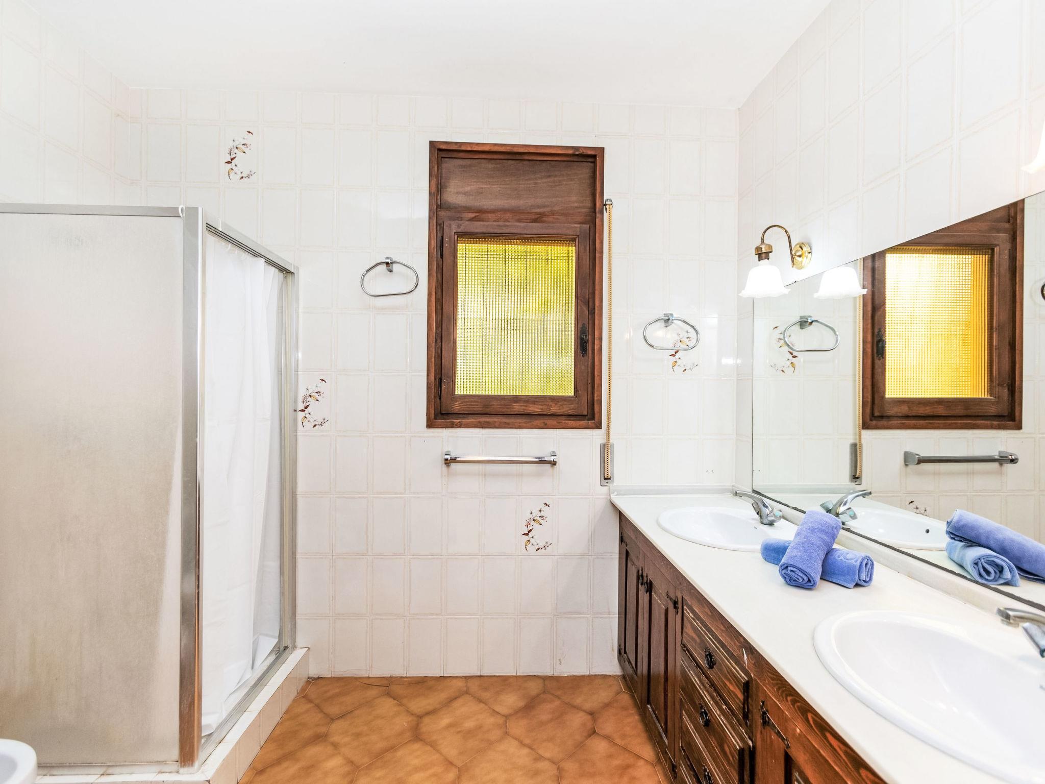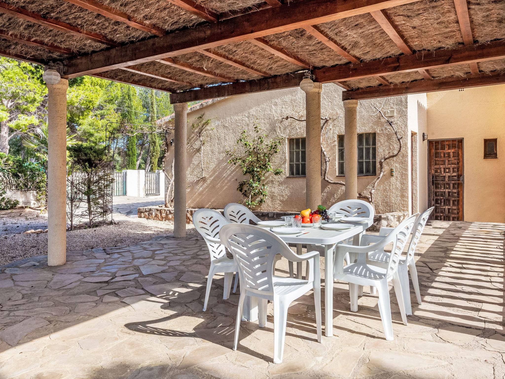 "Villa Africa", 5-room villa 150 m2. Comfortable and cosy furnishings: living/dining room with 2 double sofabeds (120 cm), dining table, satellite TV and digital TV. 1 room with 1 french bed (135 cm), digital TV and fan. 1 room with 3 beds (90 cm). 1 room with 1 bed (90 cm). 1 room with 2 beds (90 cm). Kitchen (oven, dishwasher, 4 ceramic glass hob hotplates, toaster, kettle, electric coffee machine). Shower/WC, sep. WC, double hand-basin. No heating option. Terrace. Terrace furniture, barbecue, covered balcony. Facilities: washing machine, iron, children's high chair, baby cot, hair dryer. Internet (WiFi, free). Parking at the house. Maximum 1 pet/ dog allowed. HUTTE-001232 // Reg. Nr.: ESFCTU0000430200000779370000000000000000HUTTE-0012329