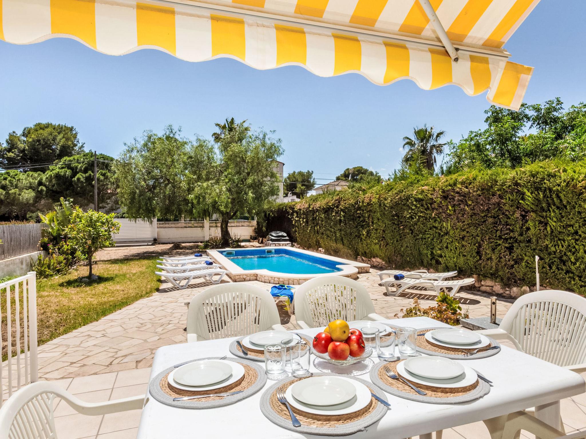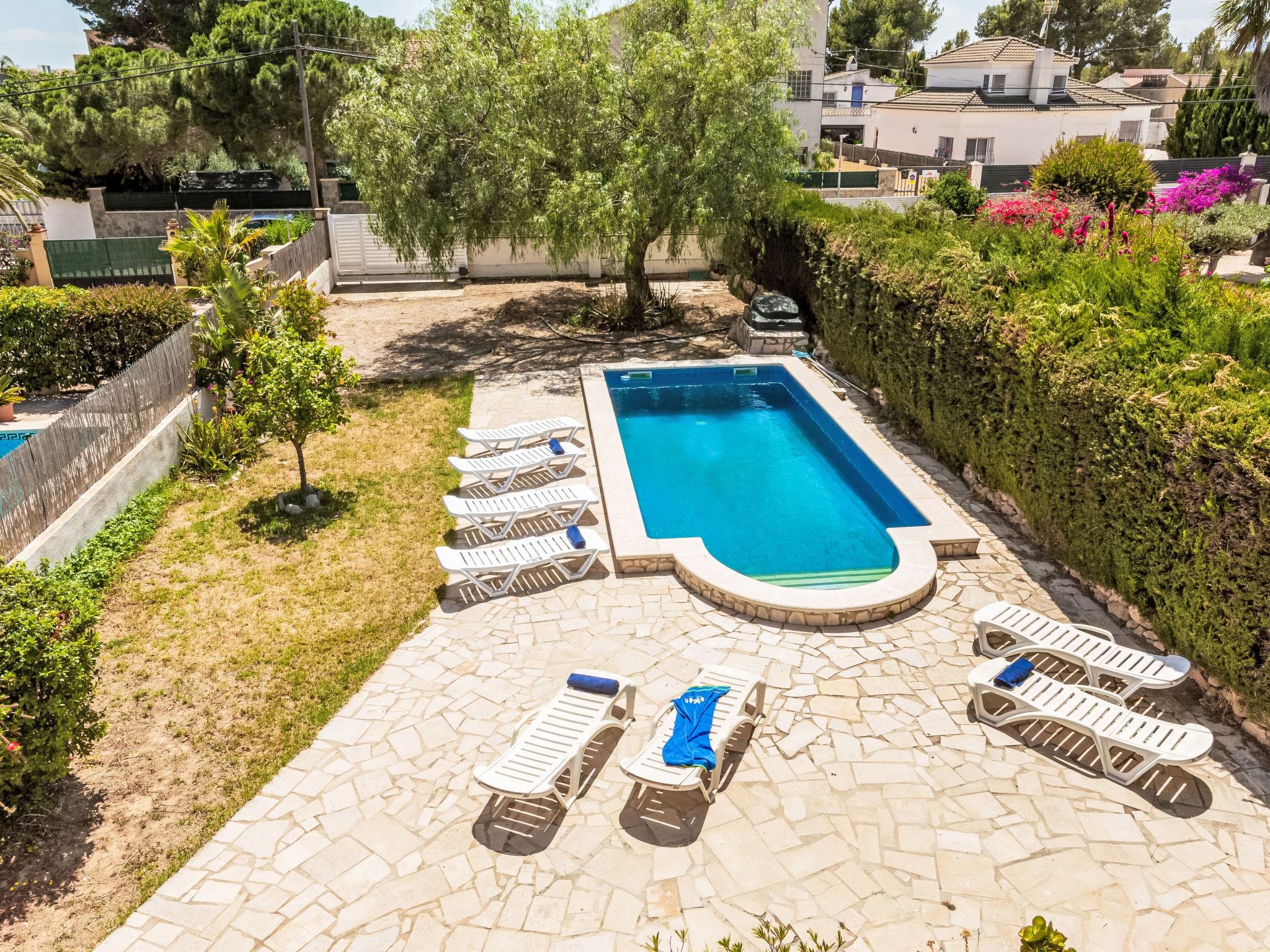 Urb. Tres Cales 4 km from L'Ametlla de Mar: Villa "Pesquer", 2 storeys. Outside the resort, 4.8 km from the centre of L'Ametlla de Mar, in a quiet, sunny position, 1.1 km from the sea, 1.1 km from the beach. Private: property 500 m2 (fenced), swimming pool (8 x 4 m, depth 80 - 190 cm, seasonal availability: 01.Apr. - 31.Oct.). Terrace, garden furniture, barbecue, parking at the house. Grocery, supermarket, restaurant, bar 700 m, bus stop 800 m, railway station 4.8 km, sandy beach 1.1 km. Nearby attractions: Parque Portaventura 48 km, parque Aquopolis 51 km, parque natura del Delta del Ebro 35 km, Tarragona 57 km, Reus 48 km, Barcelona 153 km. Please note: car recommended. Groups of teenagers on request only.
