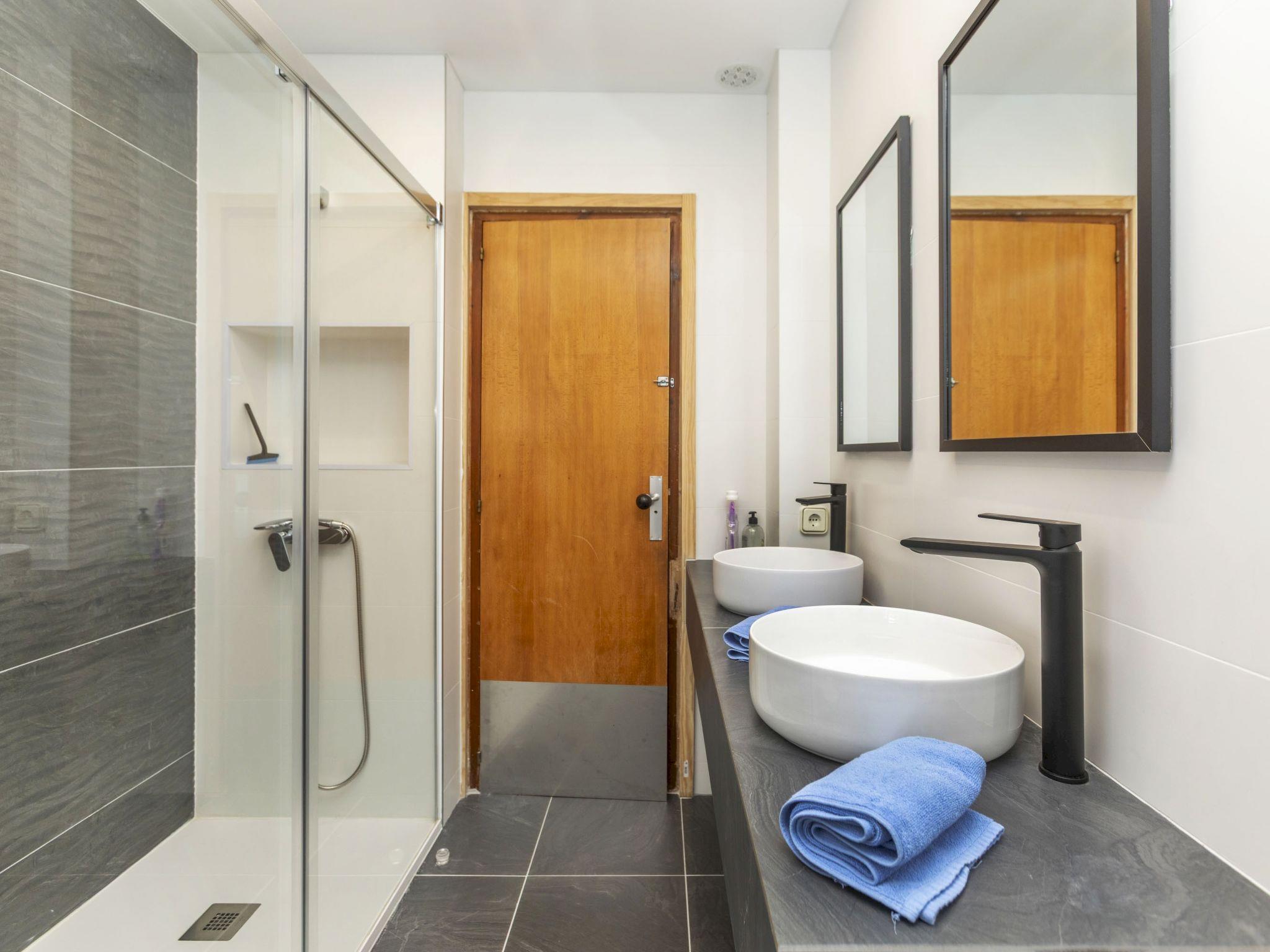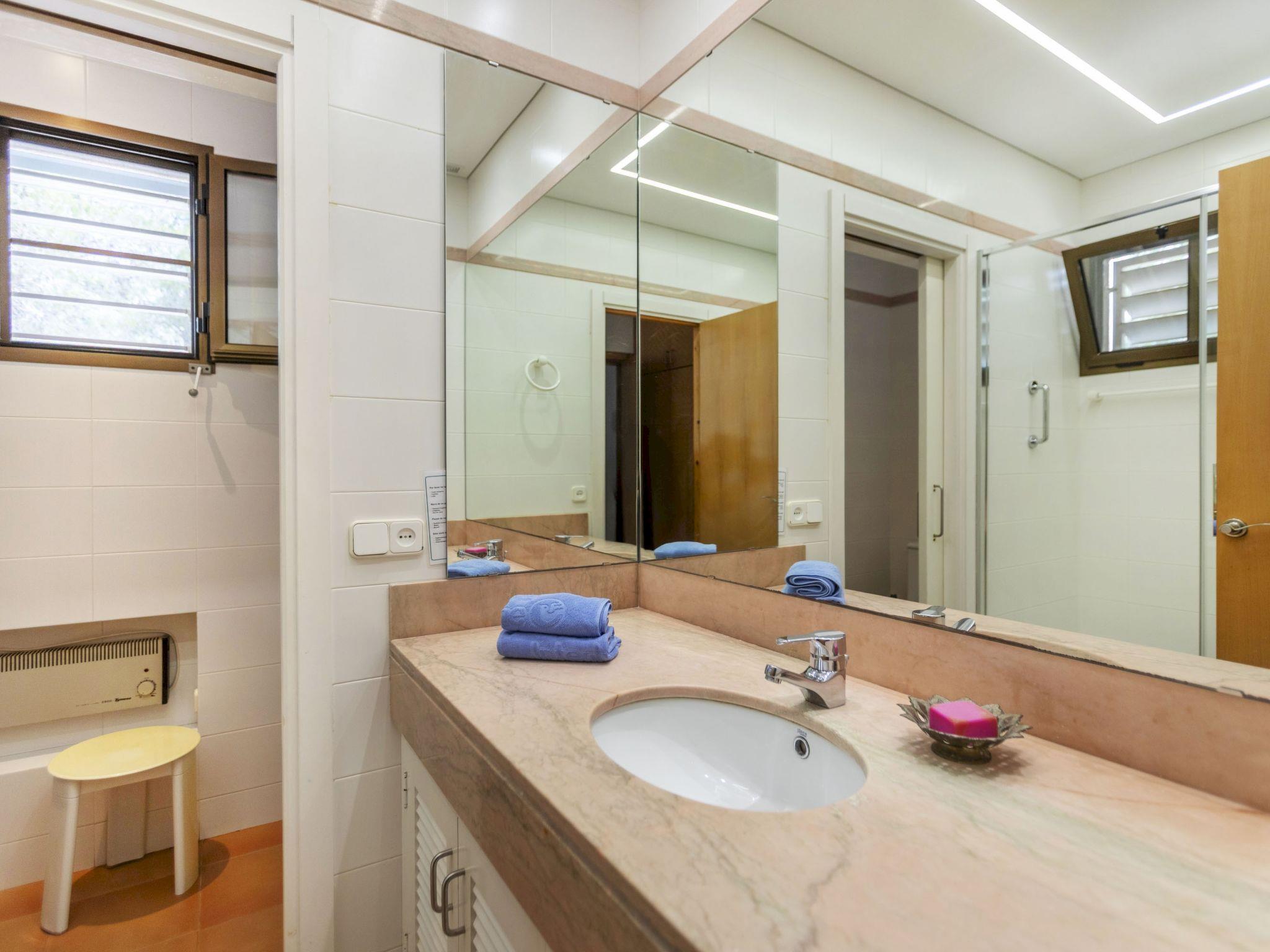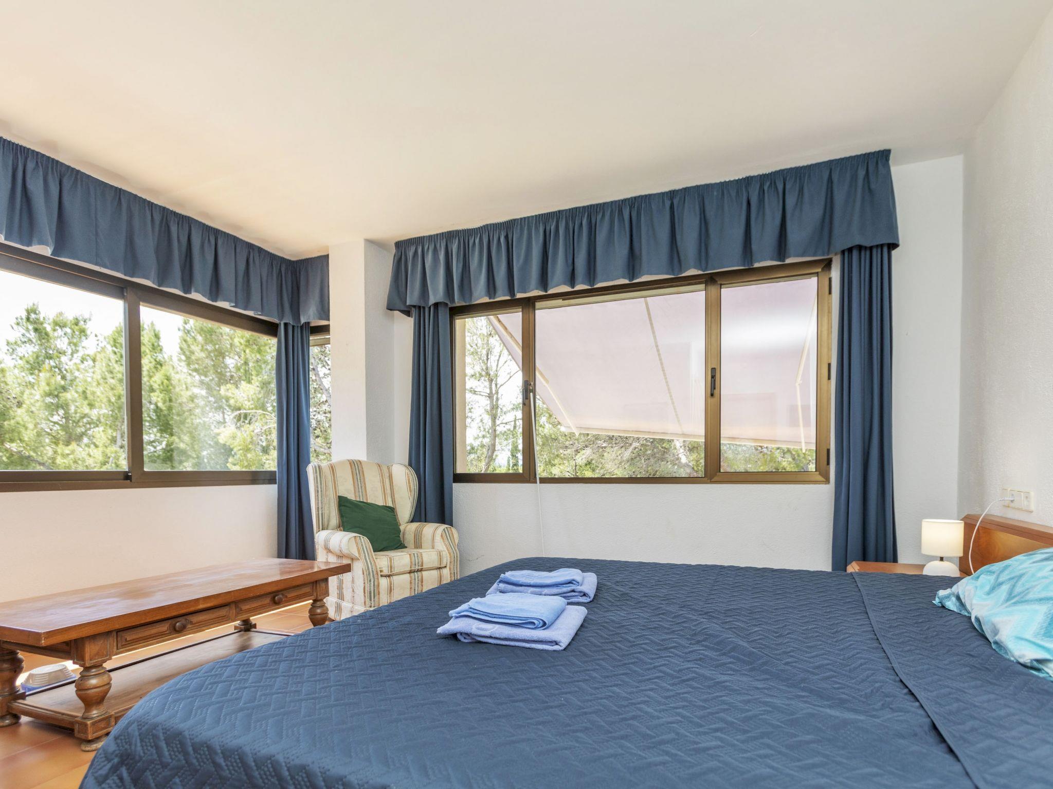 "Casa Marina", 5-room villa 300 m2 on 2 levels. Comfortable and cosy furnishings: living/dining room with digital TV and hi-fi system. 1 room with 1 french bed (150 cm, length 190 cm), bath/shower. 1 room with 2 beds (90 cm, length 190 cm). 1 room with 2 beds (90 cm, length 190 cm). Kitchen (4 hot plates, oven, dishwasher, toaster, kettle, microwave, electric coffee machine). Exit to the garden. Shower/WC. No heating option. Upper floor: 1 room with Dressing room with 1 french bed (180 cm, length 200 cm), shower/bidet/WC. Large garden. Terrace furniture, deck chairs. Panoramic view. Facilities: washing machine, iron, hair dryer. Internet (WiFi, free). Parking at the house. Please note: suitable for families. Non-smokers only. HUTTE-059847 // Reg. Nr.: ESFCTU00004302000004141900000000000000000000000000008