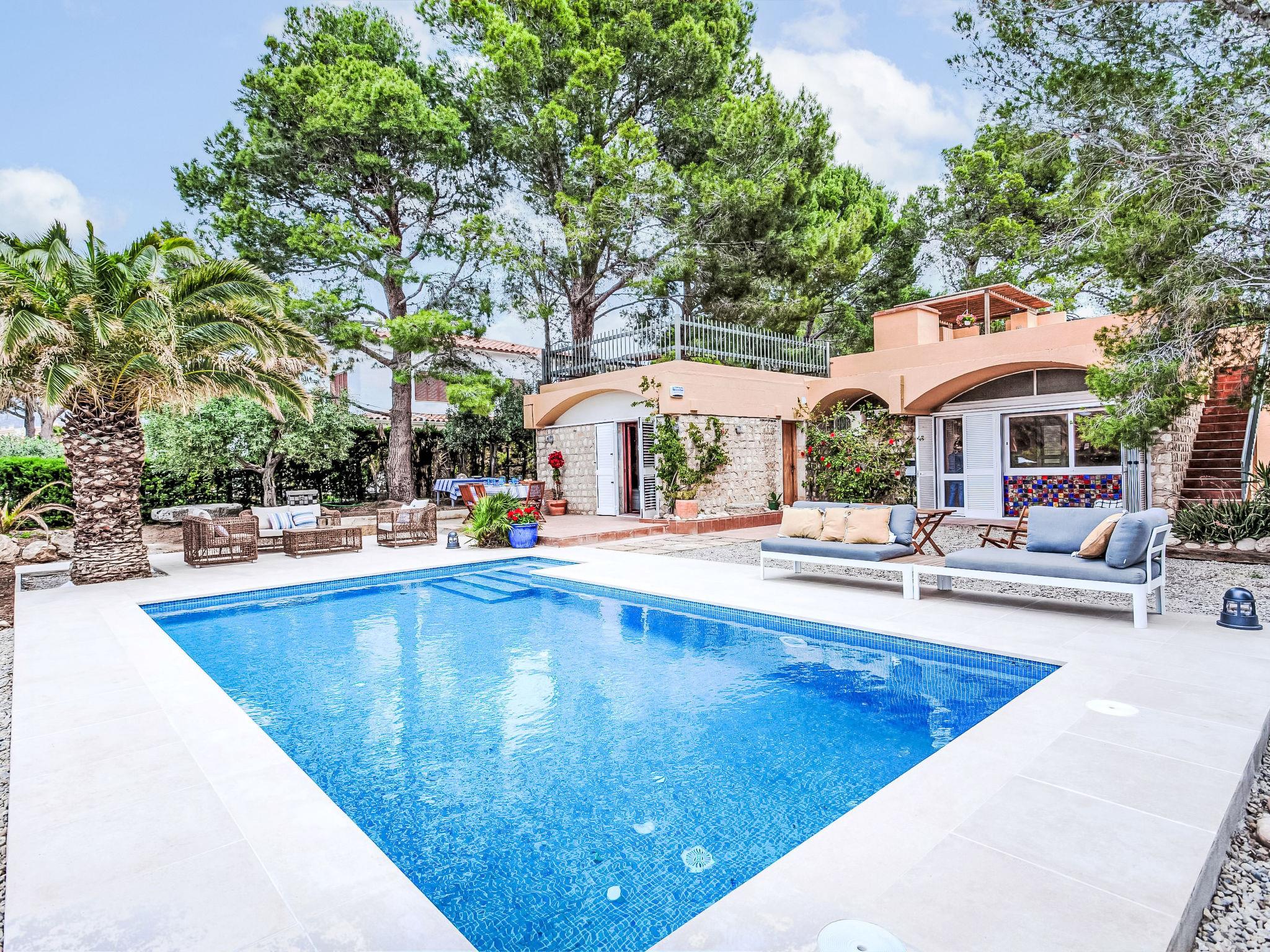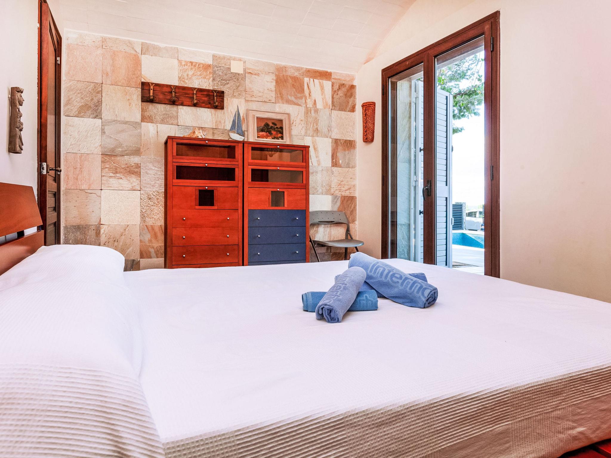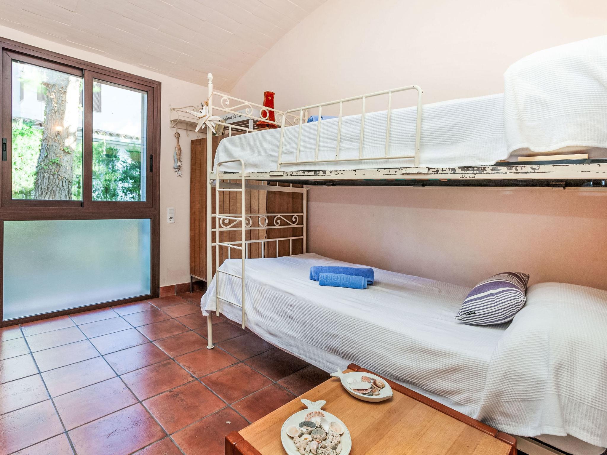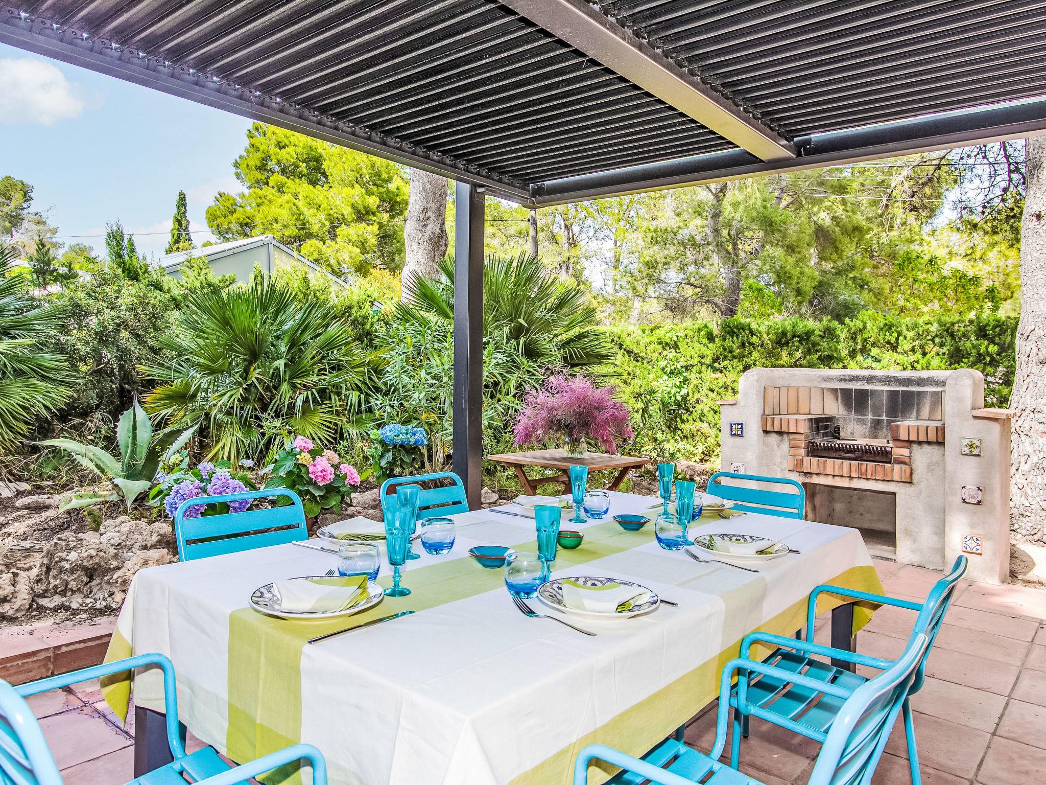 "Villa Platja Calafato", 4-room villa 180 m2. Very comfortable and tasteful furnishings: living/dining room with digital TV and air conditioning. Exit to the terrace. 1 room with 1 french bed (135 cm). 1 room with 1 x 2 bunk beds (90 cm). 1 room with 2 beds (90 cm). Entrance hall with air conditioning. Kitchen (2 hot plates, oven, dishwasher, 2 ceramic glass hob hotplates, toaster, kettle, microwave, electric coffee machine). 2 showers/WC. Boiler (100 litres). No heating option. Patio. Terrace furniture, barbecue, covered balcony, sitting area. Facilities: washing machine, iron, children's high chair, baby cot, hair dryer. Internet (WiFi, free). Parking at the house. Maximum 2 pets/ dogs allowed. HUTTE-001173 // Reg. Nr.: ESFCTU0000430200003983220000000000000000HUTTE-0011739