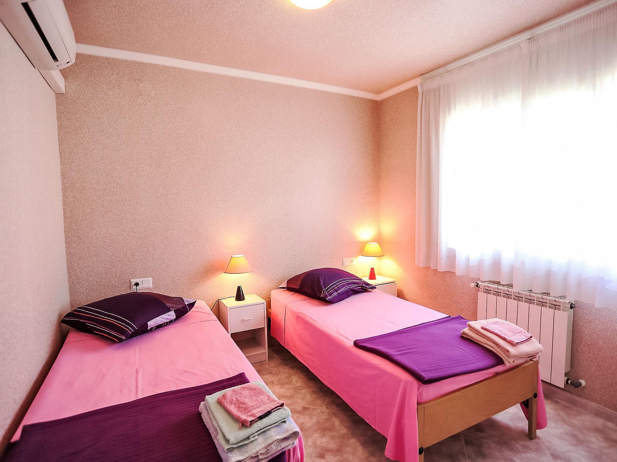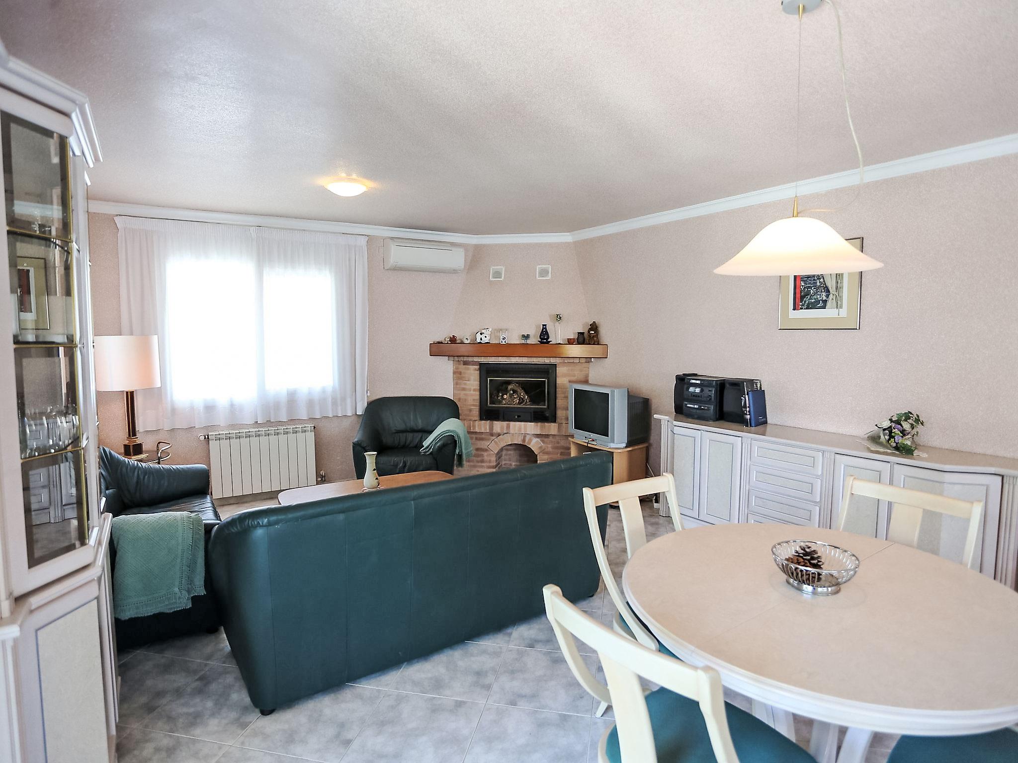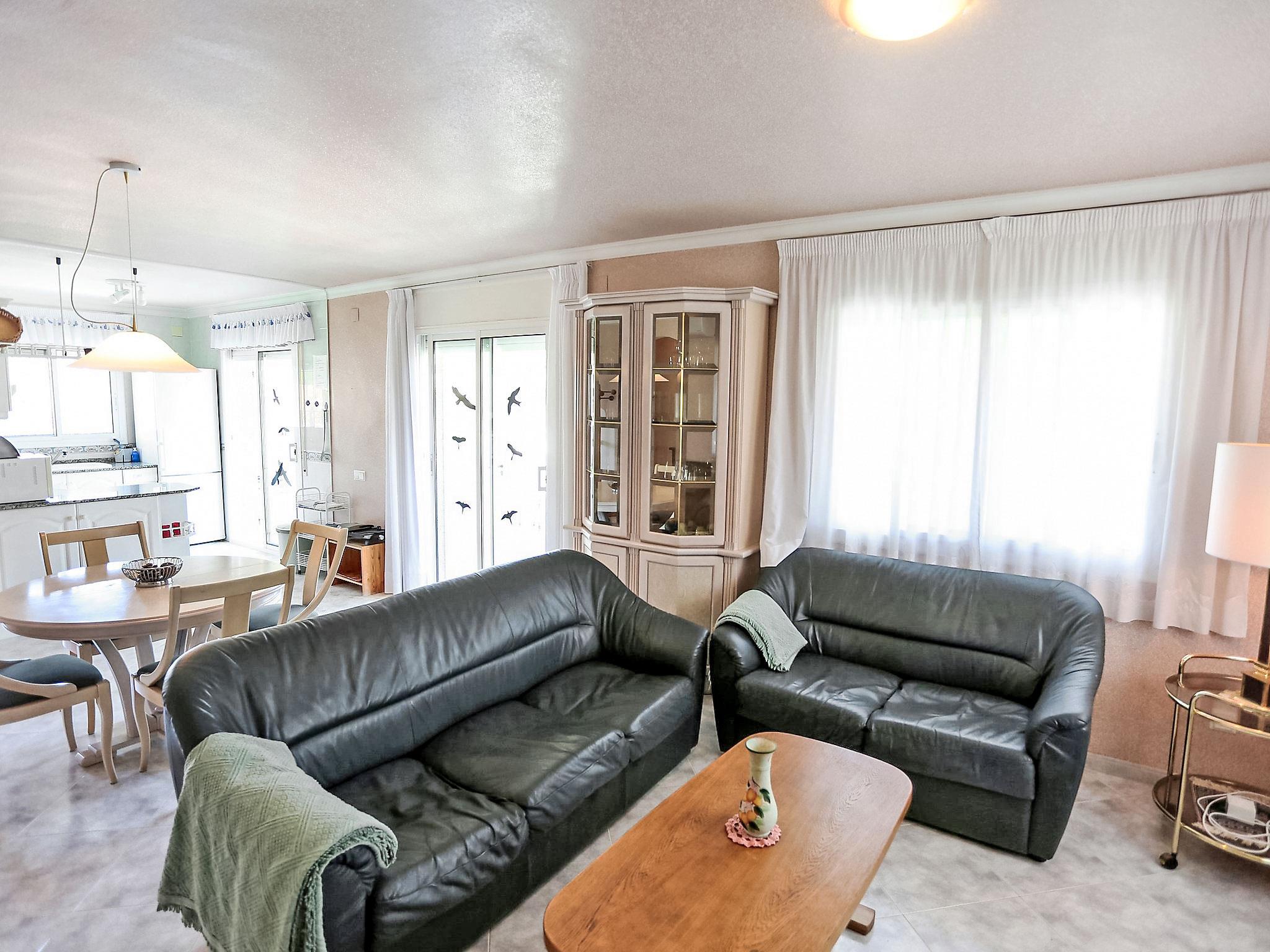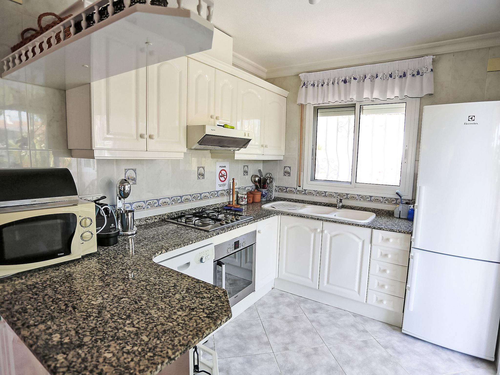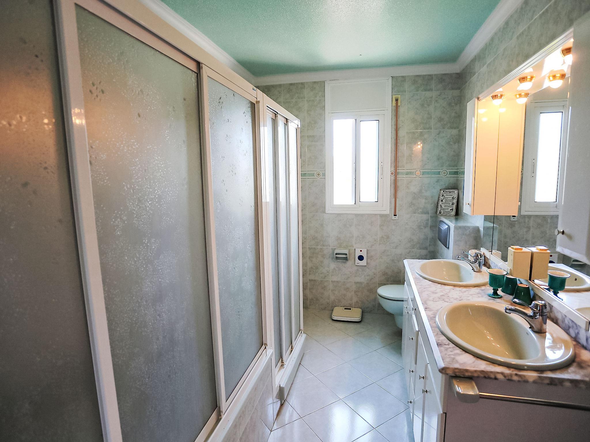 "Escorpion", 5-room villa 120 m2, on the upper floor. Comfortable and beautiful furnishings: living/dining room 30 m2 with dining table, satellite TV, hi-fi system and DVD. Exit to the terrace. 1 room with 1 french bed (1 x 150 cm), bath/WC and shower. Exit to the terrace. 2 rooms, each room with 2 beds (90 cm). Open kitchen (4 hot plates, oven, dishwasher, microwave, freezer, grill). Exit to the terrace. Shower/WC. Heating, air-conditioning. Terrace 16 m2, large terrace. Terrace furniture, barbecue, deck chairs (6). Beautiful view of the swimming pool, the garden and the countryside. Facilities: safe, iron, hair dryer. Internet (WiFi). Garage. Security grills on all the windows. Only the 1st floor is rented. HUTTE000275 // Reg. Nr.: ESFCTU00004302000019177000000000000000000HUTTE0002756