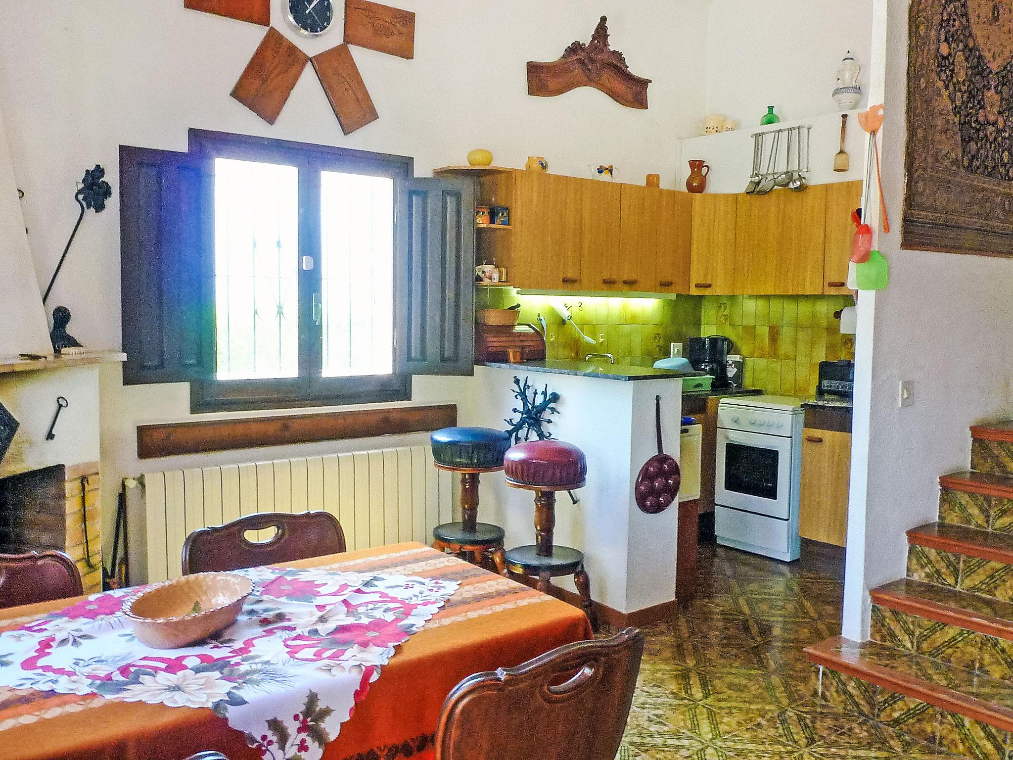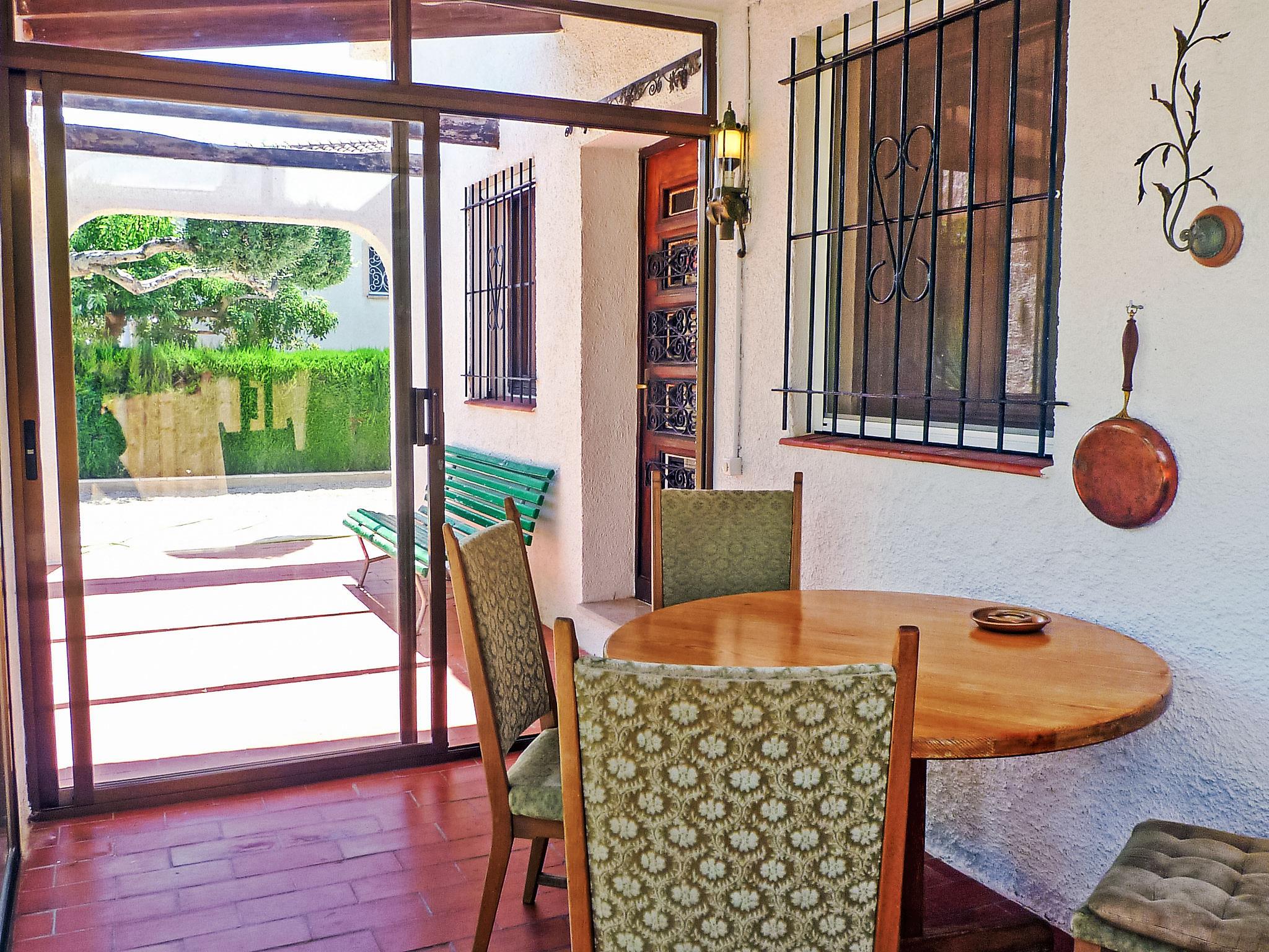 4-room house 60 m2. Practical and comfortable furnishings: living/dining room with winter garden with open-hearth fireplace and dining table. Exit to the patio. 1 room with 2 beds (90 cm). 1 room with 1 bed (90 cm). Open kitchen (4 hot plates, oven, electric coffee machine) with bar. Shower/WC. Heating, air-conditioning, forced-air heating. Upper floor: lounge with 1 pull-out bed (2 pers. 2 x 90 cm), satellite TV. Exit to the terrace. Terrace 20 m2, terrace 5 m2. Terrace furniture, barbecue (portable). Facilities: washing machine. Maximum 1 pet/ dog allowed. HUTTE001038 // Reg. Nr.: ESFCTU00004302000017452000000000000000000HUTTE0010380