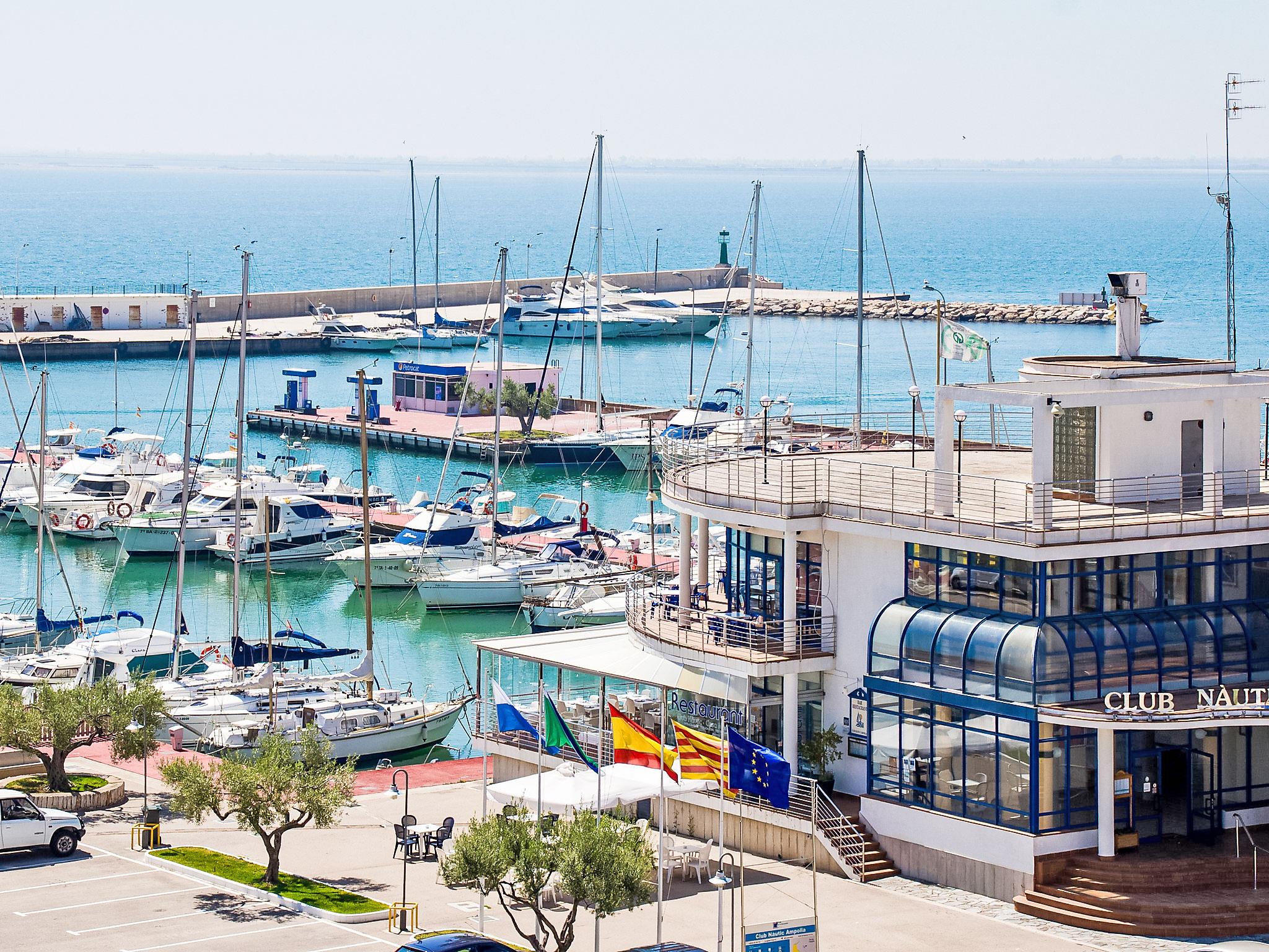 Modern, beautiful, comfortable apartment block "Edificio Nautic", 3 storeys, built in 2006. In the centre of l'Ampolla, in a central, sunny position, 50 m from the sea, 300 m from the beach, road to cross, located by a road, on a main road. For shared use: swimming pool angular (10 x 4 m, seasonal availability: 01.Jun. - 30.Sep.). Outdoor shower. In the house: lift, sun terrace. Parking, communal covered parking space n 24. Parking space or garage only for small to medium-sized cars. Supermarket 10 m, restaurant, bar 50 m, bus stop "L'Ampolla" 300 m, railway station "l'Ampolla" 250 m, sandy beach 300 m. Nearby attractions: Club Naútico de l'Ampolla 50m, Portaventura 65 km, Parque natural del Delta del Ebro 9 km, Golf Pitch & Putt 4 km. Apartment building situaed on the seaside promenade, opposite the sea. The swimming pool and the sun terrace are situated on the patio with a spectacular sea view.
