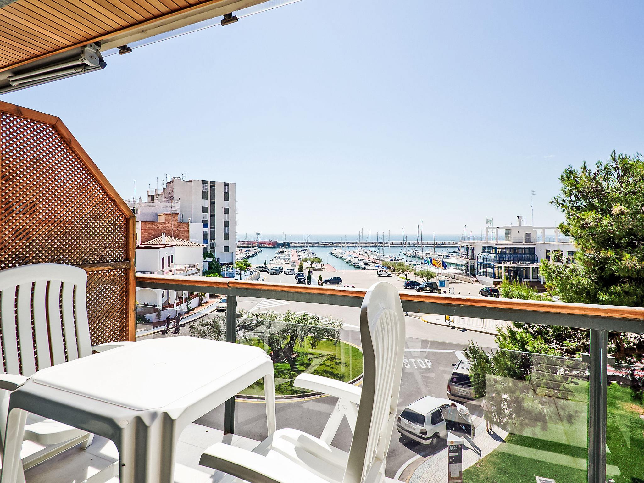 3-room apartment 55 m2 on 2nd floor. Modern and tasteful furnishings: living/dining room with 1 sofabed, dining table and TV (flat screen), air conditioning and forced-air heating. Exit to the balcony. 1 room with 1 french bed (1 x 150 cm), air conditioning and forced-air heating. 1 room with 1 pull-out bed (2 pers. 2 x 90 cm), air conditioning and forced-air heating. Open kitchen (oven, dishwasher, 4 ceramic glass hob hotplates, microwave, freezer, electric coffee machine). Shower/bidet/WC. Air-conditioning. Terrace 5 m2. Balcony furniture. Marvellous view of the sea and the port. Facilities: washing machine, children's high chair, baby cot. Internet (WiFi). Parking space n 24. Please note: suitable for families. Parking space for small car only. TV only ES. HUTTE000086 // Reg. Nr.: ESFCTU0000430200008630280000000000000HUTTE-000086-411