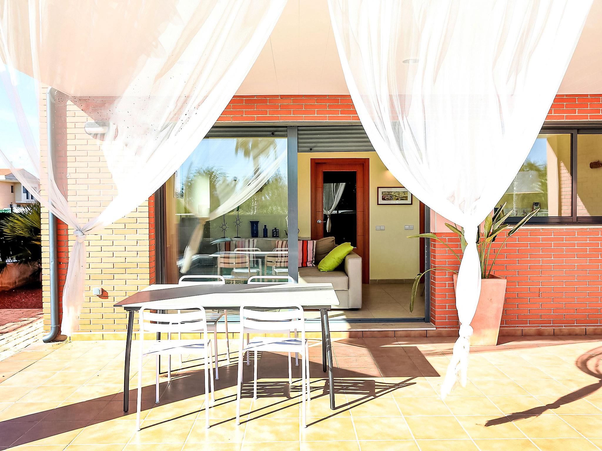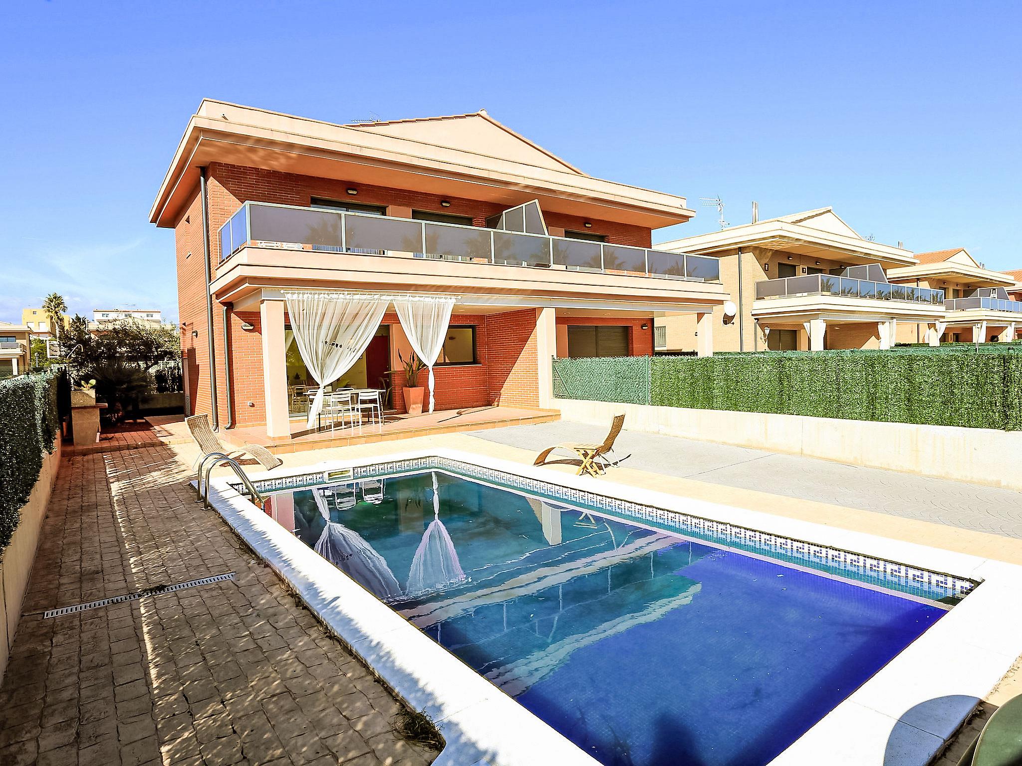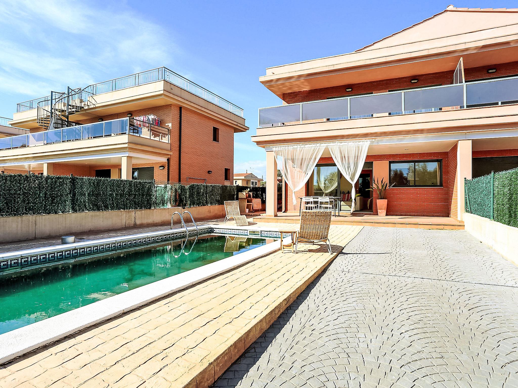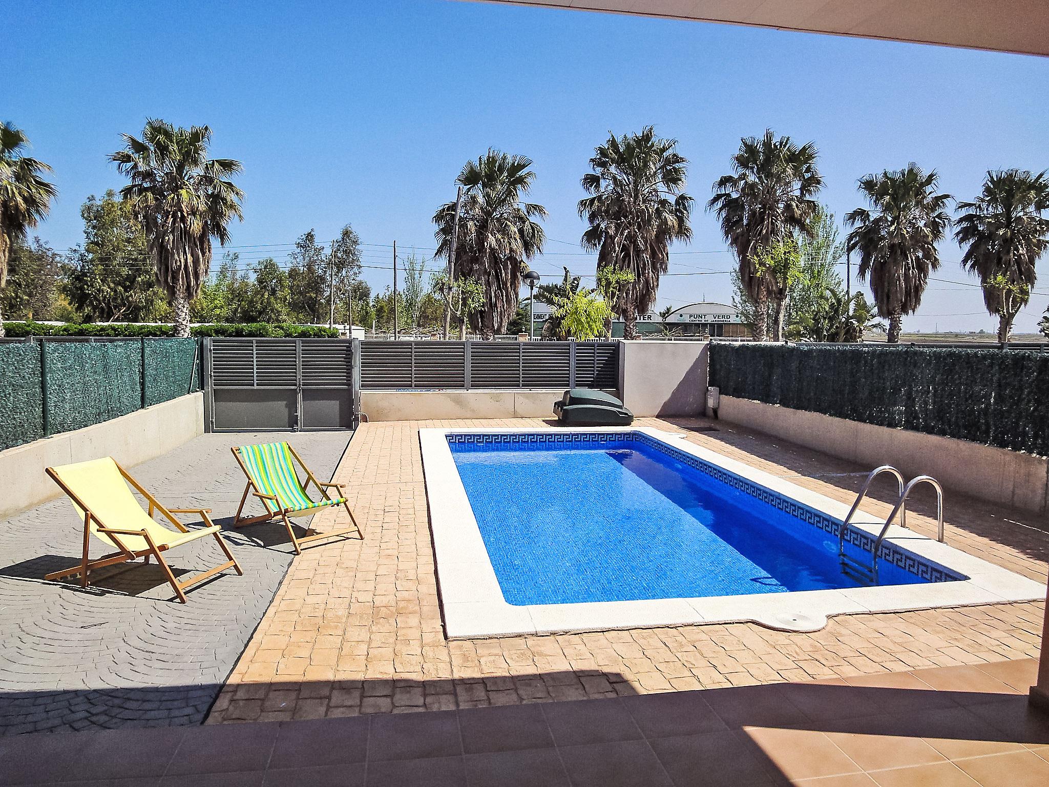 Urb. Ampolla Mar: Modern, cosy, comfortable house "Peiro", 2 storeys, semi-detached, built in 2006. In the resort 1.3 km from the centre of l'Ampolla, in a sunny position, 200 m from the sea, 300 m from the beach, road to cross. Private: property 120 m2 (fenced), swimming pool angular (3 x 8 m, seasonal availability: 01.Jan. - 31.Dec.) with internal staircase. Outdoor shower, patio (40 m2), pergola (21 m2), garden furniture, barbecue. In the house: WiFi. Parking (limited number of spaces) on the premises, public parking on the road. Supermarket 1 km, restaurant 350 m, bus stop 11 km, railway station "L'Ampolla" 1.8 km. Nearby attractions: Parque Natural del Ebro 5 km, parque Portaventura 65 km, Pitch & Putt 2 km.
