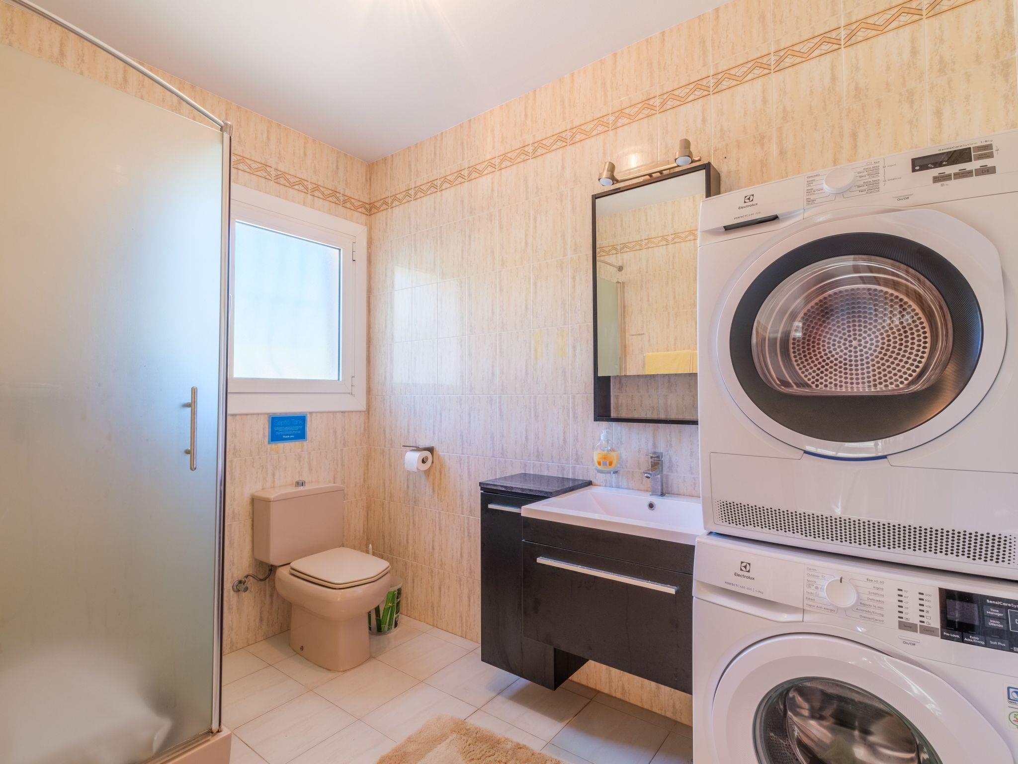 This stunning, detached villa with a large house and pool is located in a popular neighbourhood in a swimming cove away from the centre of town.