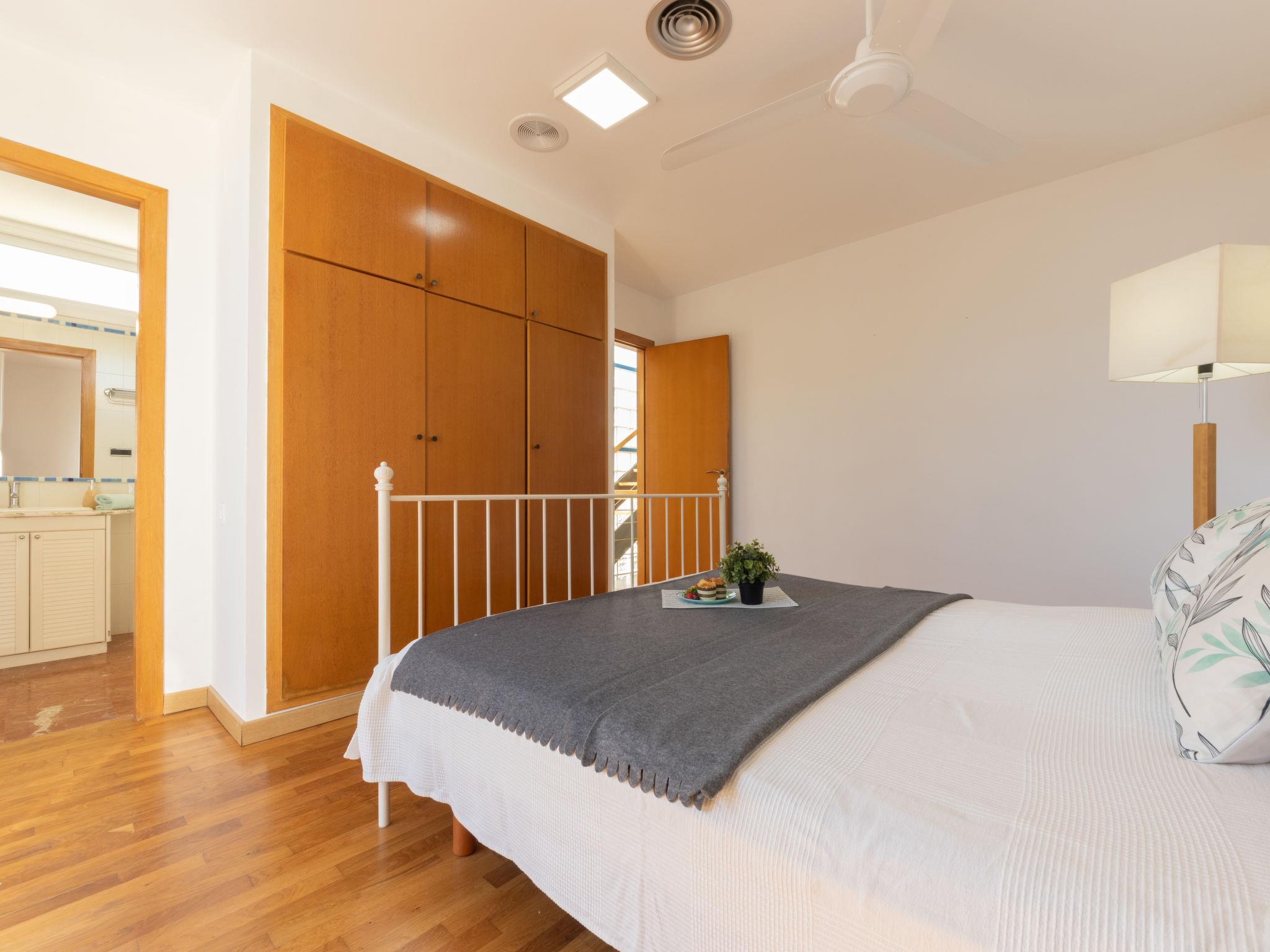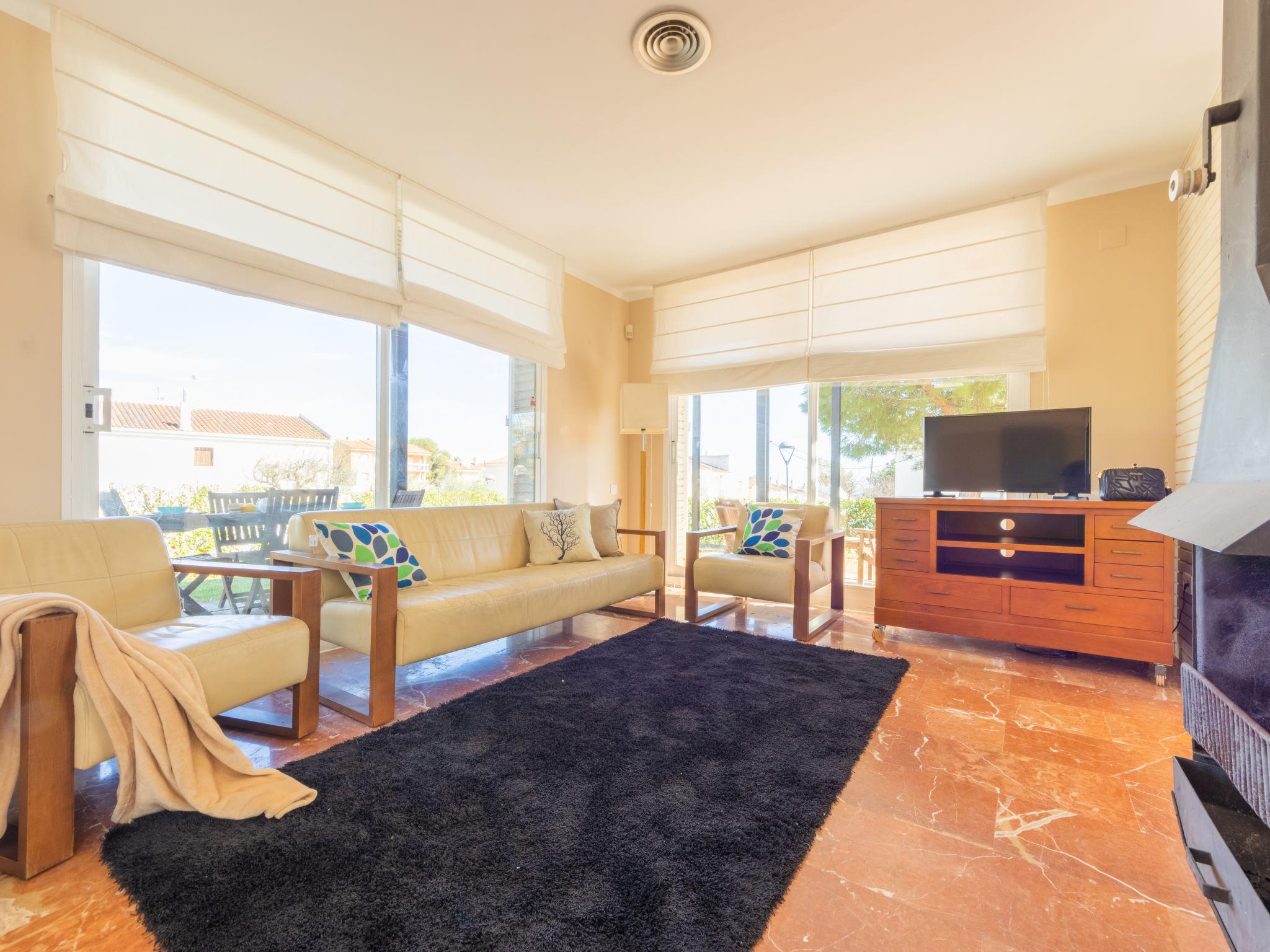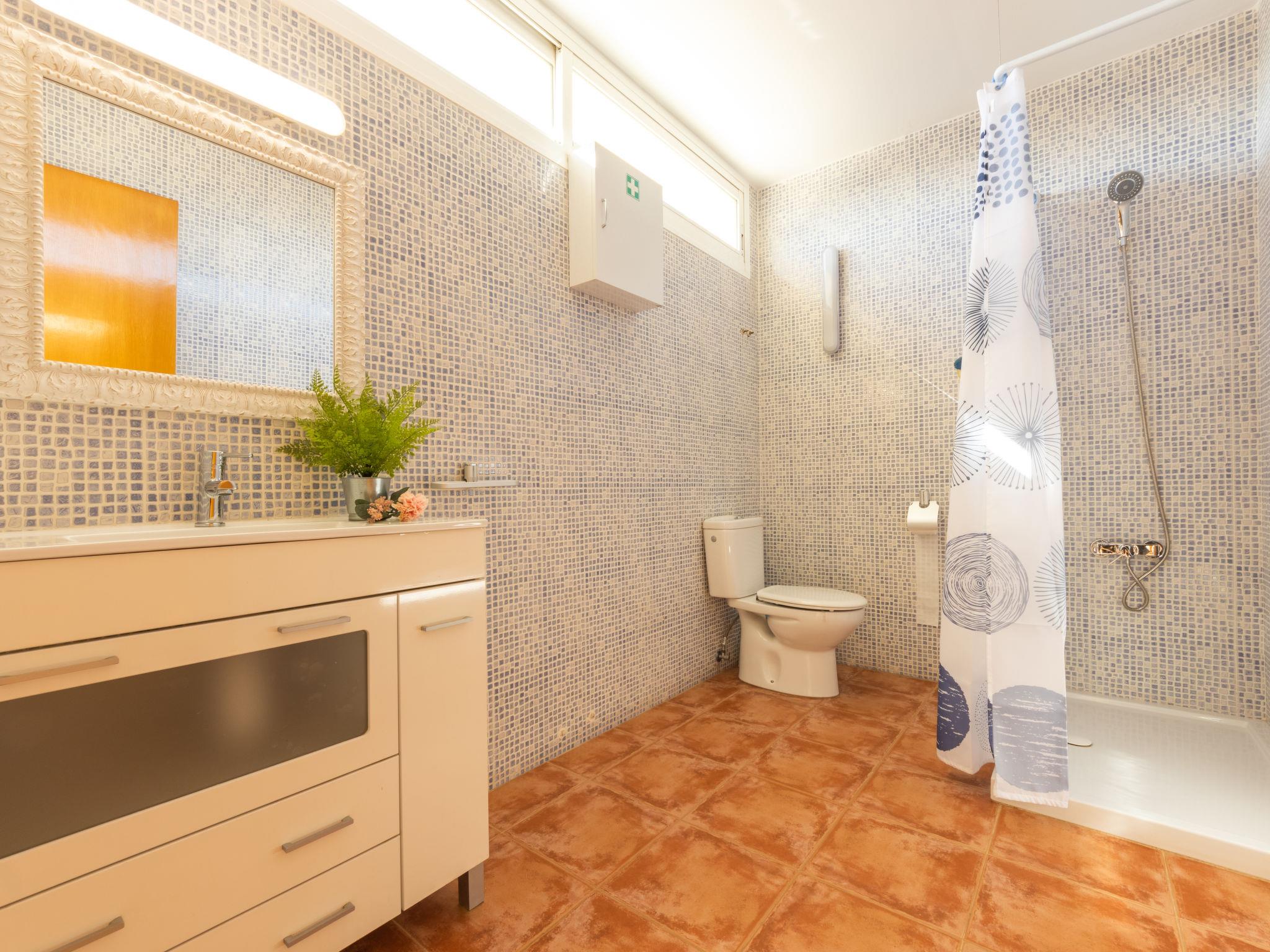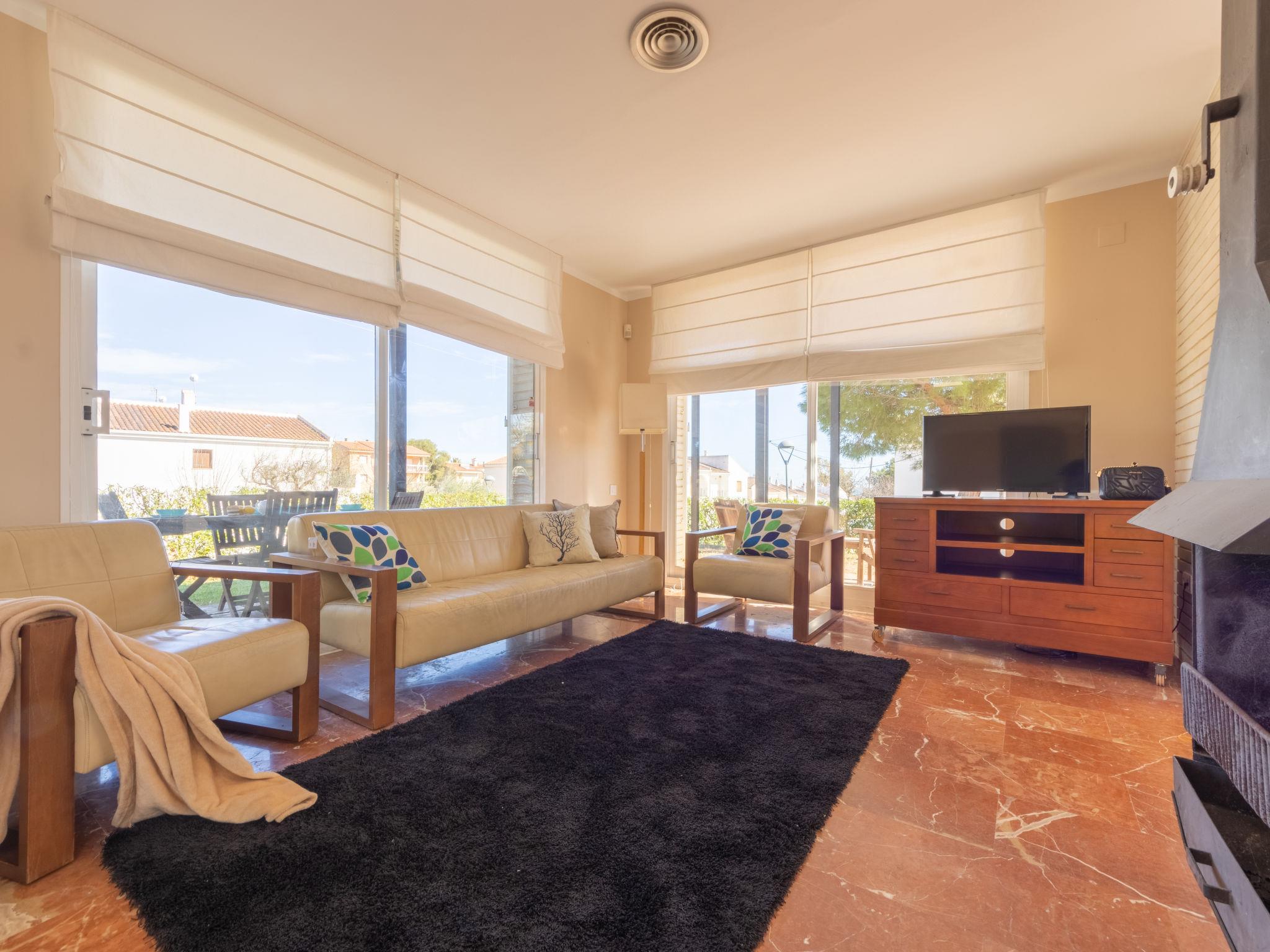 "Mar Roig", 4-room house 214 m2 on 2 levels. Spacious and bright, comfortable and cosy furnishings: open large living/dining room with 1 double sofabed (135 cm, length 180 cm), open-hearth fireplace and digital TV. Exit to the garden, to the terrace. Kitchen (oven, dishwasher, 4 ceramic glass hob hotplates, toaster, kettle, microwave, freezer, electric coffee machine). Bath/WC. Upper floor: 1 double bedroom with 1 french bed (135 cm, length 190 cm), hip bath/WC, air conditioning and forced-air heating. Exit to the terrace. 1 children's room with 2 beds (90 cm, length 190 cm), 1 x 2 bunk beds (90 cm, length 180 cm), air conditioning and forced-air heating. Exit to the terrace. 1 double bedroom with 1 french bed (135 cm, length 190 cm), air conditioning and forced-air heating. Exit to the terrace. Shower/WC. Air-conditioning, forced-air heating. Large patio. Terrace furniture, barbecue, deck chairs, covered balcony. Distant view of the sea. Facilities: washing machine, iron, hair dryer. Internet (WiFi, free). Parking at the house. Suitable for families. Maximum 2 pets/ dogs allowed. HUTTE001614 // Reg. Nr.: ESFCTU00004302000016599300000000000000000HUTTE0016140