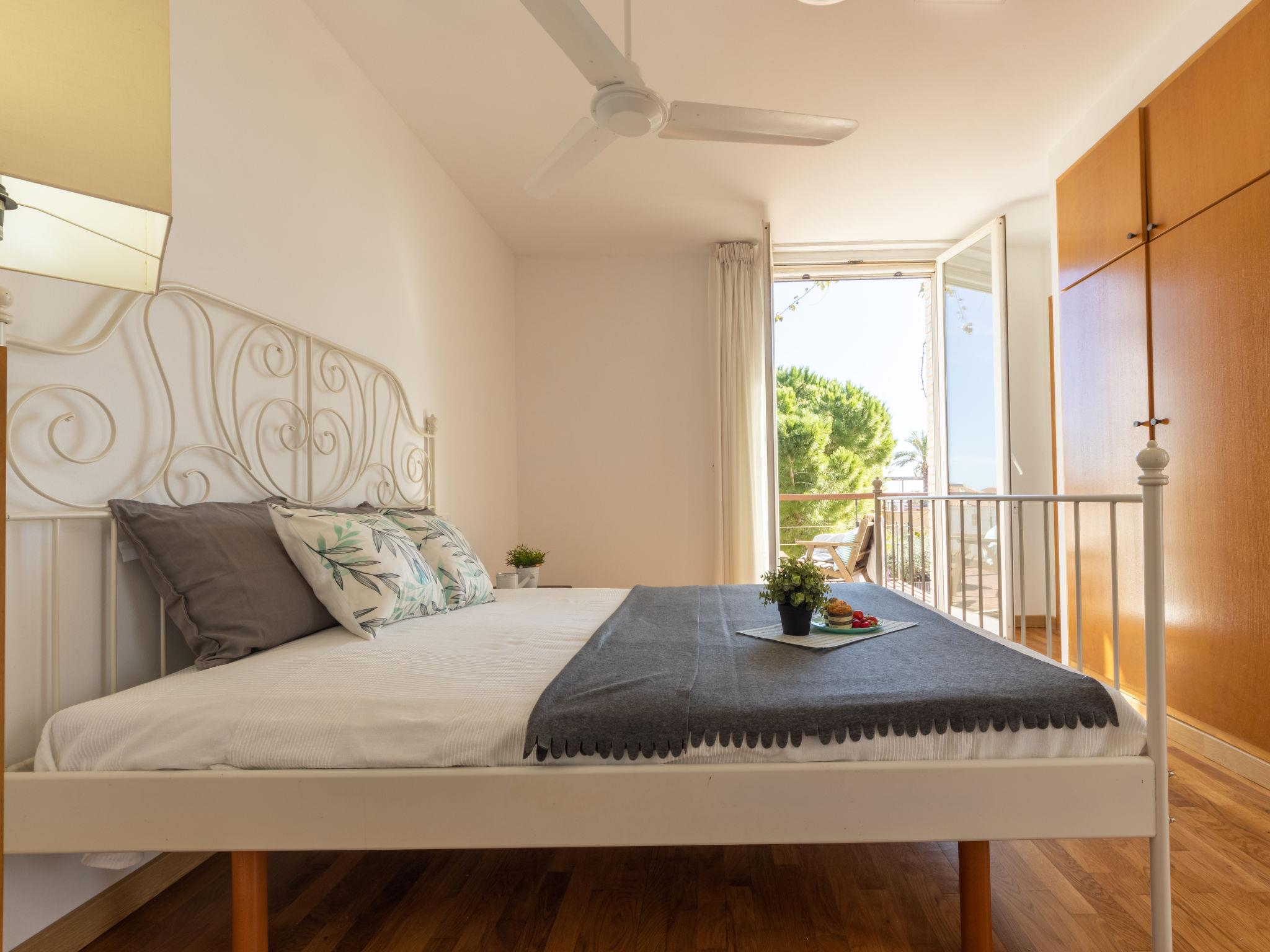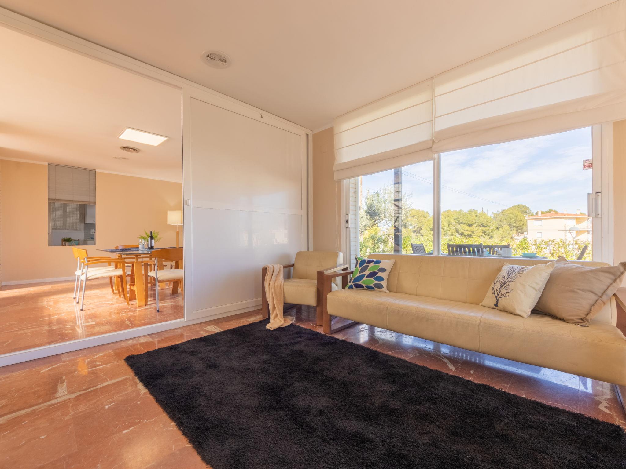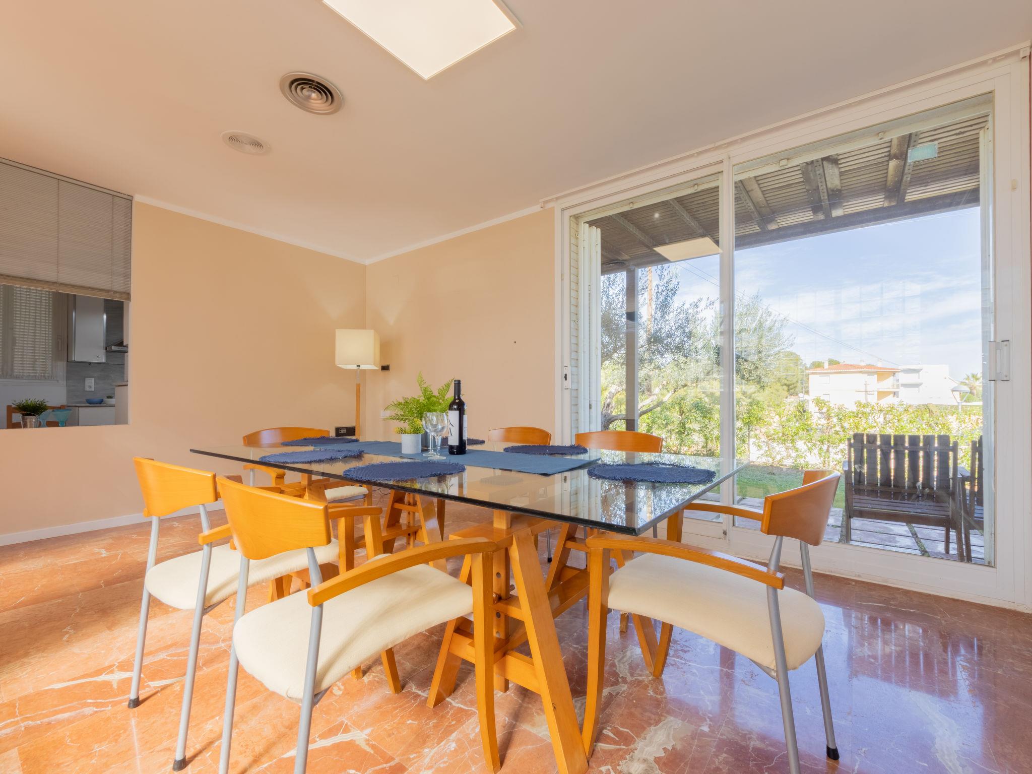 "Mar Roig", 4-room house 214 m2 on 2 levels. Spacious and bright, comfortable and cosy furnishings: open large living/dining room with 1 double sofabed (135 cm, length 180 cm), open-hearth fireplace and digital TV. Exit to the garden, to the terrace. Kitchen (oven, dishwasher, 4 ceramic glass hob hotplates, toaster, kettle, microwave, freezer, electric coffee machine). Bath/WC. Upper floor: 1 double bedroom with 1 french bed (135 cm, length 190 cm), hip bath/WC, air conditioning and forced-air heating. Exit to the terrace. 1 children's room with 2 beds (90 cm, length 190 cm), 1 x 2 bunk beds (90 cm, length 180 cm), air conditioning and forced-air heating. Exit to the terrace. 1 double bedroom with 1 french bed (135 cm, length 190 cm), air conditioning and forced-air heating. Exit to the terrace. Shower/WC. Air-conditioning, forced-air heating. Large patio. Terrace furniture, barbecue, deck chairs, covered balcony. Distant view of the sea. Facilities: washing machine, iron, hair dryer. Internet (WiFi, free). Parking at the house. Suitable for families. Maximum 2 pets/ dogs allowed. HUTTE001614 // Reg. Nr.: ESFCTU00004302000016599300000000000000000HUTTE0016140