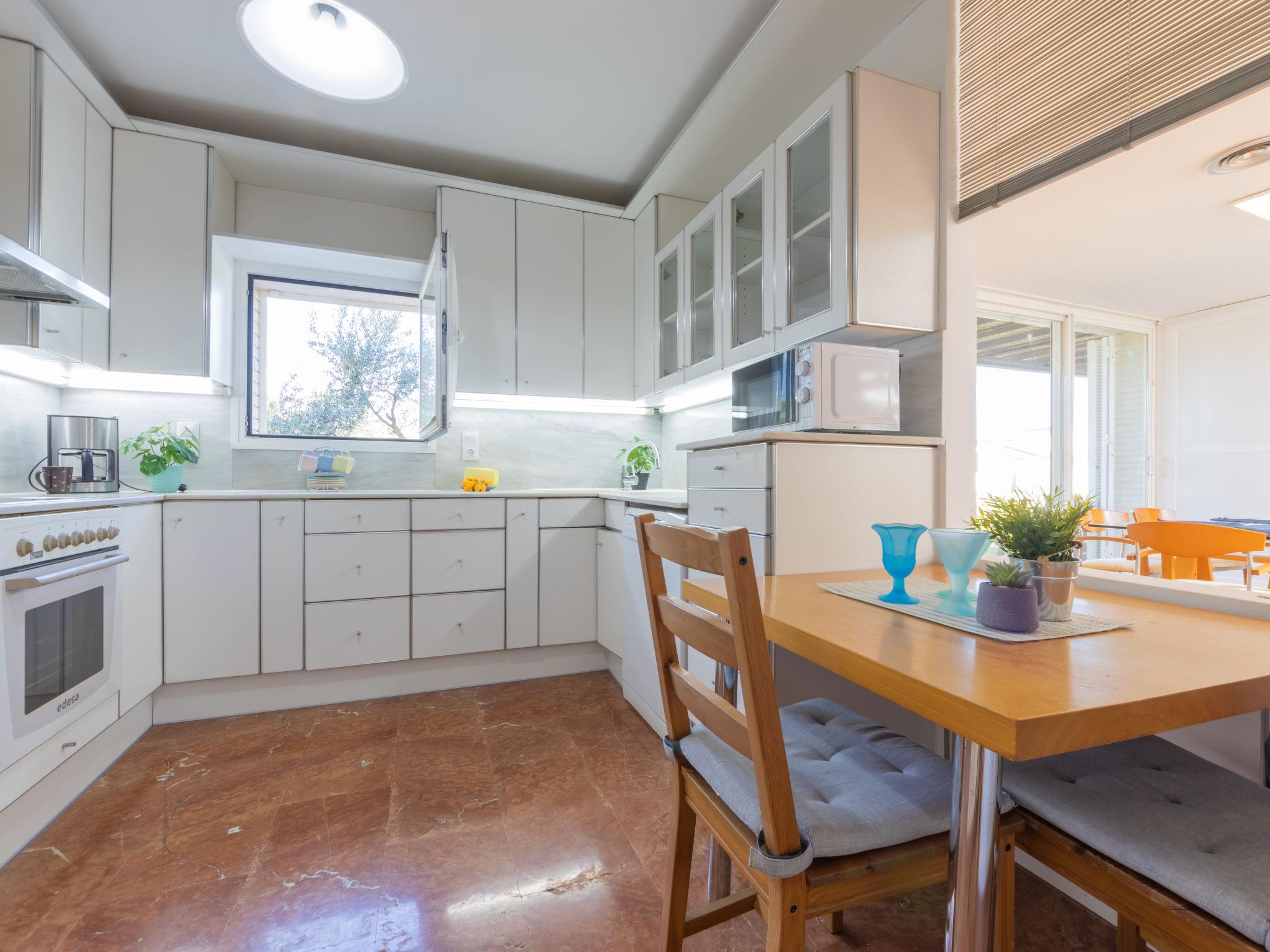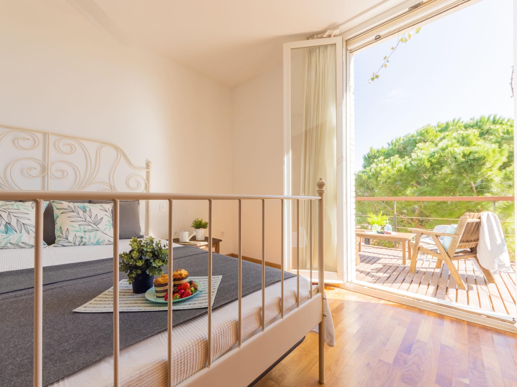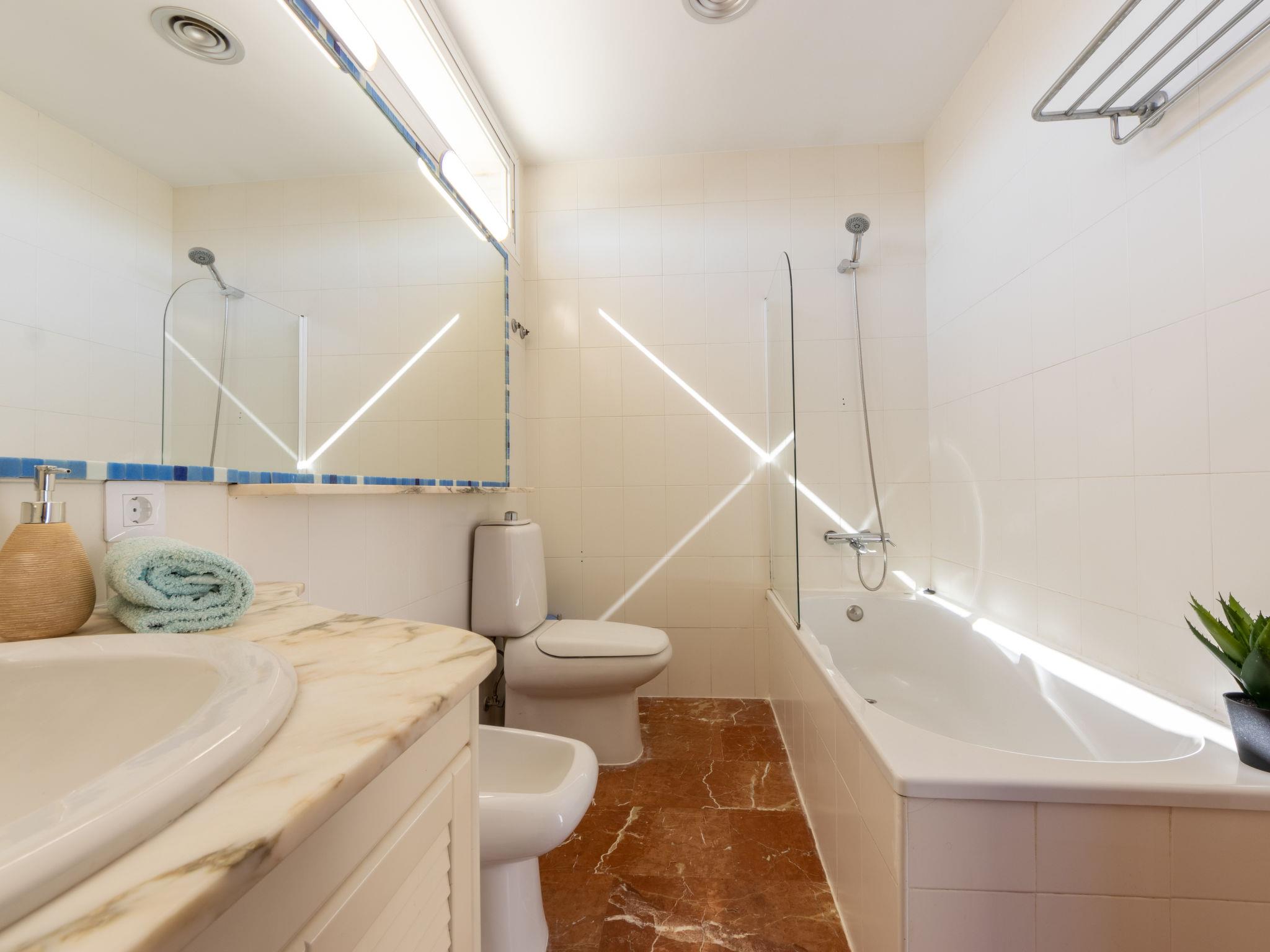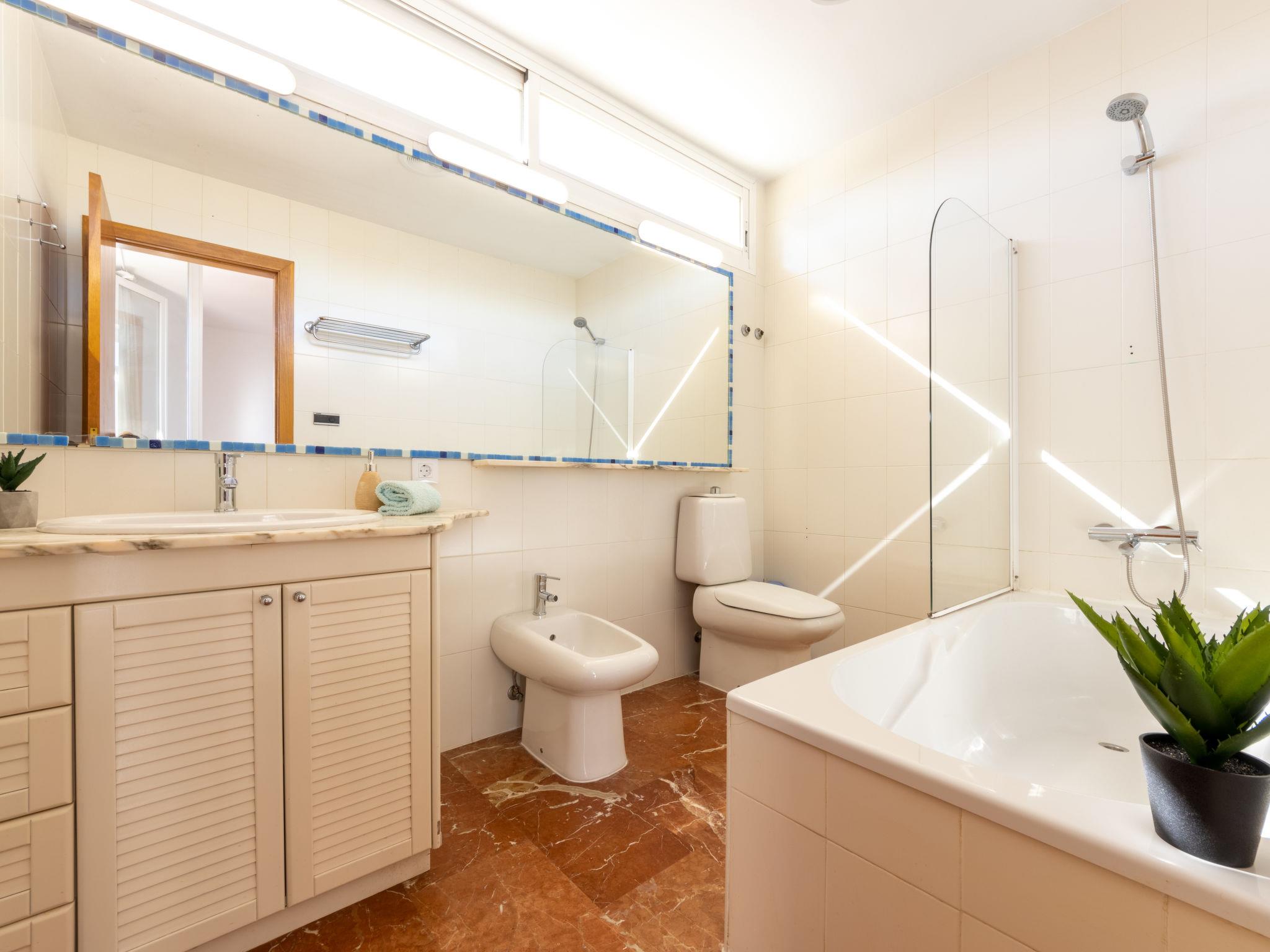 "Mar Roig", 4-room house 214 m2 on 2 levels. Spacious and bright, comfortable and cosy furnishings: open large living/dining room with 1 double sofabed (135 cm, length 180 cm), open-hearth fireplace and digital TV. Exit to the garden, to the terrace. Kitchen (oven, dishwasher, 4 ceramic glass hob hotplates, toaster, kettle, microwave, freezer, electric coffee machine). Bath/WC. Upper floor: 1 double bedroom with 1 french bed (135 cm, length 190 cm), hip bath/WC, air conditioning and forced-air heating. Exit to the terrace. 1 children's room with 2 beds (90 cm, length 190 cm), 1 x 2 bunk beds (90 cm, length 180 cm), air conditioning and forced-air heating. Exit to the terrace. 1 double bedroom with 1 french bed (135 cm, length 190 cm), air conditioning and forced-air heating. Exit to the terrace. Shower/WC. Air-conditioning, forced-air heating. Large patio. Terrace furniture, barbecue, deck chairs, covered balcony. Distant view of the sea. Facilities: washing machine, iron, hair dryer. Internet (WiFi, free). Parking at the house. Suitable for families. Maximum 2 pets/ dogs allowed. HUTTE001614 // Reg. Nr.: ESFCTU00004302000016599300000000000000000HUTTE0016140