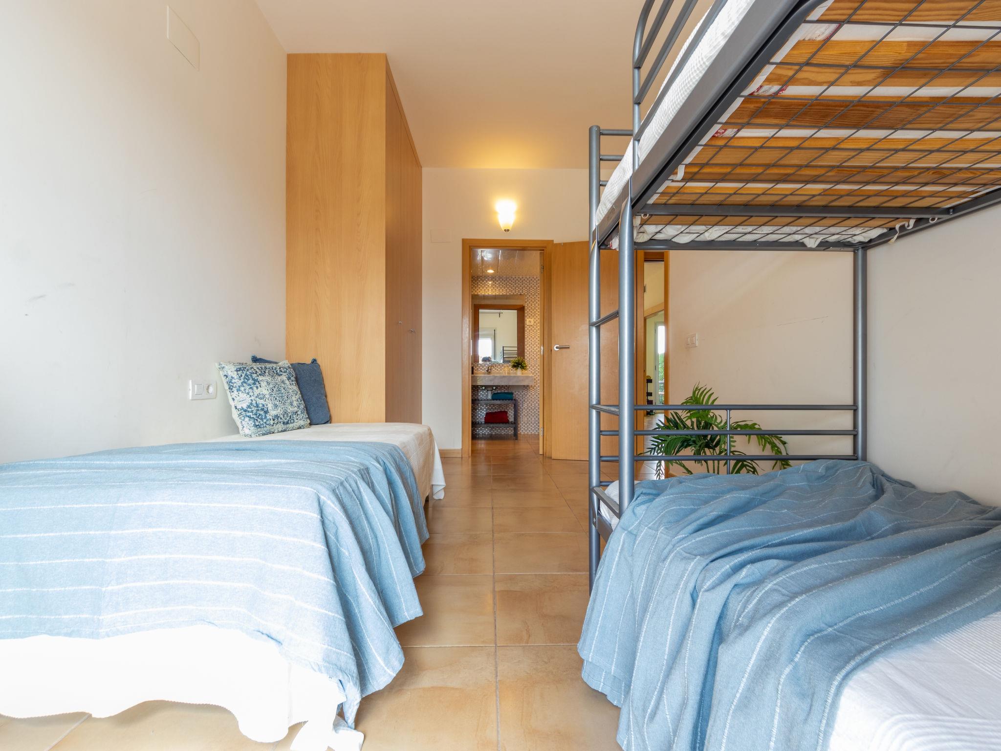 "Inés", 3-room apartment 80 m2, on the ground floor. Comfortable and cosy furnishings: living/dining room with digital TV. Exit to the garden, to the terrace. 1 double bedroom with 1 french bed (135 cm, length 190 cm). 1 double bedroom with 1 bed (90 cm, length 190 cm), 1 x 2 bunk beds (90 cm, length 190 cm), hip bath/bidet/WC. Kitchen (dishwasher, 4 ceramic glass hob hotplates, toaster, kettle, microwave, electric coffee machine). Exit to the garden, to the terrace. Shower/WC. Air-conditioning, forced-air heating. Terrace furniture, barbecue. Panoramic view of the sea and the mountains. Facilities: washing machine, iron, hair dryer. Parking (fenced). Suitable for families. HUTTE-001649