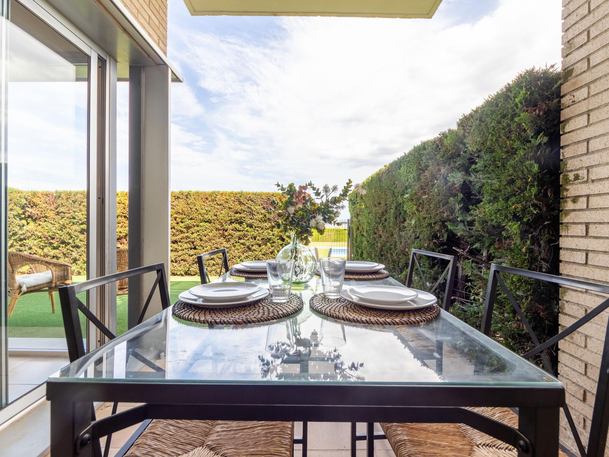 L'Ampolla 2 km from Playa Arenal: Beautiful, comfortable apartment block "Inés". In a quiet, sunny position. For shared use: property, natural garden, swimming pool angular (6 x 15 m, depth 1 - depth 90 cm, seasonal availability: 01.Jun. - 30.Sep.). Outdoor shower. Private: property 50 m2 (fenced), natural garden. Patio (50 m2), pergola (15 m2), barbecue. In the house: WiFi, air conditioning, washing machine. Parking. Supermarket 3 km, restaurant 5 km, bakery 3 km, bus stop 11 km, railway station 4 km, sandy beach "Playa Arenal" 3 km. Sports harbour 5 km, golf course (15 hole) 45 km. Nearby attractions: Port Aventura 65 km, Parque natural Ports Tortosa Beseit 52 km, GR 92 15 km, Barcelona 170 km, Parque aquatico 65 km. Please note: car recommended.