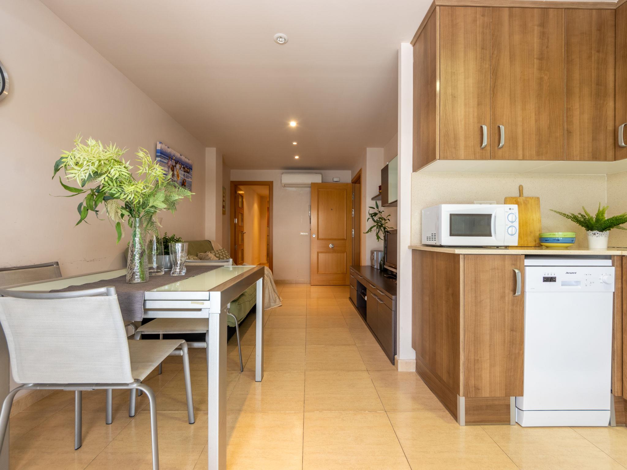 L'AMPOLLA: Cosy, comfortable apartment block "Masnou". In a sunny position, excellent location: right in the centre but still quiet, 200 m from the sea, 200 m from the beach, road to cross. In the house: WiFi, lift, air conditioning. Central parking spaces. Shop, grocery 200 m, supermarket 300 m, restaurant, bakery 200 m, bus stop 11 km, railway station 1 km, sandy beach "Avellanes" 300 m. Sports harbour, marina 500 m. Nearby attractions: Port Aventura 48 km, Parque natural Ports Tortosa Beseit 52 km, GR 92 1 km, Barcelona 170 km. Groups of teenagers on request only. Please note: railway line 500 m from the property.