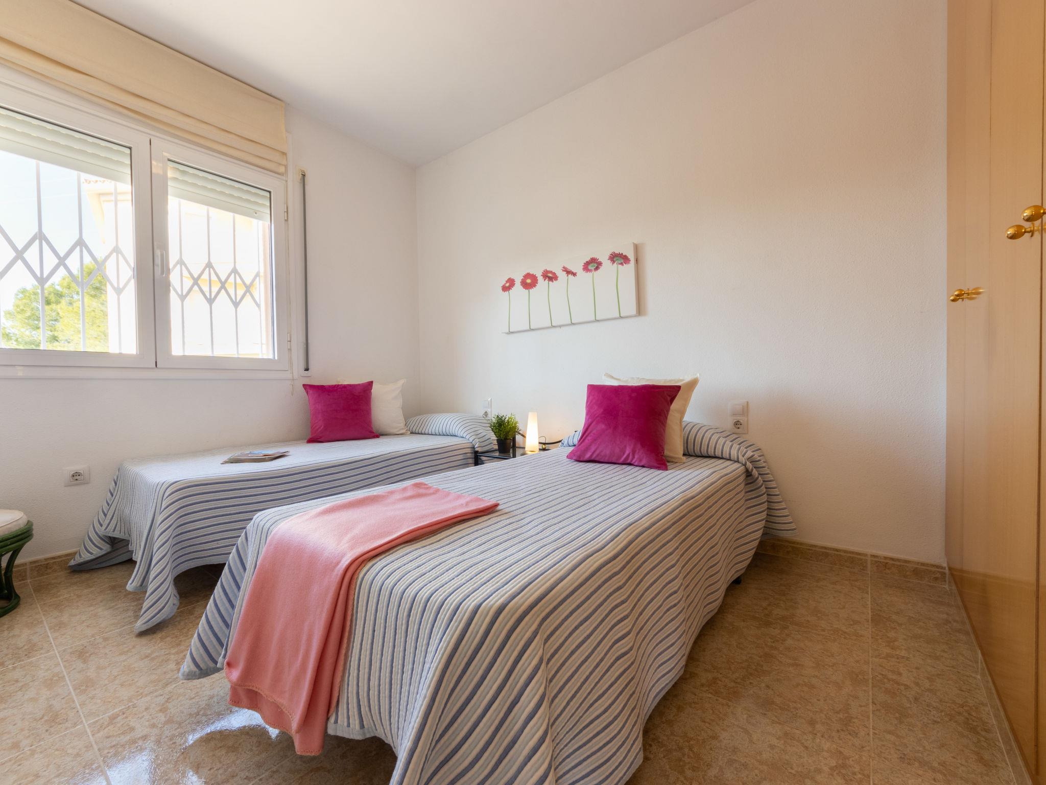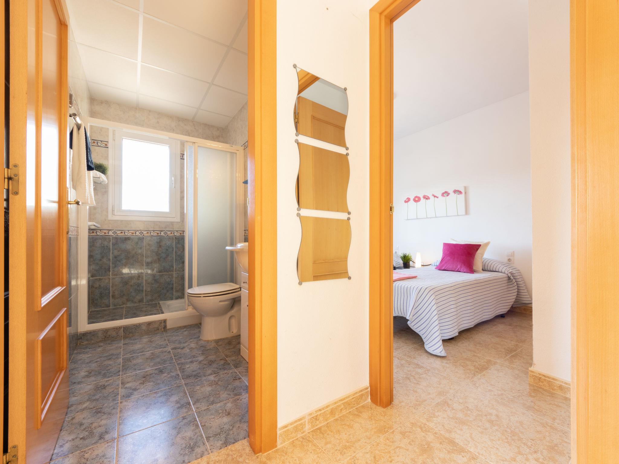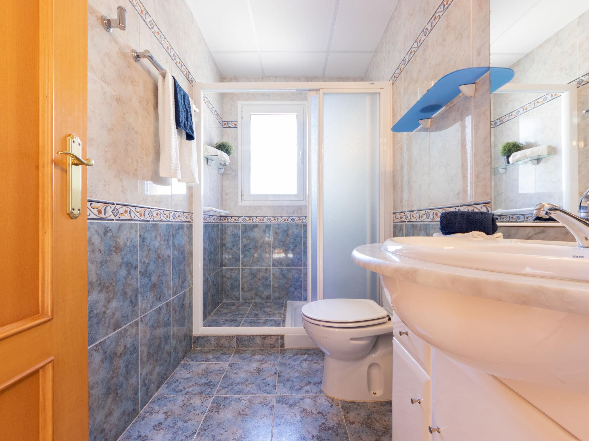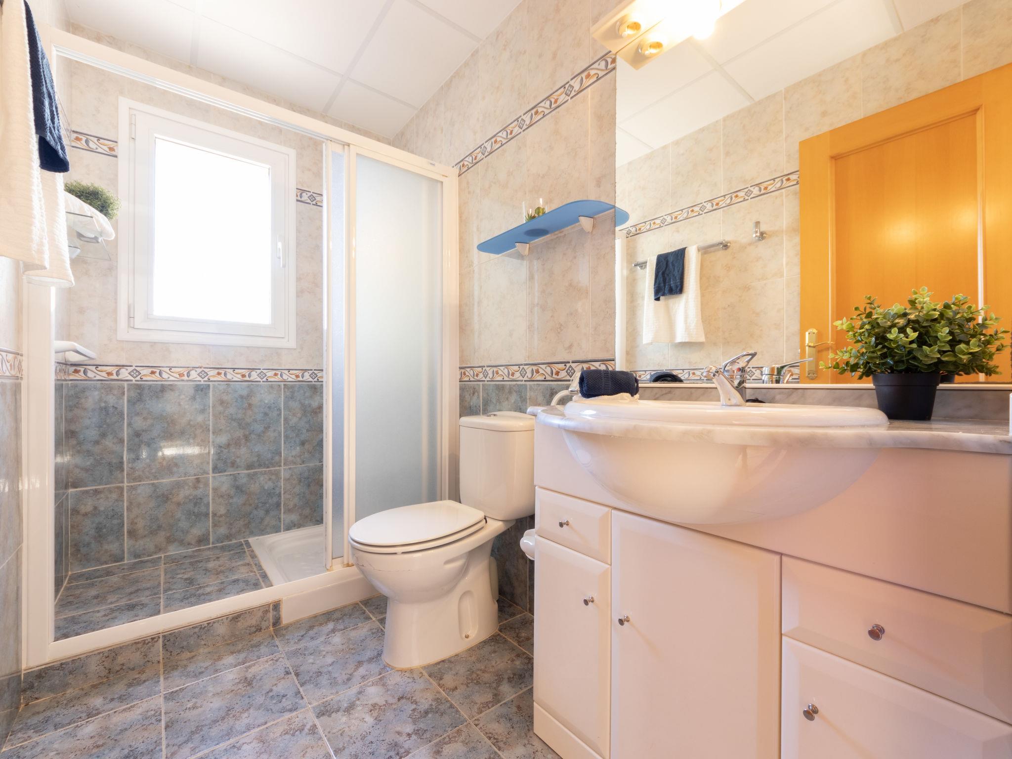 "Roquemar", 3-room apartment 50 m2. Modern and tasteful furnishings: living/dining room with dining table, TV, air conditioning and forced-air heating. Exit to the balcony. 1 room with 1 french bed (1 x 150 cm, length 180 cm), electric heater. 1 room with 2 beds (90 cm, length 180 cm), electric heater and air conditioning. Open kitchen (oven, 4 ceramic glass hob hotplates, toaster, kettle, microwave, freezer, electric coffee machine). Shower/WC. Air-conditioning. Terrace. Balcony furniture. Marvellous view. Facilities: washing machine, iron, children's high chair, baby cot, hair dryer. Internet (WiFi). Please note: suitable for families. TV only ES. HUTTE002525 // Reg. Nr.: ESFCTU00004302000064252400000000000000000HUTTE0025203