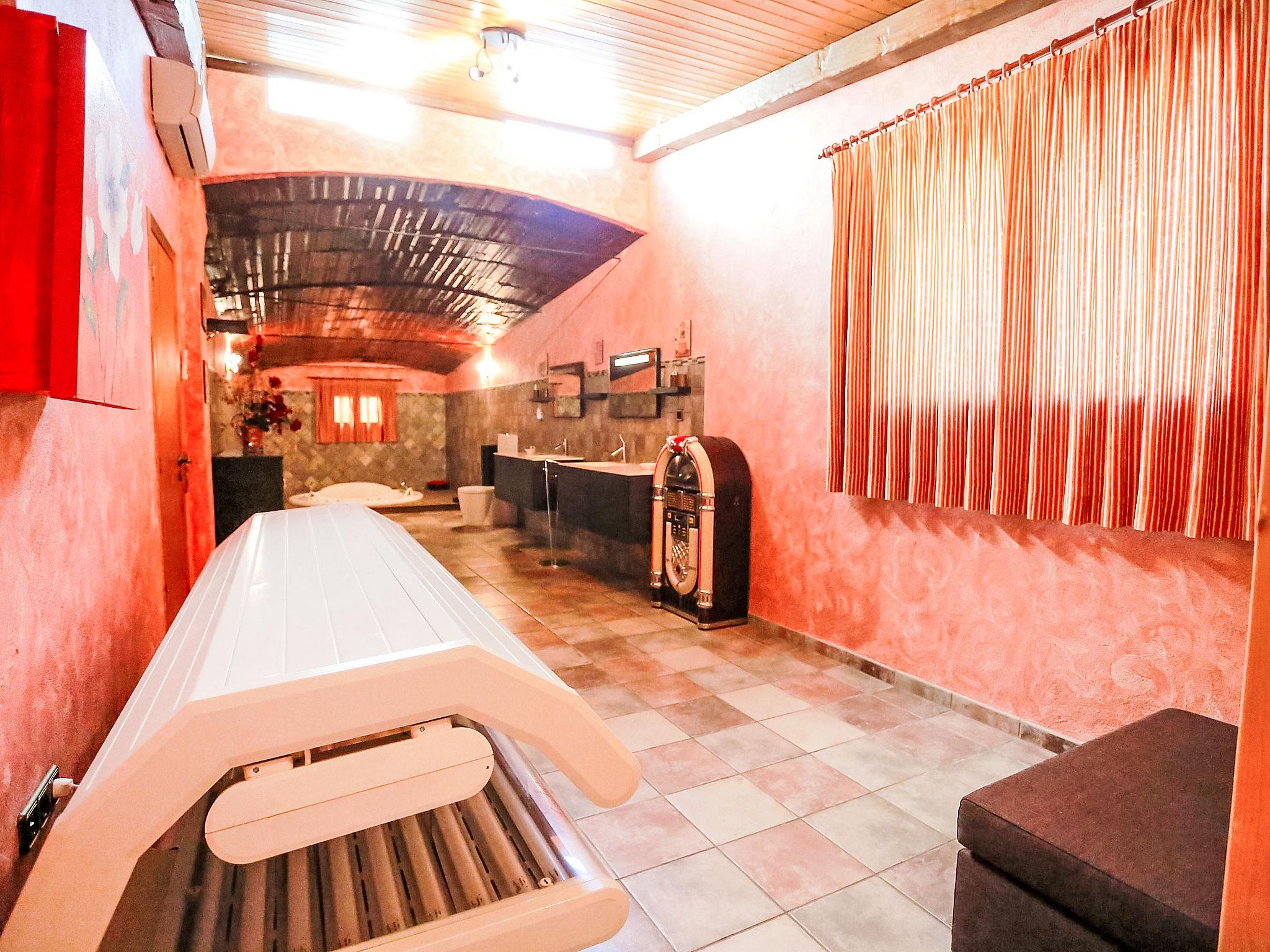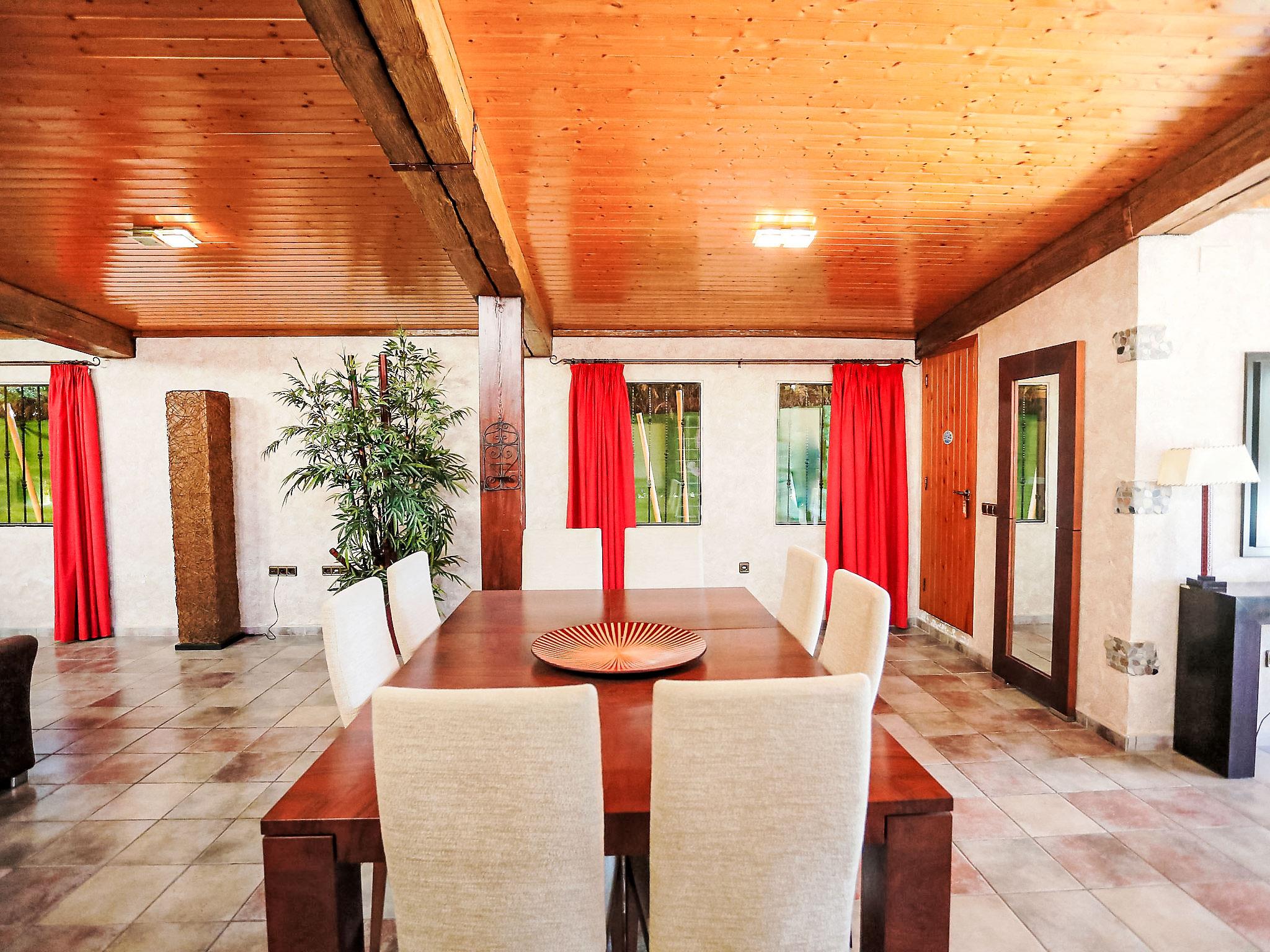 5-room house 320 m2, lower ground floor. Spacious, fully, luxurious and tasteful furnishings: open large living/dining room with dining table and satellite TV (flat screen), air conditioning and forced-air heating. Exit to the patio. 3 large rooms, each room with 1 french bed, TV, DVD and forced-air heating. With Dressing room. Open kitchen (4 hot plates, oven, dishwasher, microwave) with bar. Bath/shower/WC, double hand-basin, hydro massage bath, Sauna. Large patio. Terrace furniture, barbecue, covered balcony, sitting area. Facilities: washing machine, dryer. Internet (WiFi, free). Please note: maximum 1 pet/ dog allowed. TV only ES, DE, FR. Price of internet: 25€ per week. HUTTE000854 // Reg. Nr.: ESFCTU0000430190005533050000000000000000HUTTE-0008540
