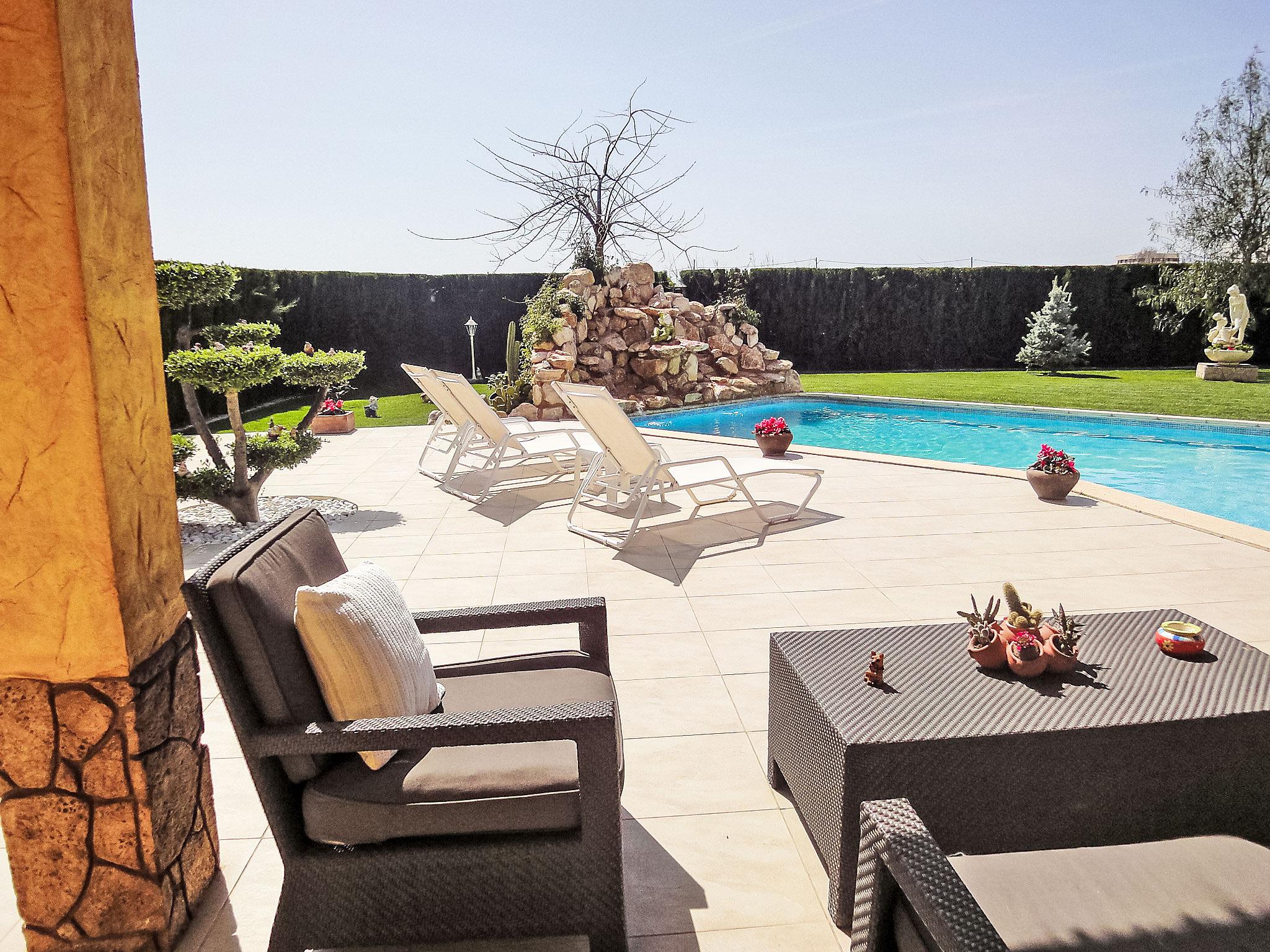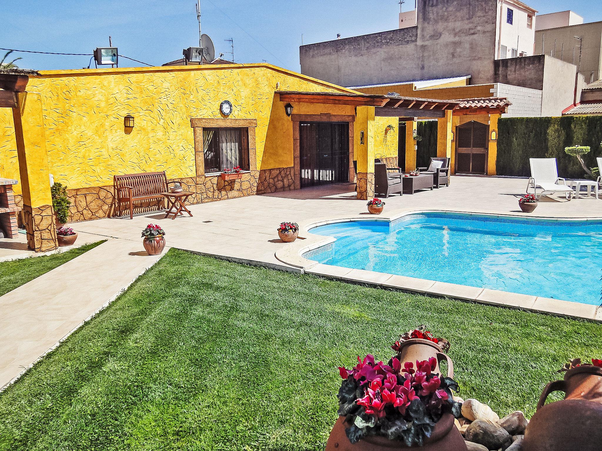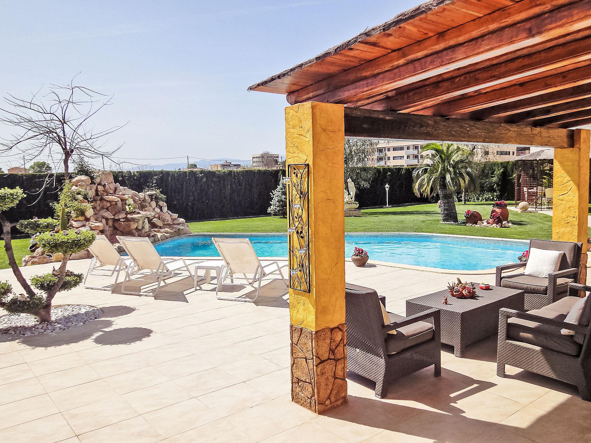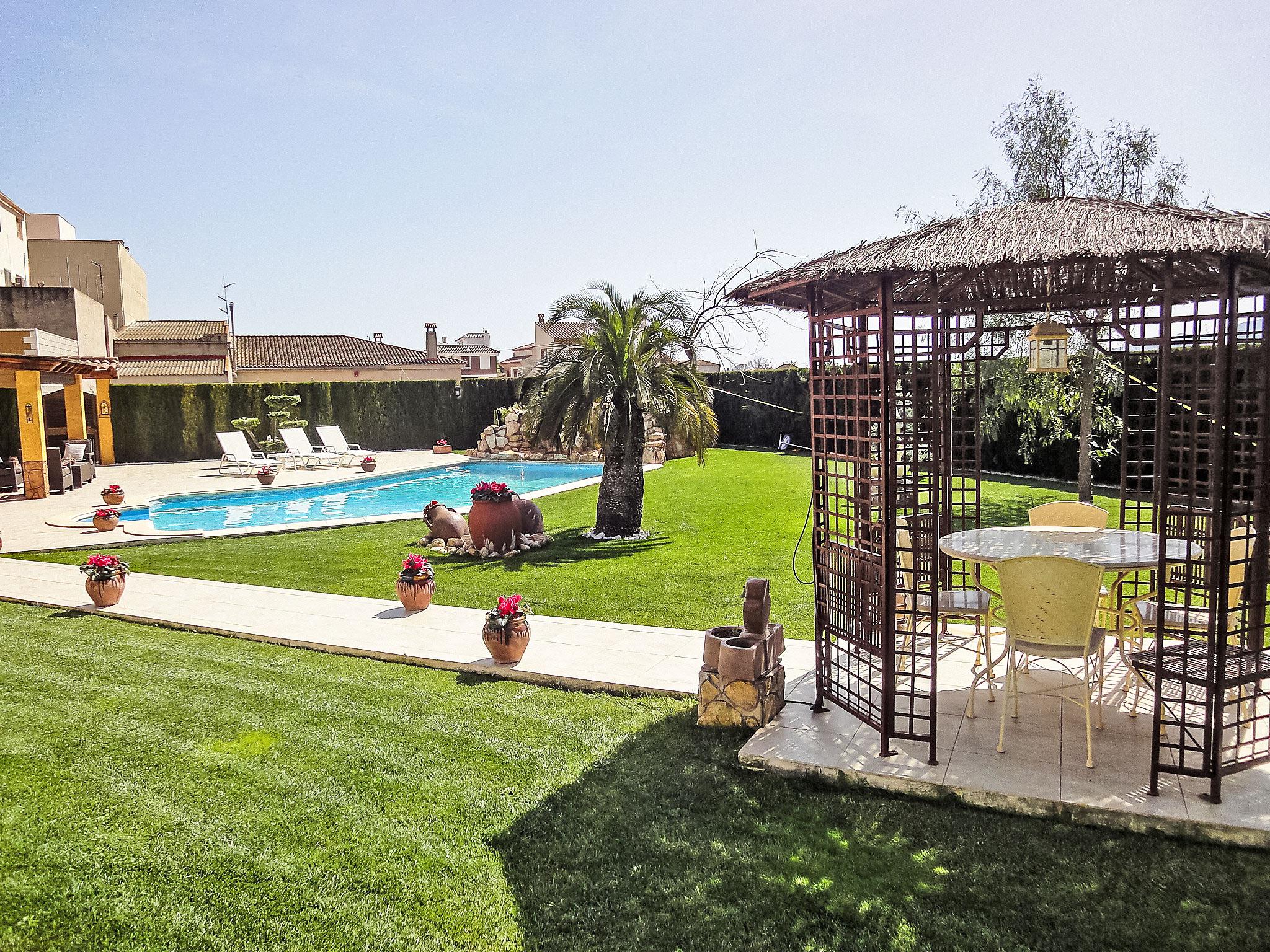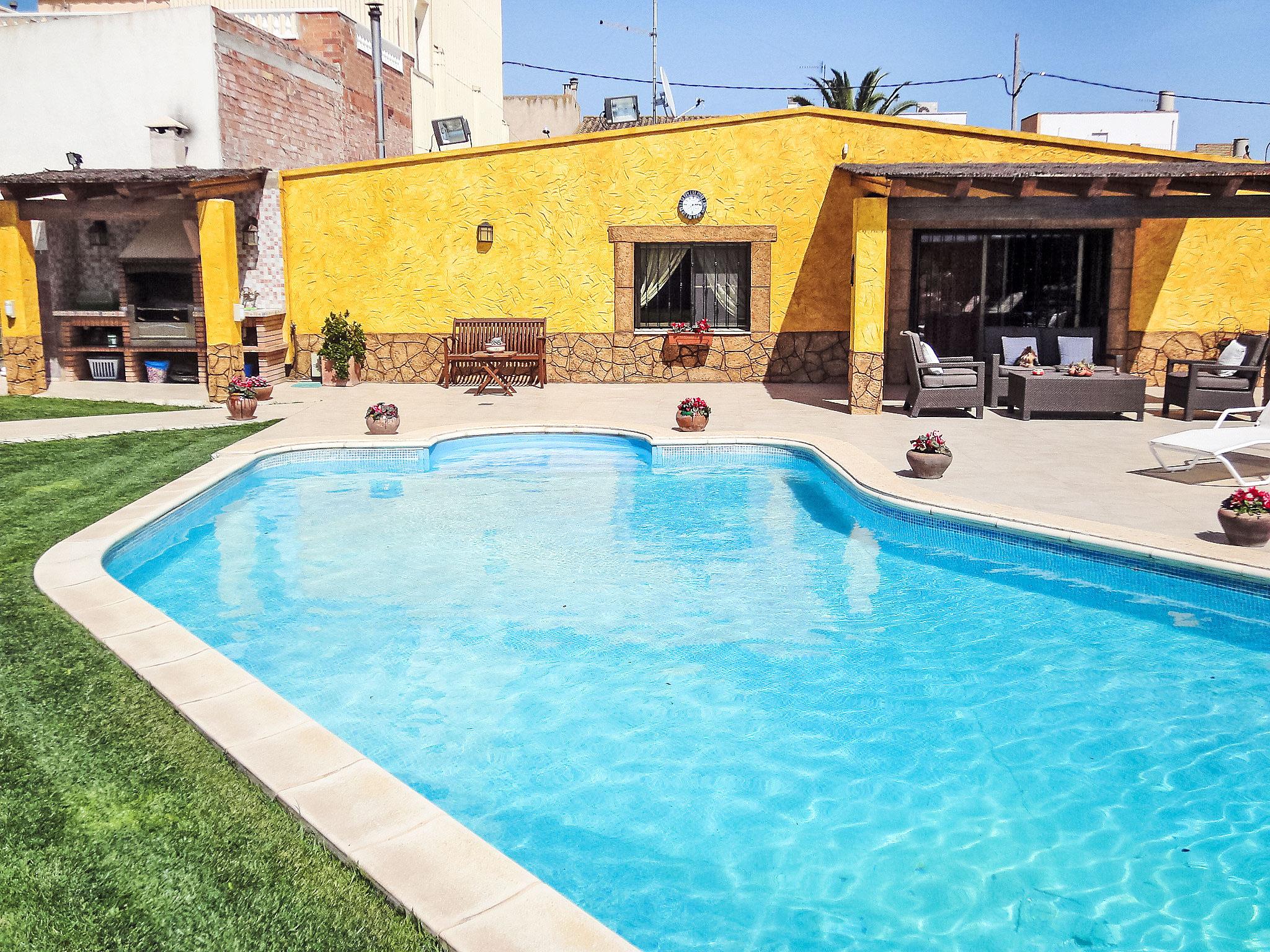 L'Aldea 8 km from L'Ampolla: Rental bikes: 20€ per week. Large, very beautiful house "L'Aldea", detached. 8 km from the sea, 8 km from the beach. Private: beautiful, well-kept garden 600 m2 (fenced) with lawn, swimming pool kidney shaped (10 x 4 m, depth 90 - 180 cm, seasonal availability: 01.Jan. - 31.Dec.) with internal staircase. Outdoor shower, arbour, pergola, garden furniture, barbecue. In the house: air conditioning, burglar alarm system, bicycles available (extra). Public parking on the road. Shop 300 m, supermarket 1 km, restaurant 300 m, bus stop 1 km, railway station 1 km.