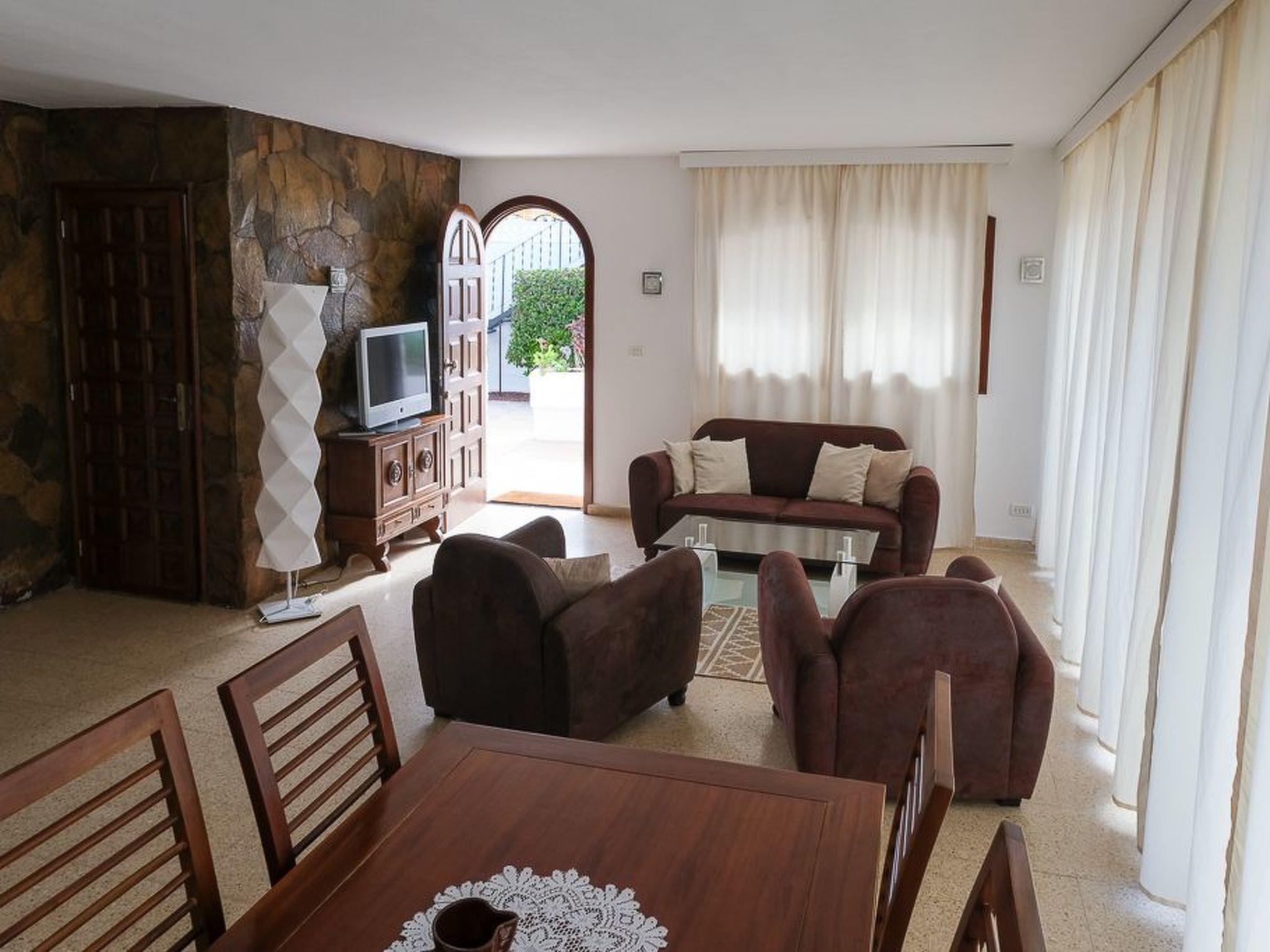 "Casa Muckel" is a well maintained bungalow with 2 bedrooms, 2 bathrooms, spacious living/dining room, kitchen, a large terrace and additionally a huge roof terrace with magnificent views of Teide and Atlantic. (Rem. April 2018: Kitchen and bathroom have been renovated recently.)Located in a quiet residential area on the outskirts of the tourist city of Puerto de la Cruz in the green north of Tenerife, the house offers you an ideal place to relax: See how the butterflies are dancing over the flowers in the evening sun and then enjoy an indescribably beautiful sunset. The proximity to the city allows you to enjoy the sea and the sandy beach at the famous garden beach "Playa Jardin" or strolling in the cozy old town or visiting one of the restaurants and street cafes in no time. Hikers find a hiking paradise in Tenerife: idyllic valleys, pine and laurel forests, wild ravines, magnificent peaks and the overwhelming Canadas with the Pico del Teide. You can start a walk on the popular coastal path directly from the house. Tennis players can choose in the immediate vicinity between 2 tennis courts. Surfers also find the best conditions in the immediate vicinity: Playa de Martiánez or Playa del Socorro.Short descriptionOther : Non-smoking houseShort description 1Number of kitchens : 1Other rooms : roof terraceBathroom 1Other bathroom equipment : recently renovated bathroomKitchen 1Other kitchen equipment : recently renovated kitchenSurroundingNearby sports facilities : Fishing, Surfing, TennisRental Facilities : car rentalGarden and outdoorGarden facilities : Garden furniture providedLicence number for tourism leasing: n/aOutside area: Terrace;House information: 2nd double bed; Bathrooms: 2; Bedroom; Detached building; Property area: 168 m²;Living area: Satellite-tv; TV;Bath/WC: Hairdryers; Shower; Toilet;Kitchen: Coffee machine; Electric stove; Fridge; Oven; Stove; Toaster; Water boiler;Other: Mountain view; Non-smoking object; Vacuum cleaner; View; Wifi all-inclusive package;Distances (linear, approx.): Distance to airport: 25,00 km; Holiday park nearby: 1 m;Short descriptionOther : Non-smoking houseLicence number for tourism leasing: n/aFeatures of the property: Object in residential areaOutside area: Garden available; Roof terrace; Terrace; Veranda;House information: 2nd double bed; Bathrooms: 2; Bedroom; Detached building; Property area: 168 m²; Year of renovation: 2020;Living area: Iron; King-size bed; Safe; Satellite-tv; TV;Bath/WC: Hairdryers; Shower; Toilet;Kitchen: Ceran stove; Coffee machine; Freezer; Fridge; Oven; Stove; Toaster; Water boiler;Other: Heating; Mountain view; No youth groups; Non-smoking object; Vacuum cleaner; Ventilator; View; Washing machine; Wifi all-inclusive package;Distances (linear, approx.): Distance to airport: 25,00 km;Short descriptionOther : Non-smoking house